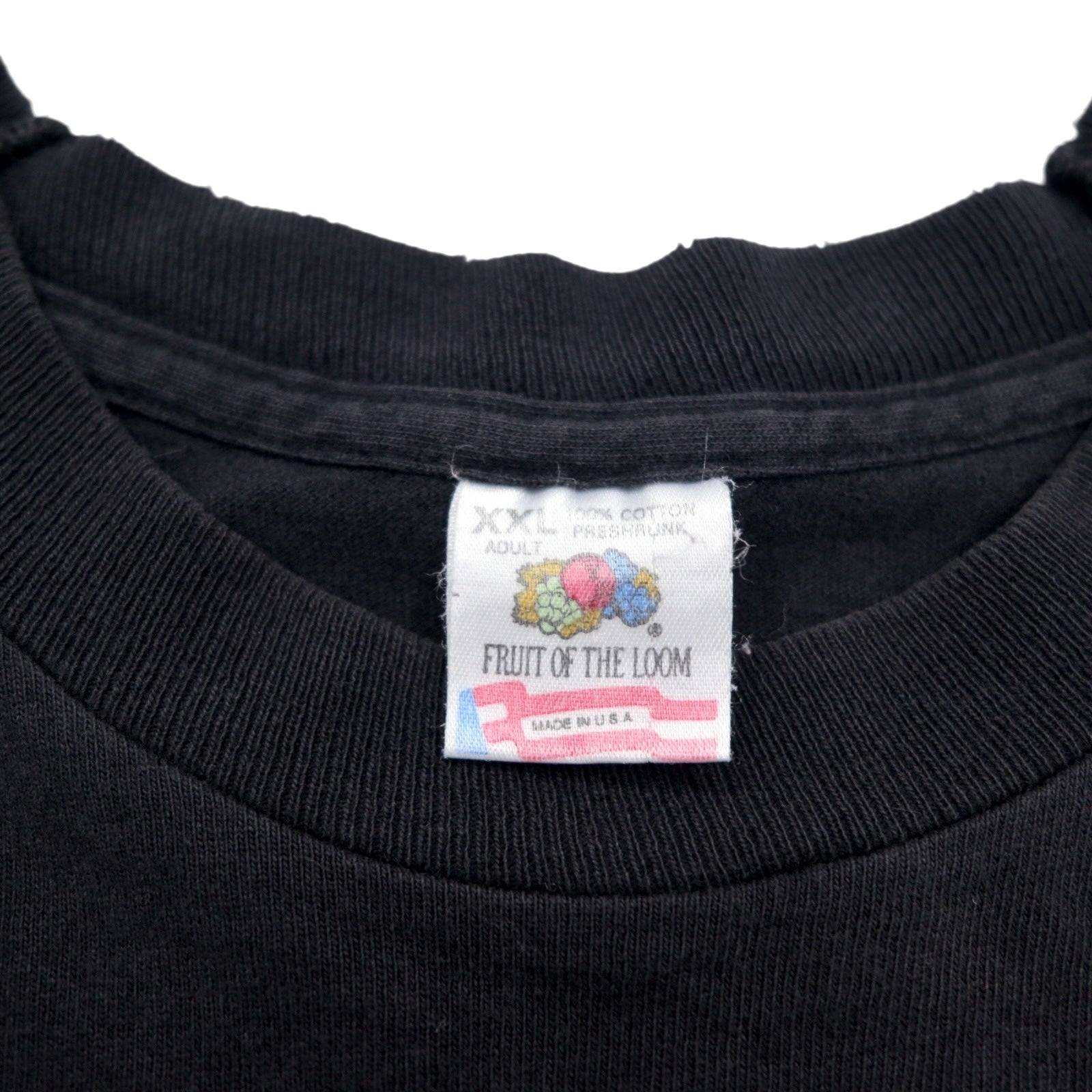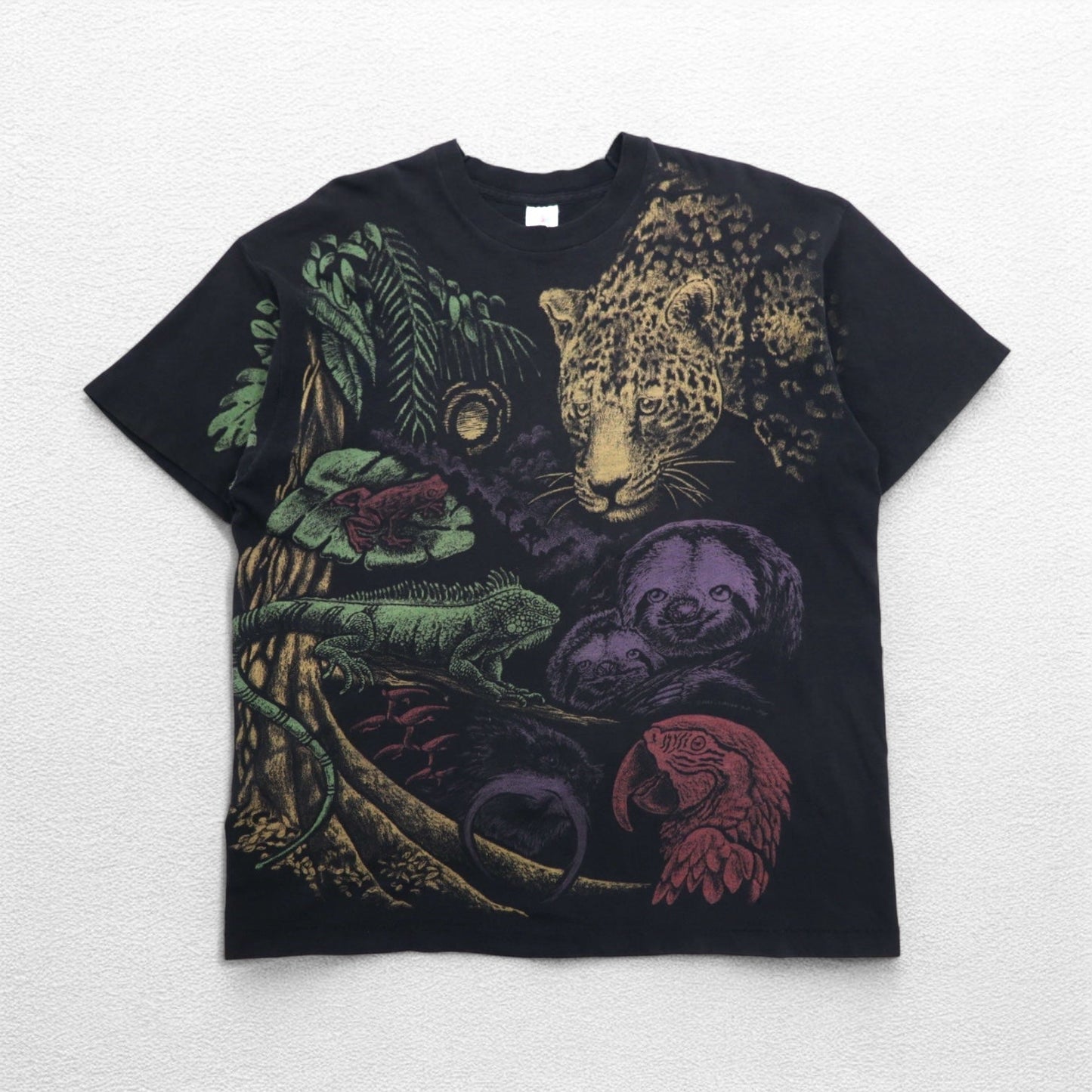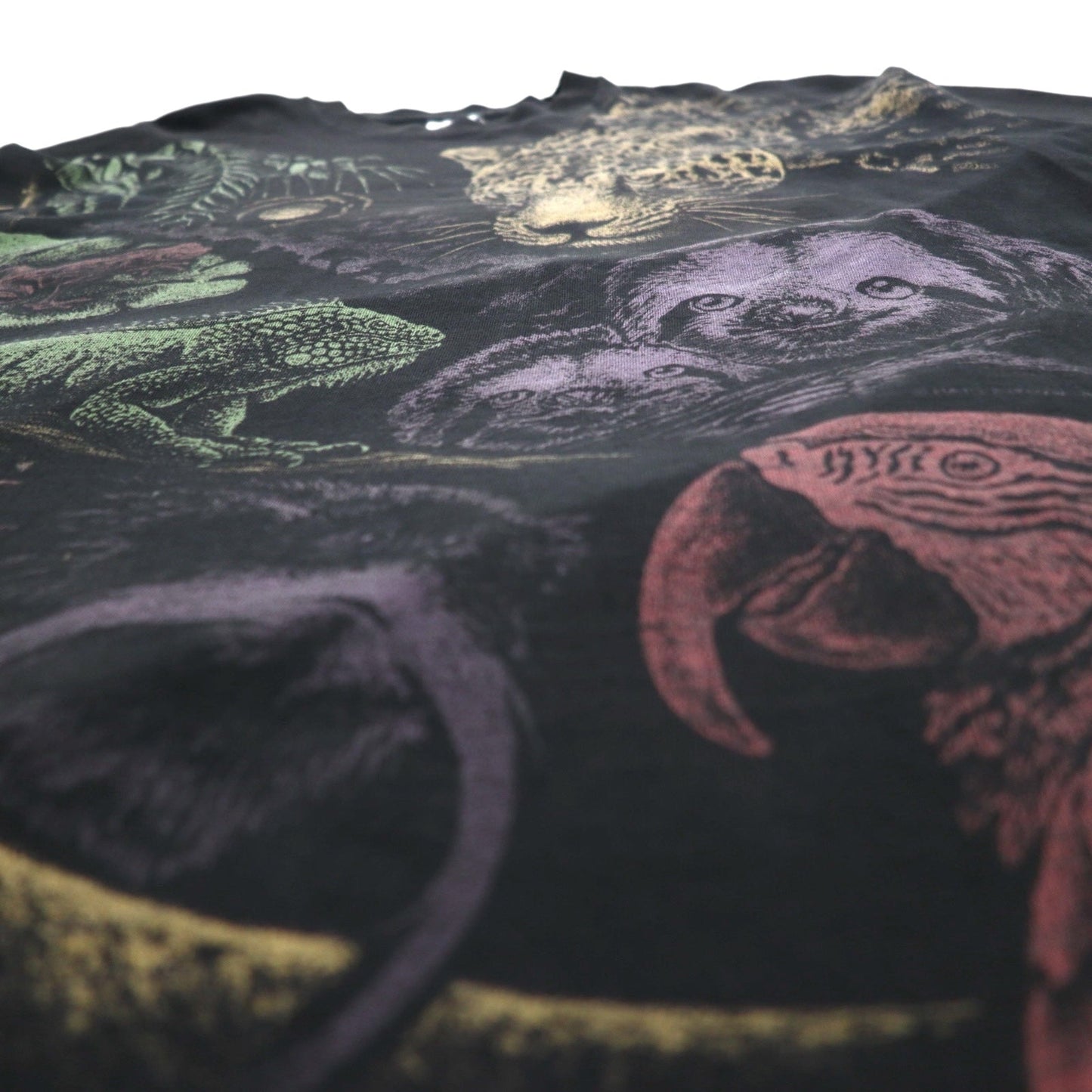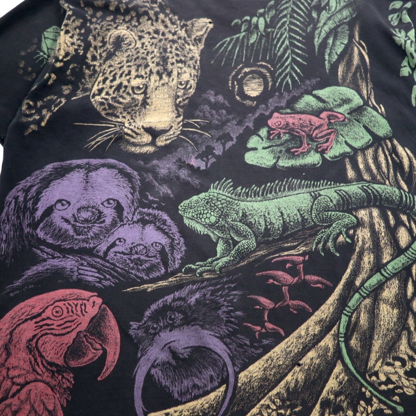 USA製 80年代 FRUIT OF THE LOOM シングルステッチ 総柄 アニマル Tシャツ 2XL ブラック コットン