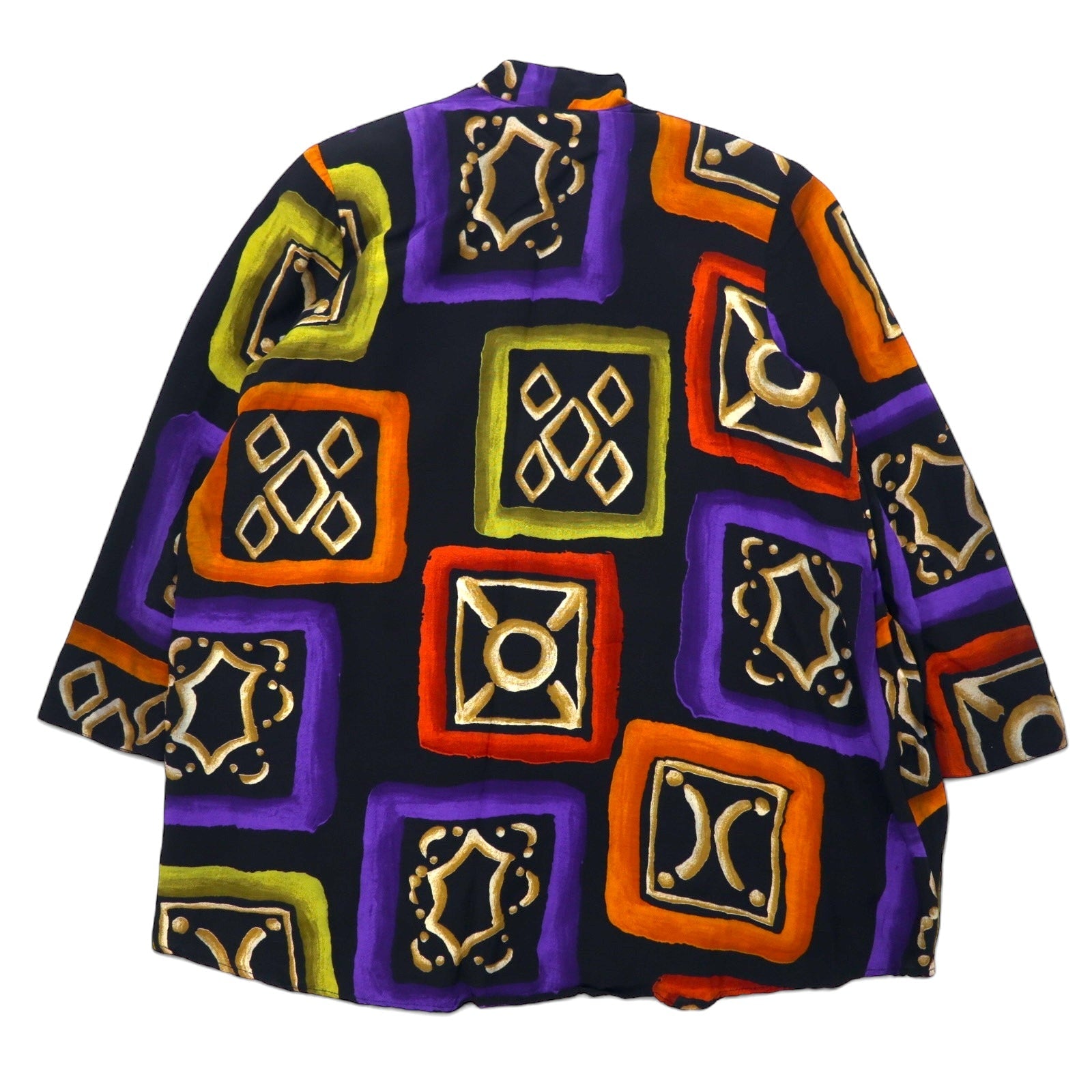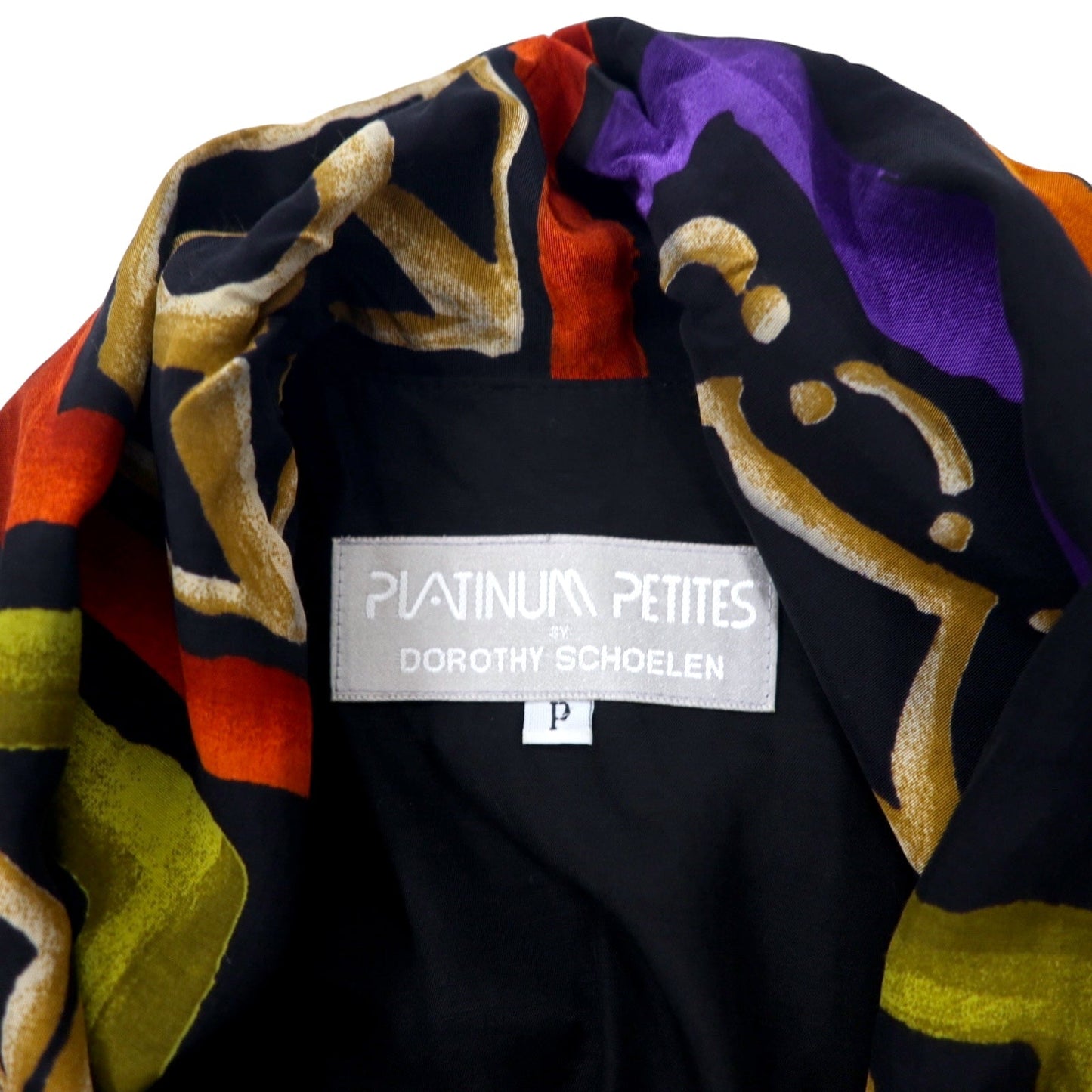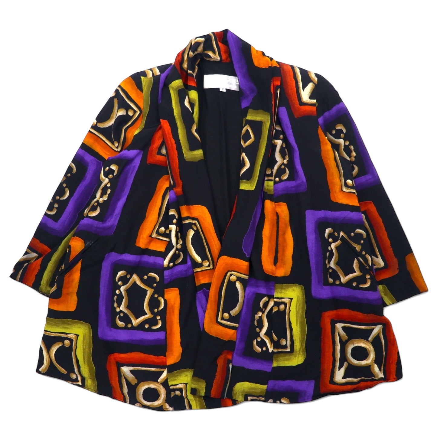 USA製 80年代 PLATINUM PETITES by DOROTHY SCHOELEN レトロ 総柄 ジャケット M ブラック レーヨン 幾何学 アート柄