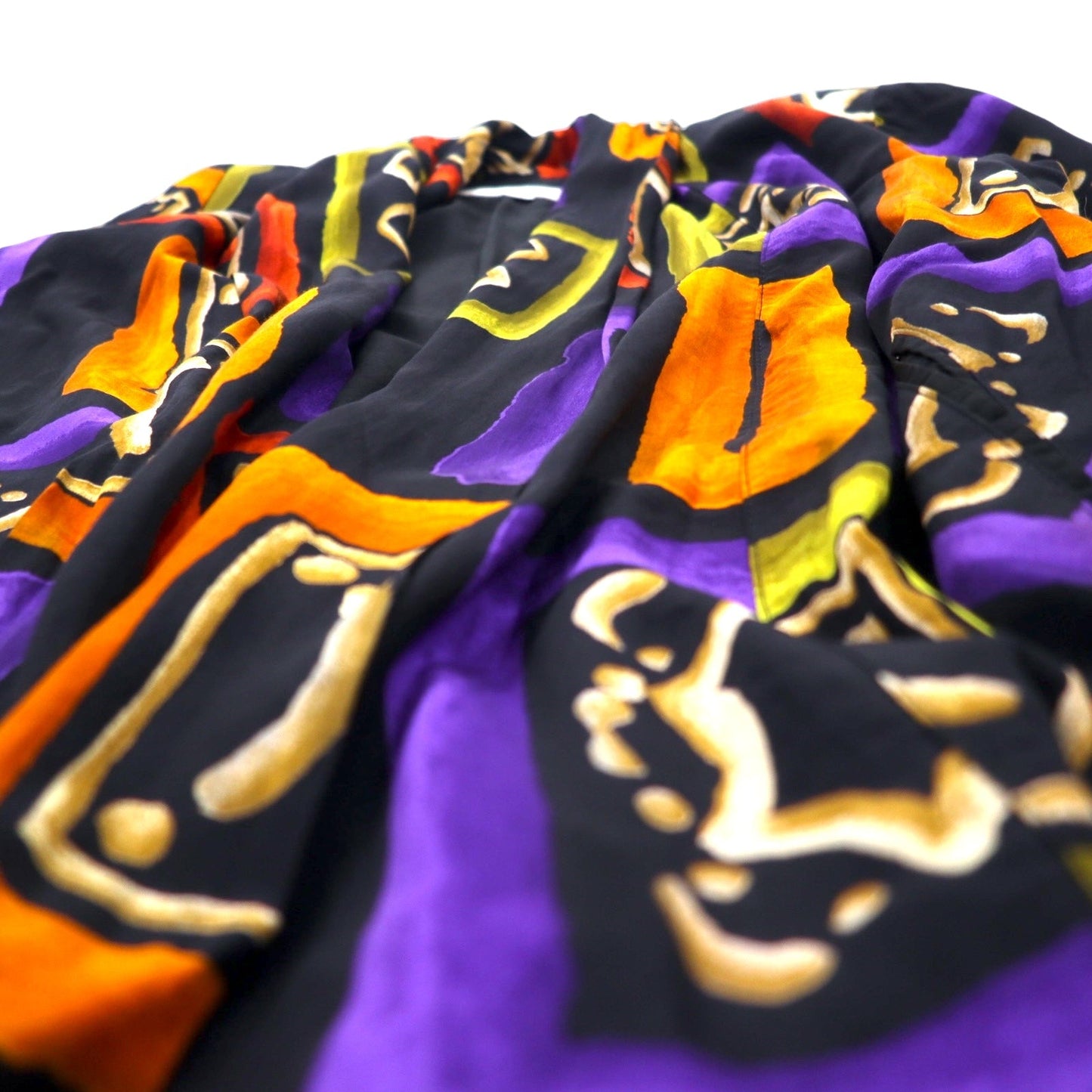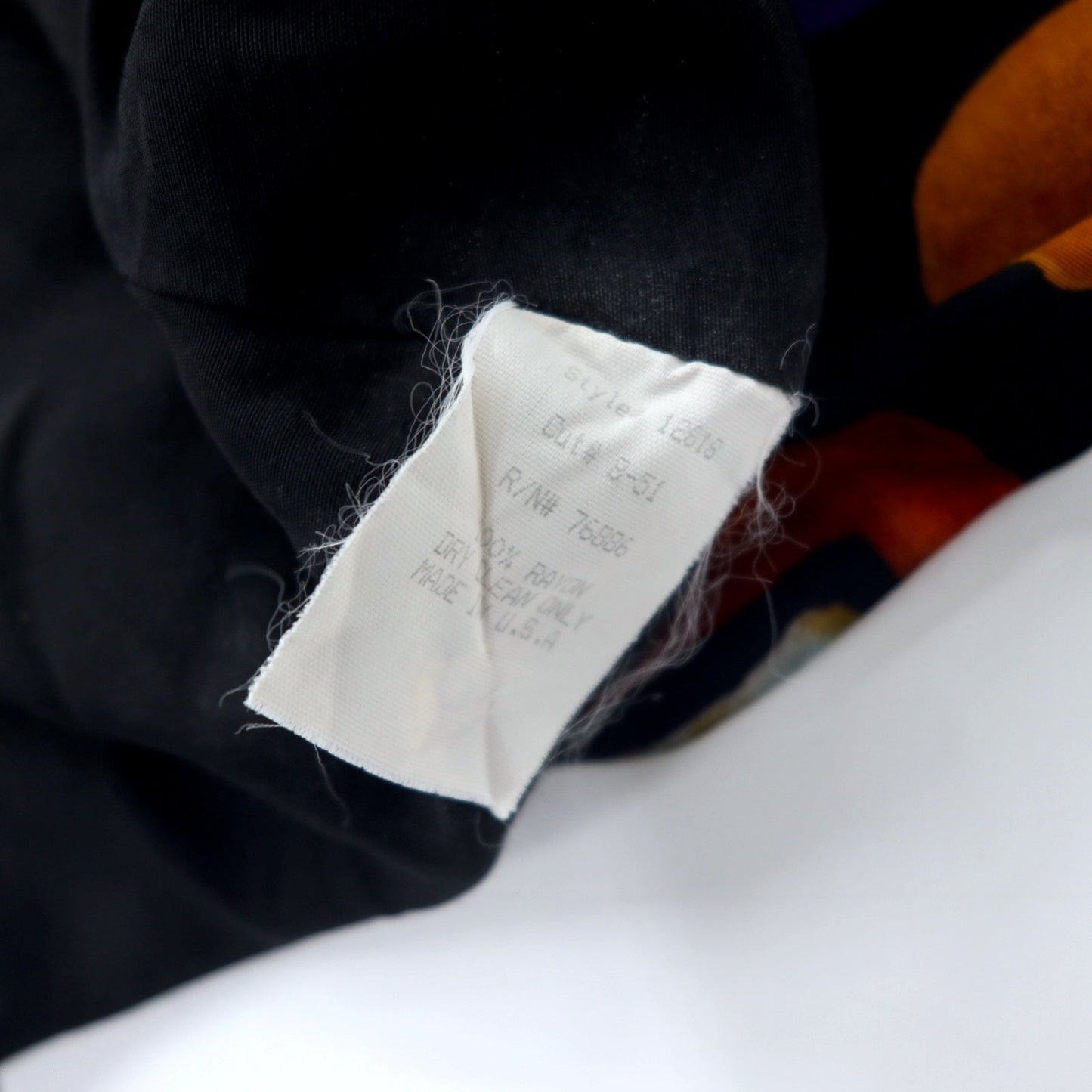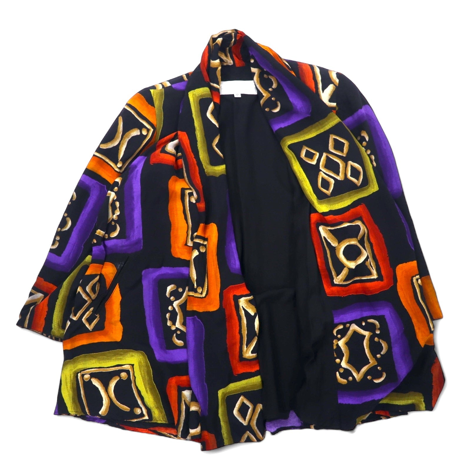USA製 80年代 PLATINUM PETITES by DOROTHY SCHOELEN レトロ 総柄 ジャケット M ブラック レーヨン 幾何学 アート柄