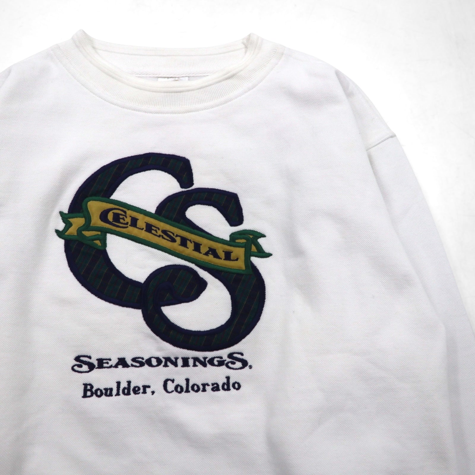 USA製 90年代 BAC PREMIER カレッジ刺繍 スウェット M ホワイト コットン 鹿の子 裏起毛 CELESTIAL