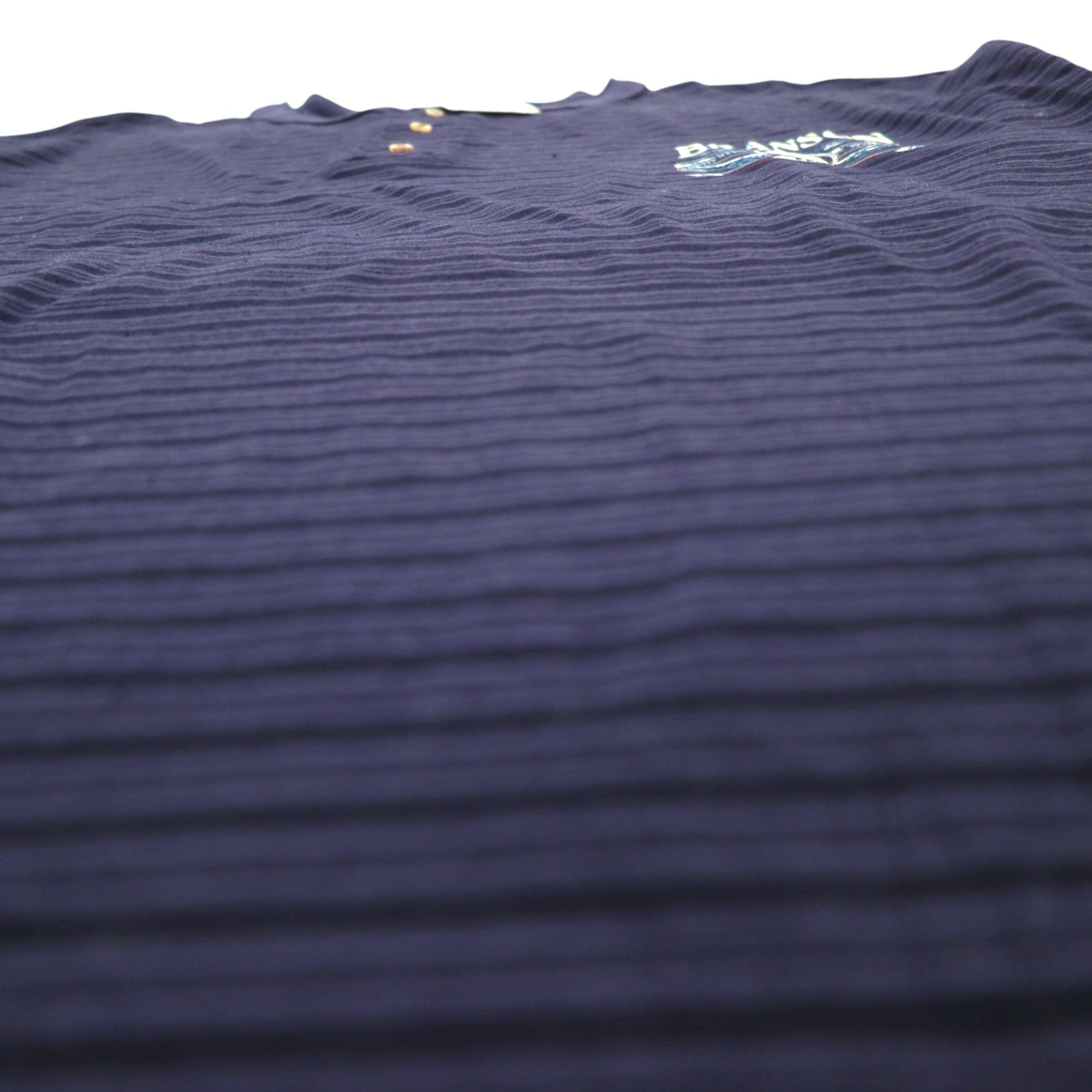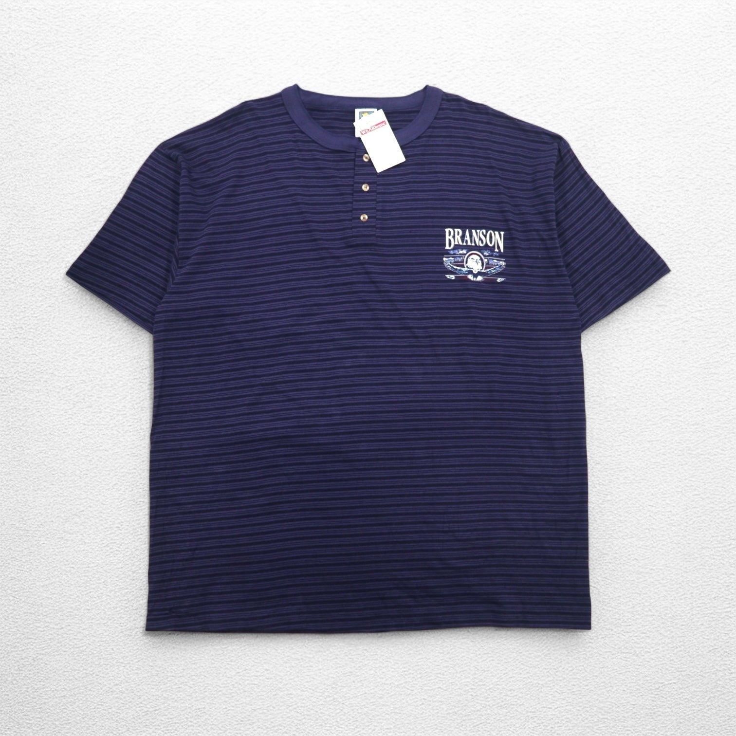 USA製 90年代 COTTON DELUXE シングルステッチ ヘンリーネック Tシャツ 2XL ネイビー ボーダー BRANSON 未使用品