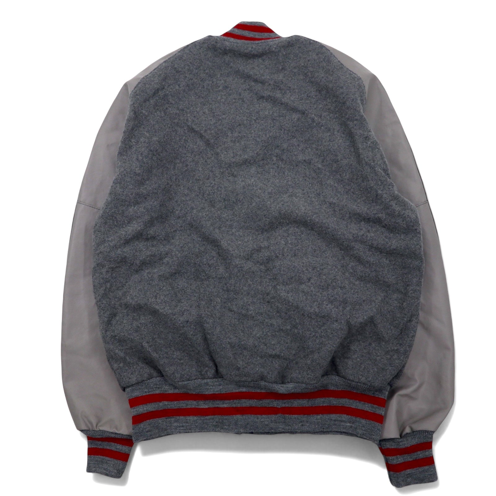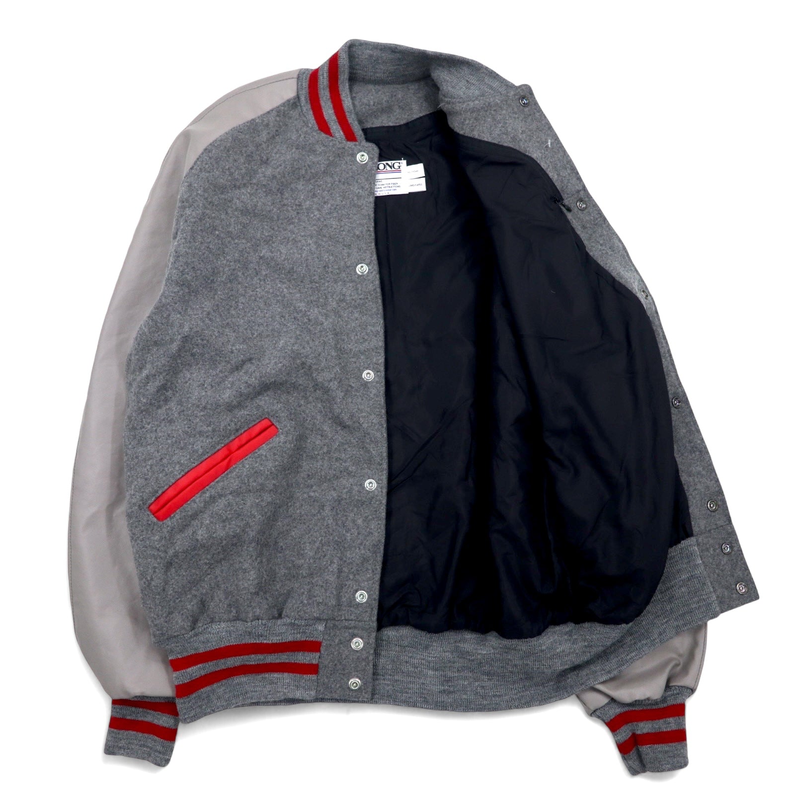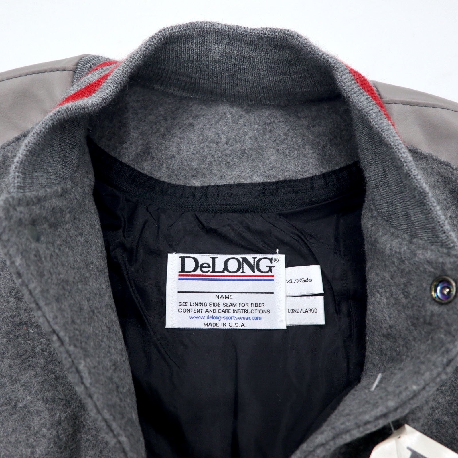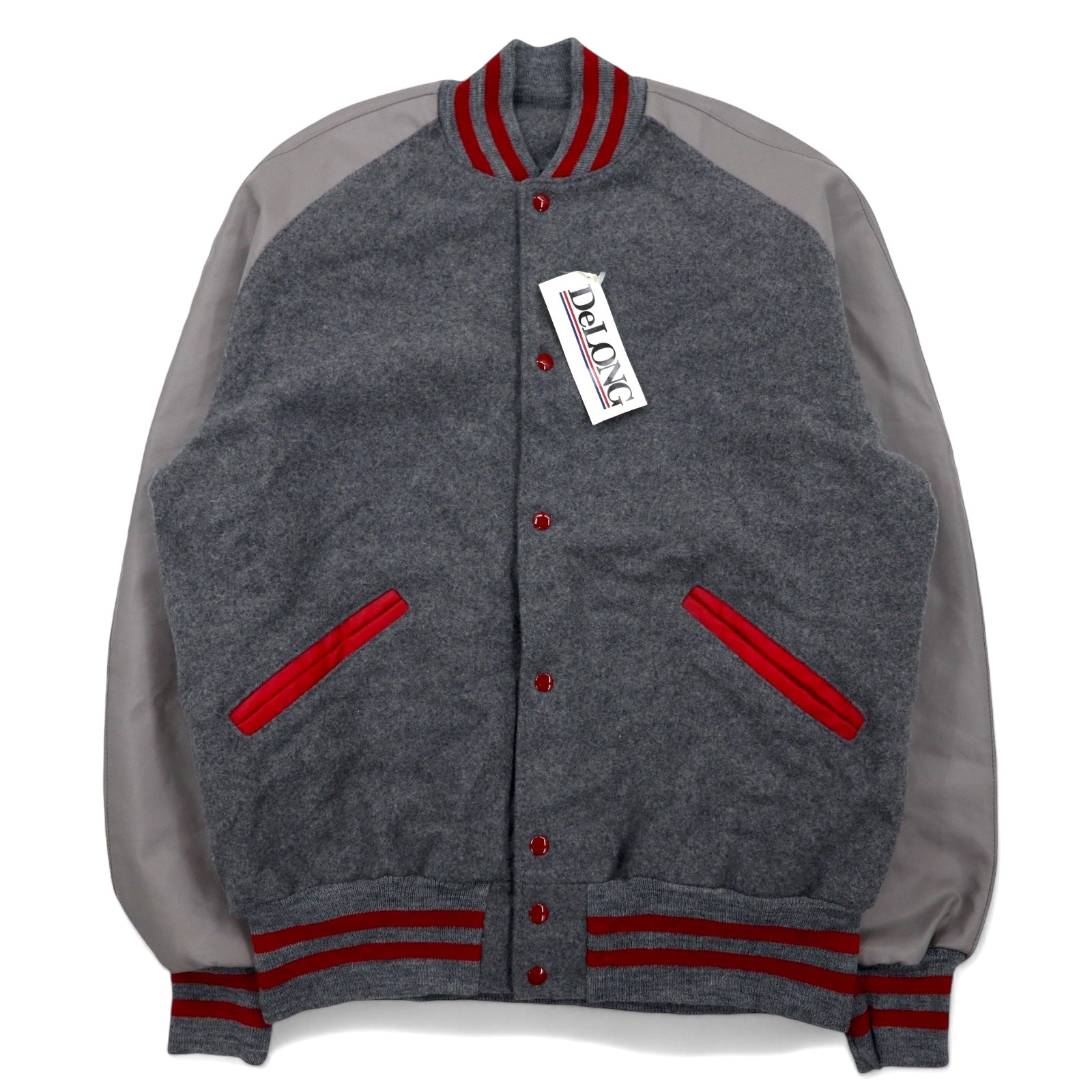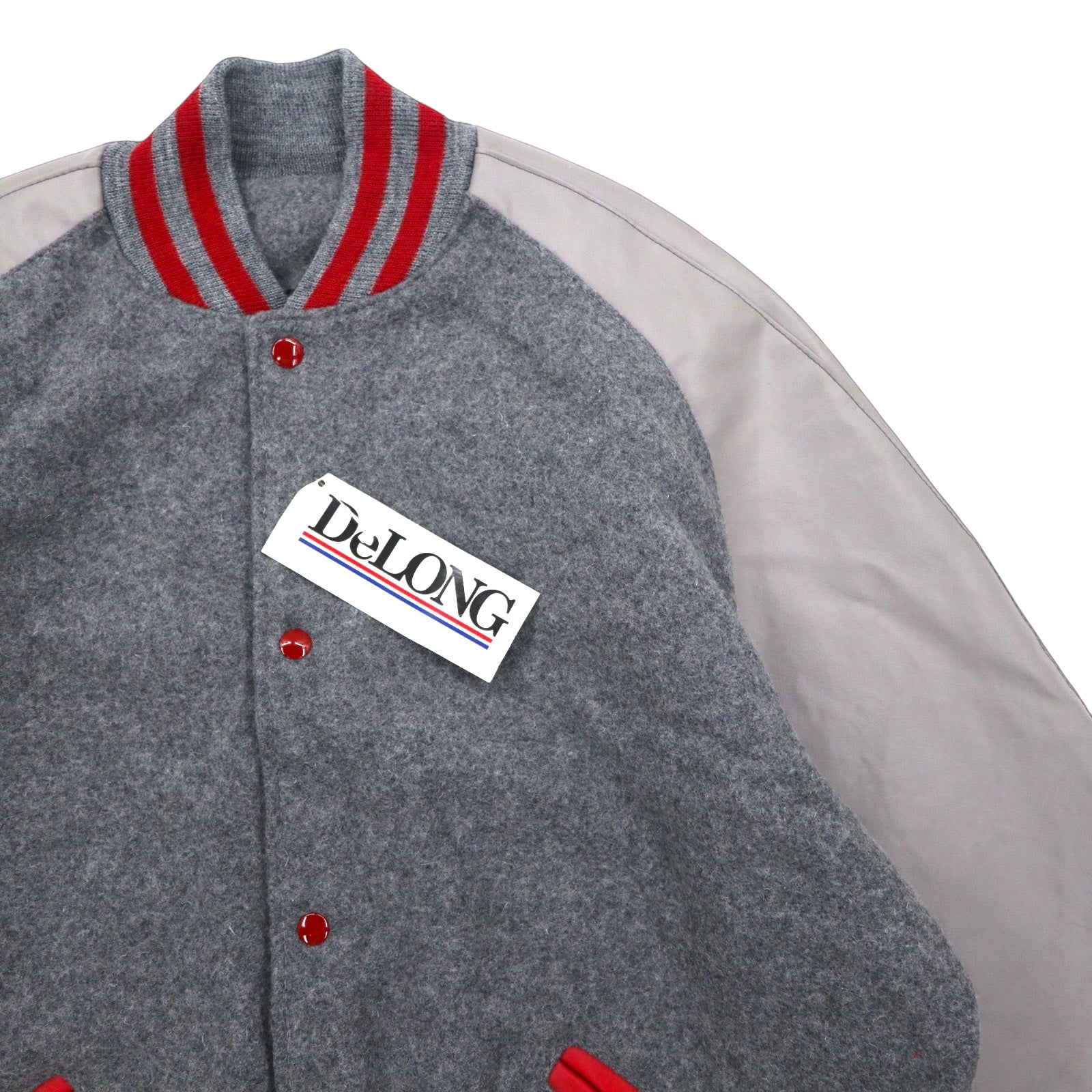 USA製 90年代 DeLONG 袖PUレザー切替 スタジャン XL グレー ウール 未使用品