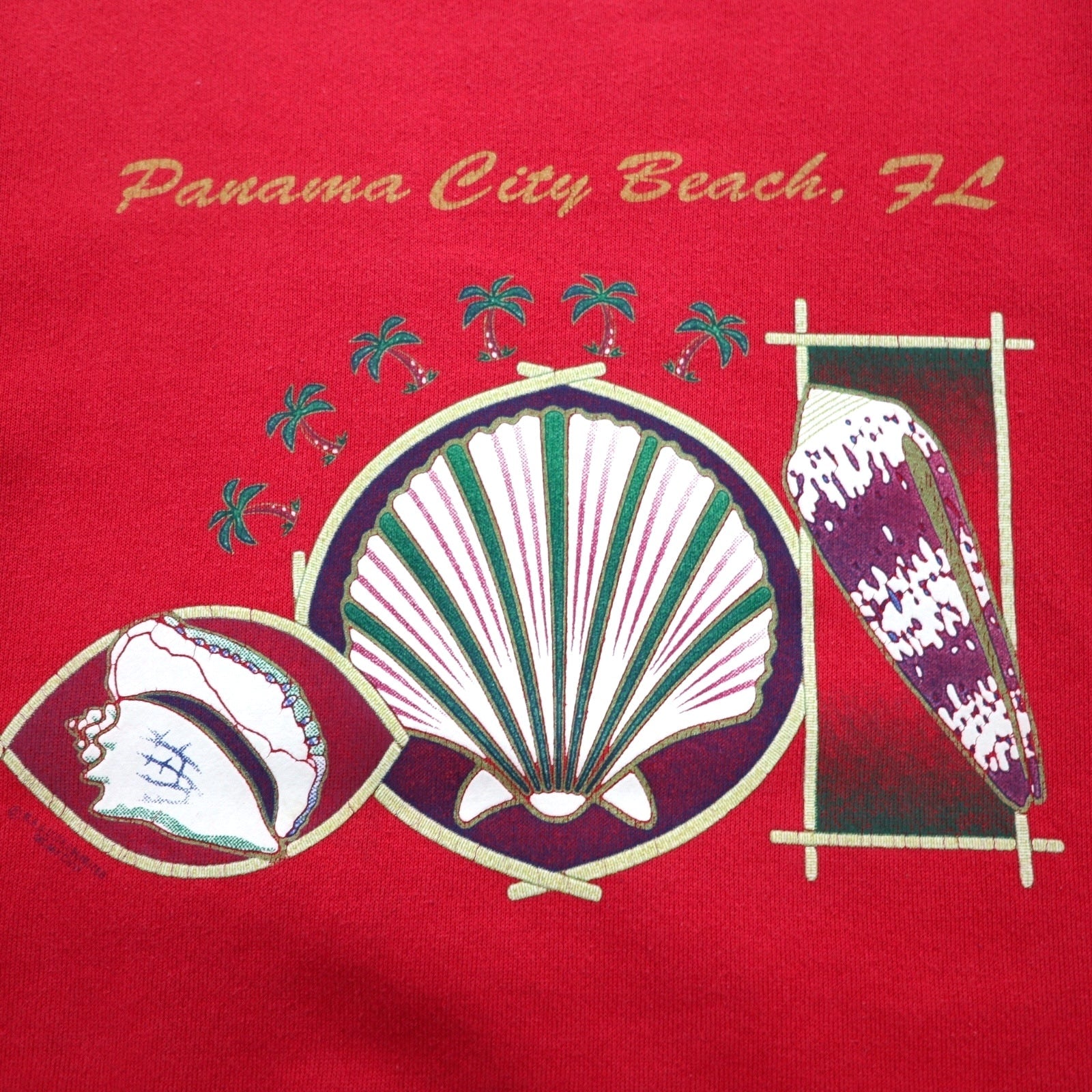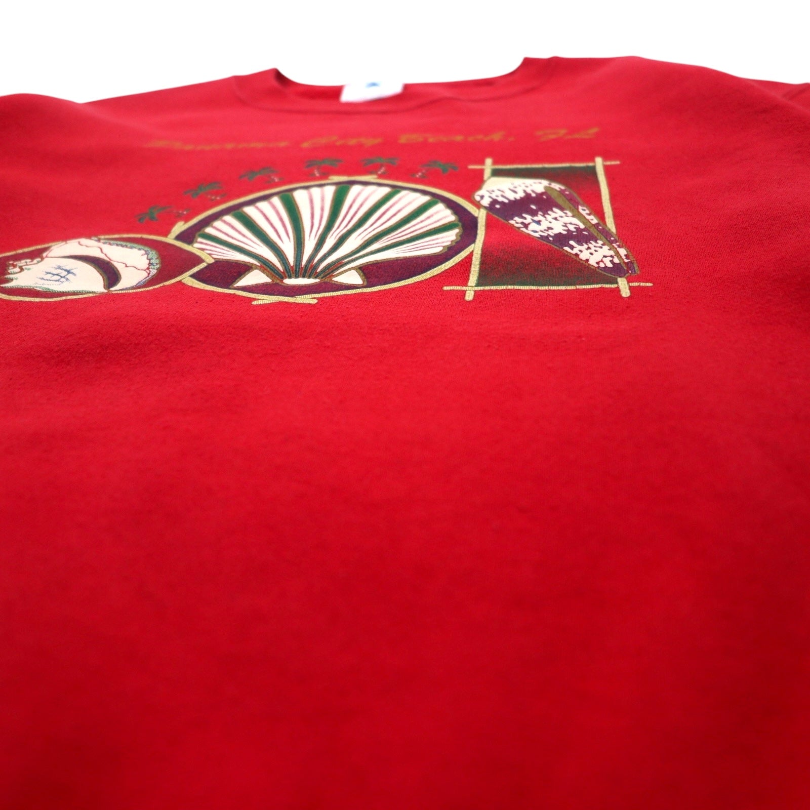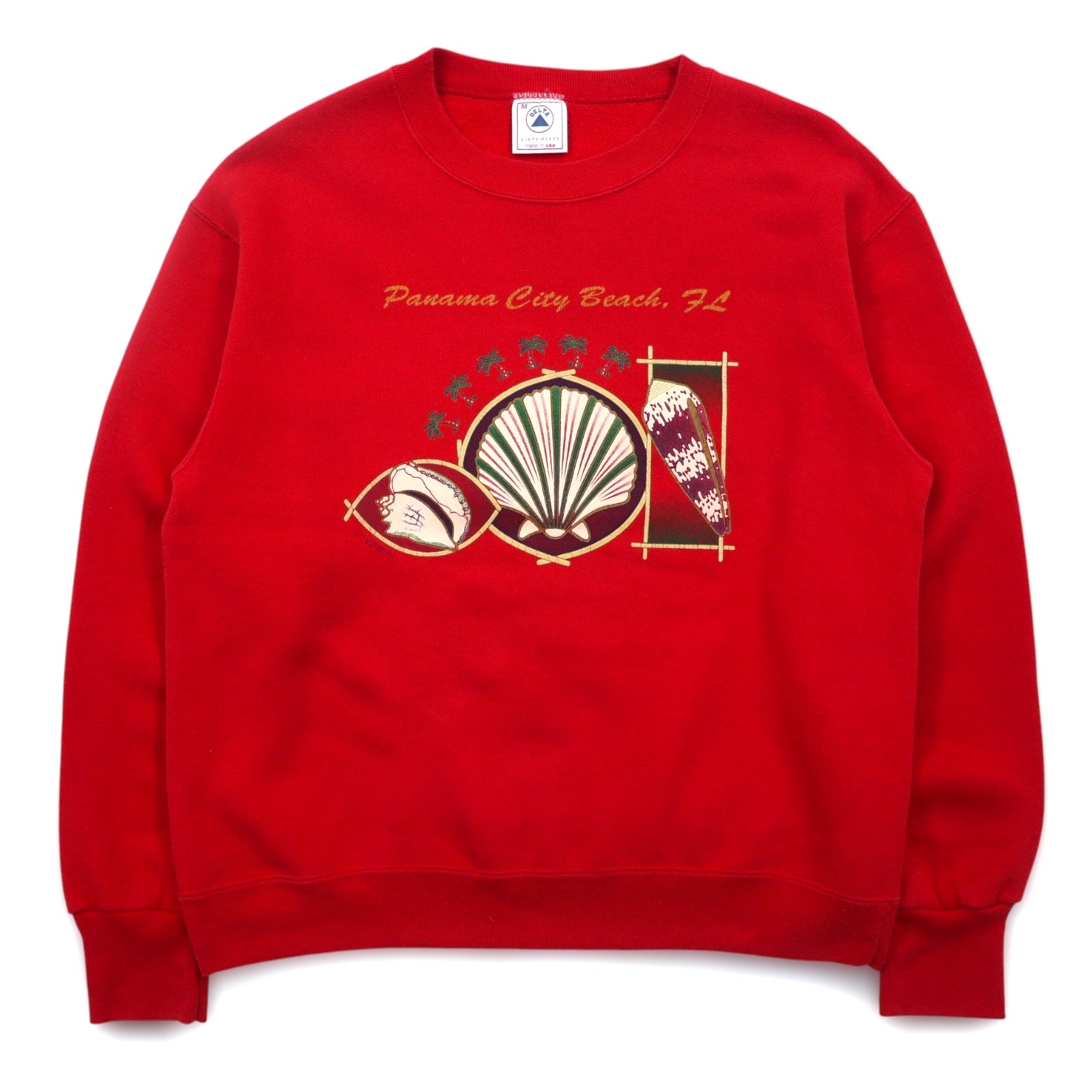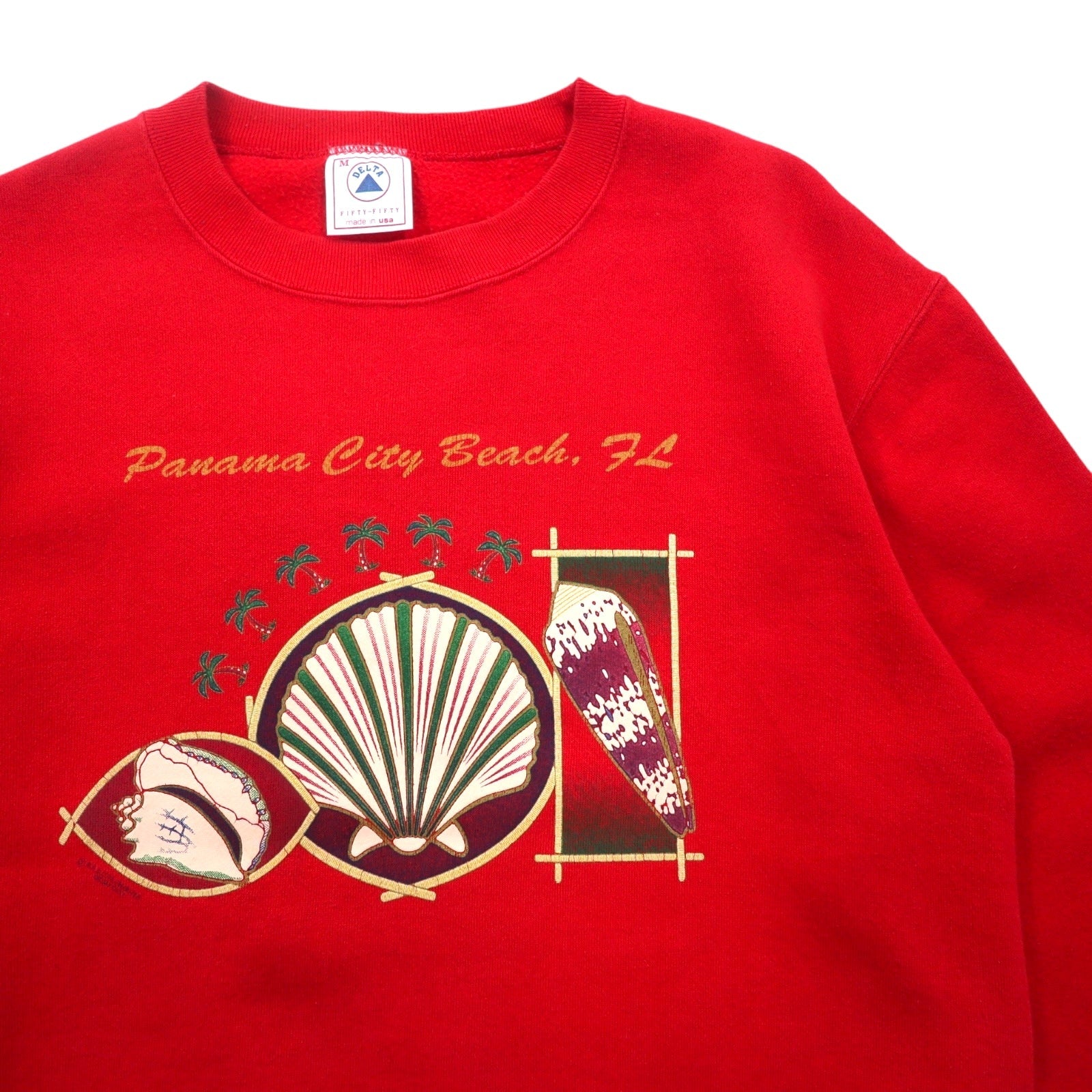 USA製 90年代 DELTA プリント スウェット M レッド コットン FIFTY-FIFTY 裏起毛 Panama City Beach