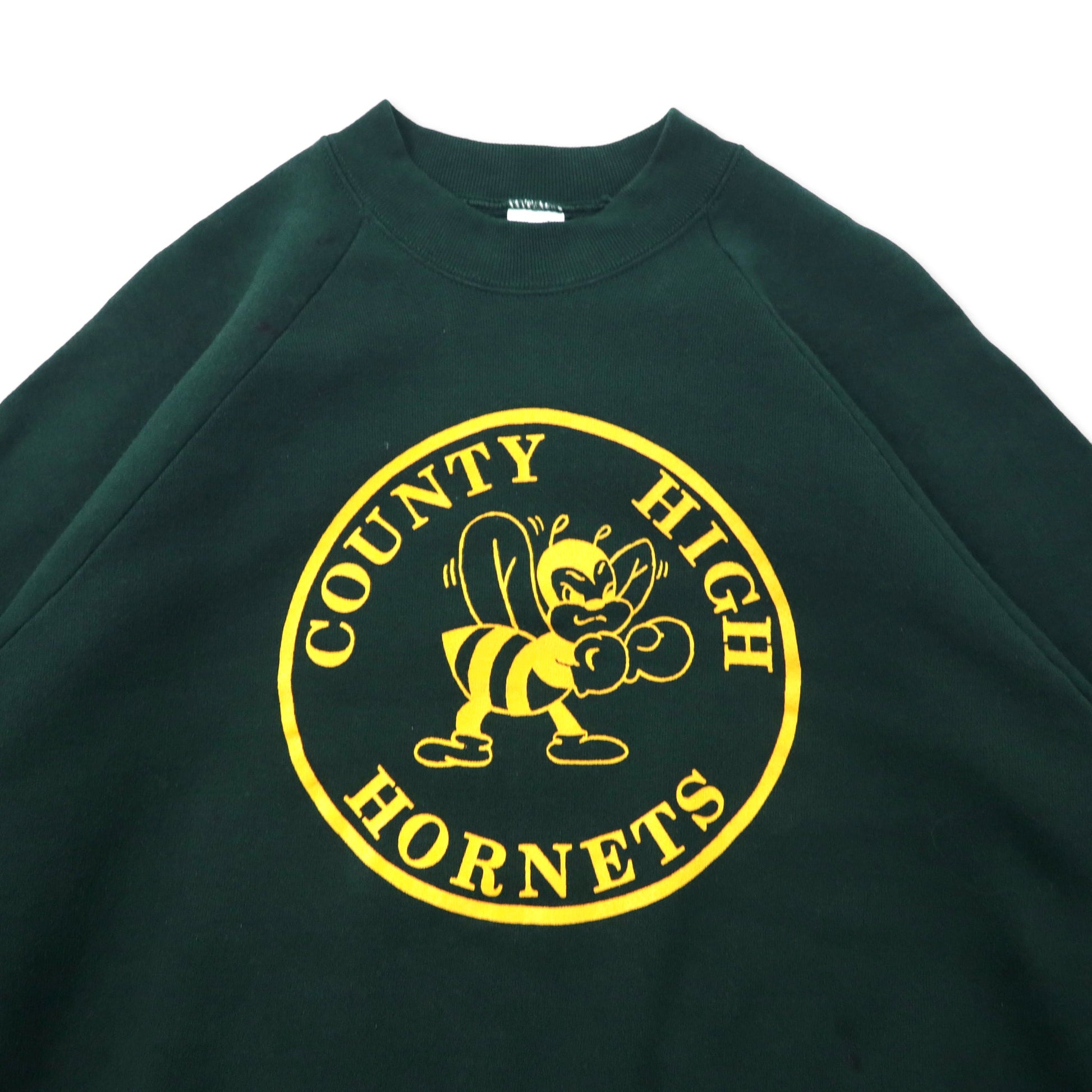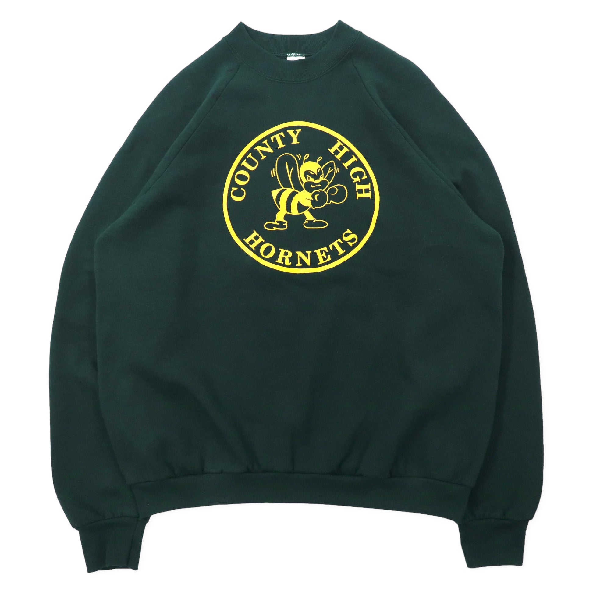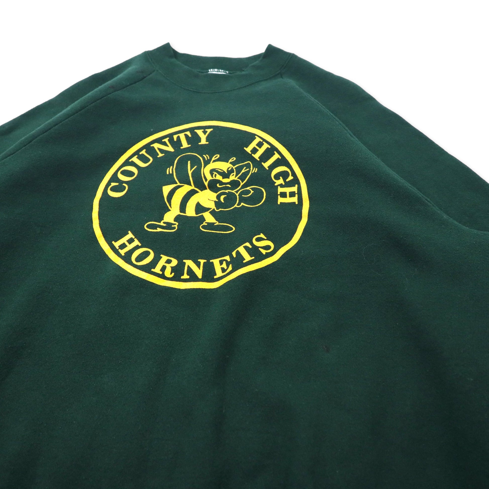 USA製 90年代 FRUIT OF THE LOOM カレッジプリントスウェット XXL グリーン コットン 裏起毛 COUNTY HIGH HORNETS ビッグサイズ 90年代