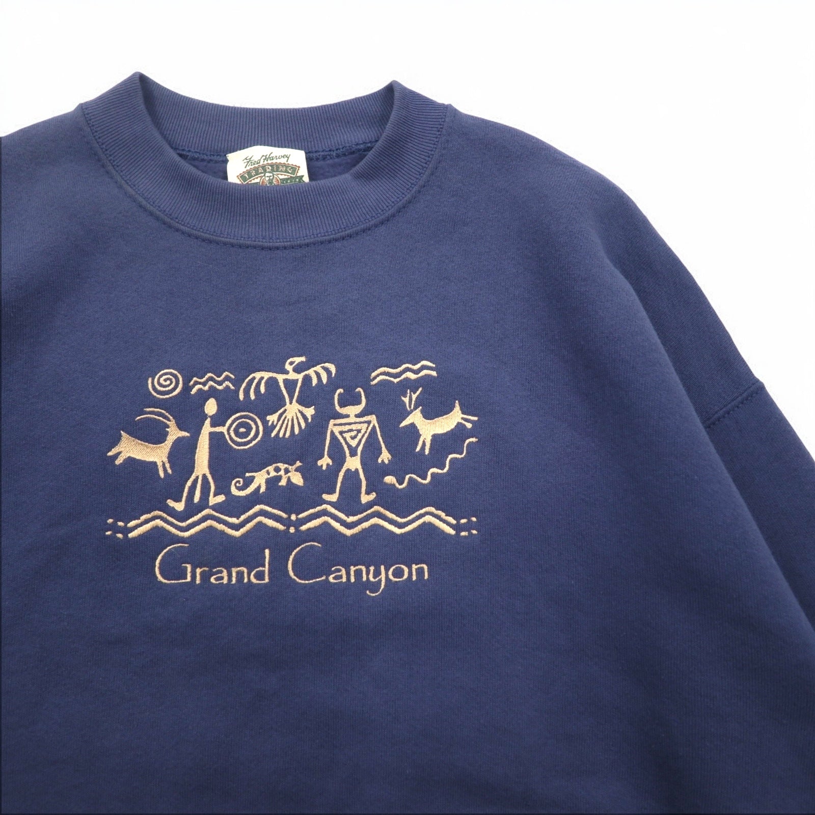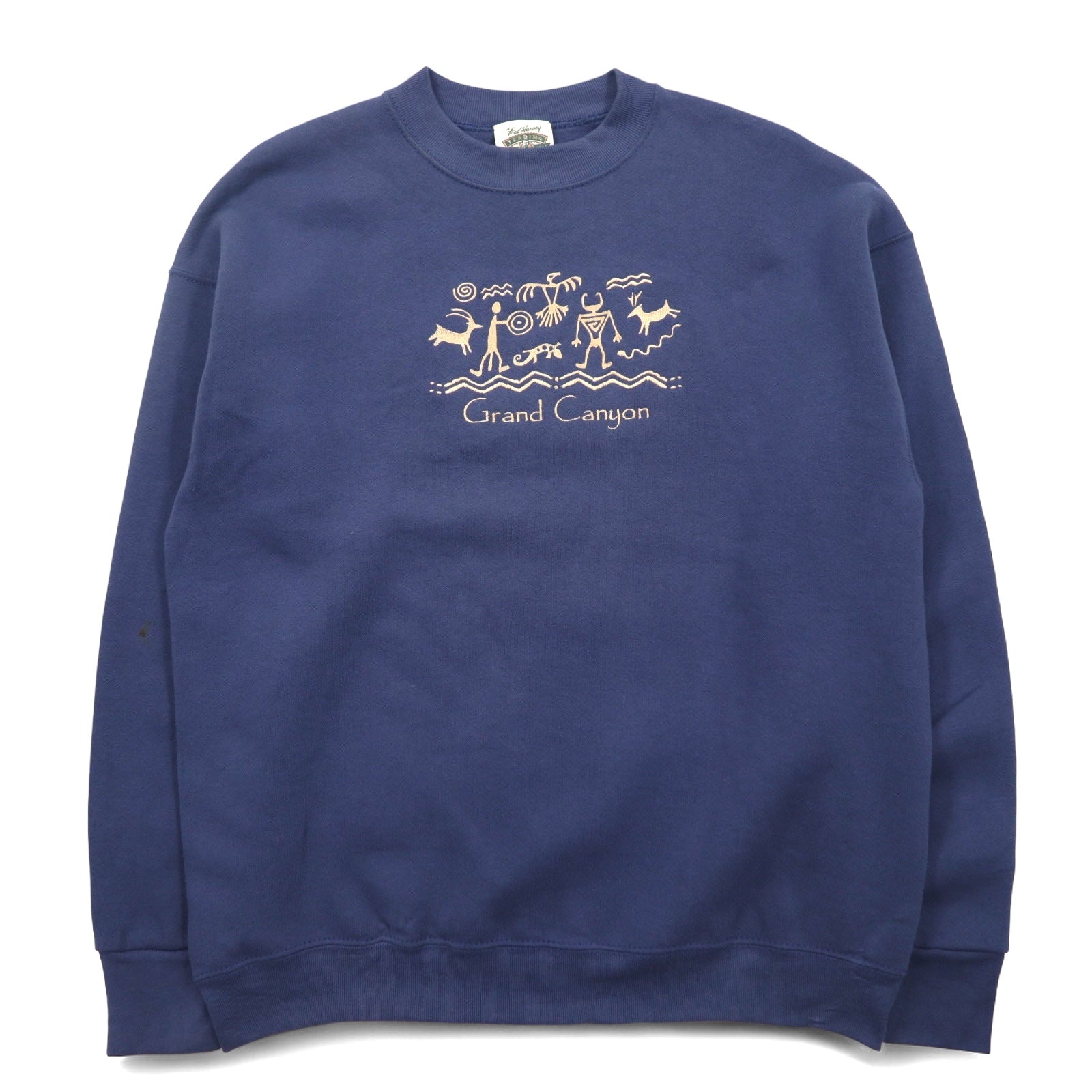 USA製 90年代 FRUIT OF THE LOOM ボディ スウェット L ネイビー 裏起毛 GRAND CANYON 刺繍 Fred Harvey