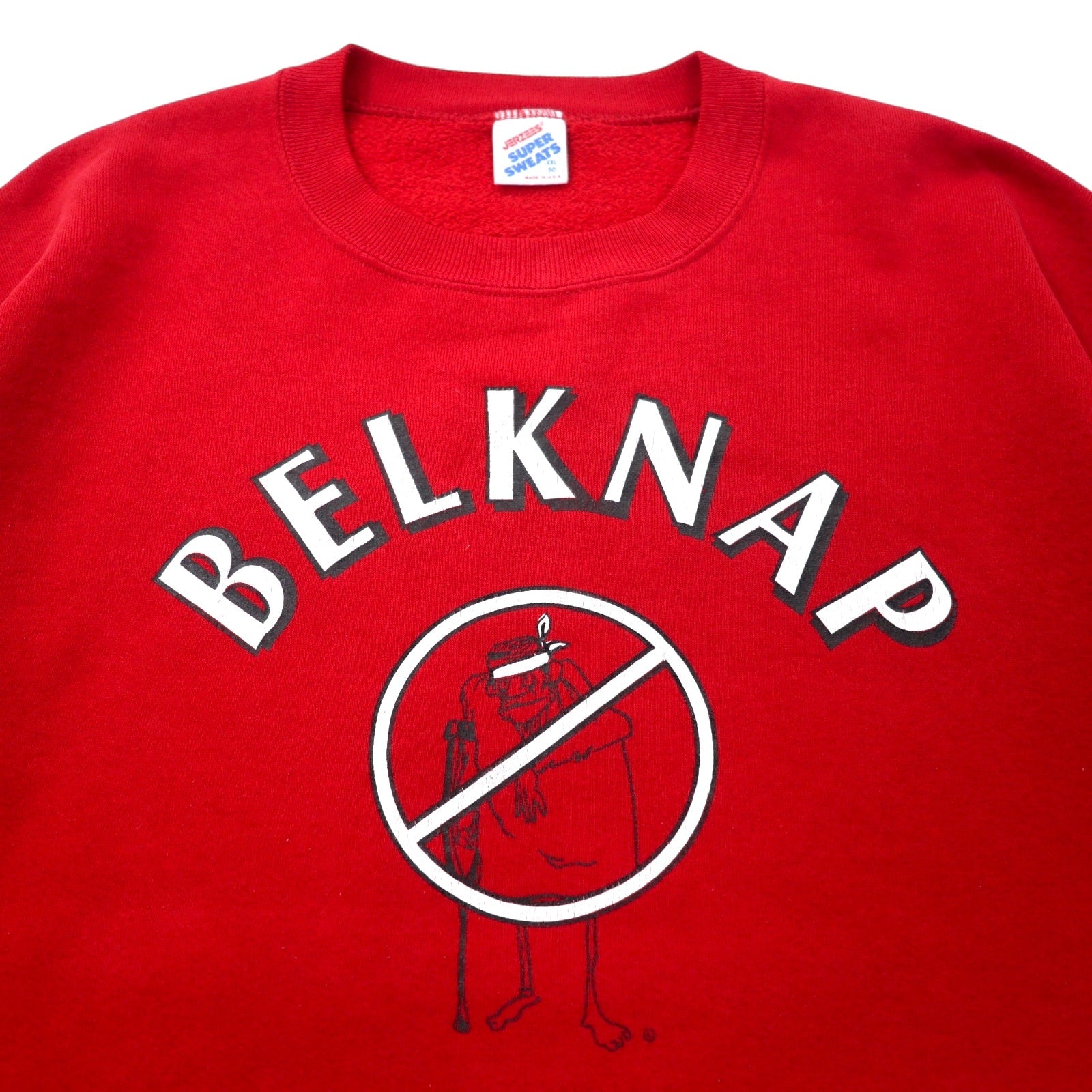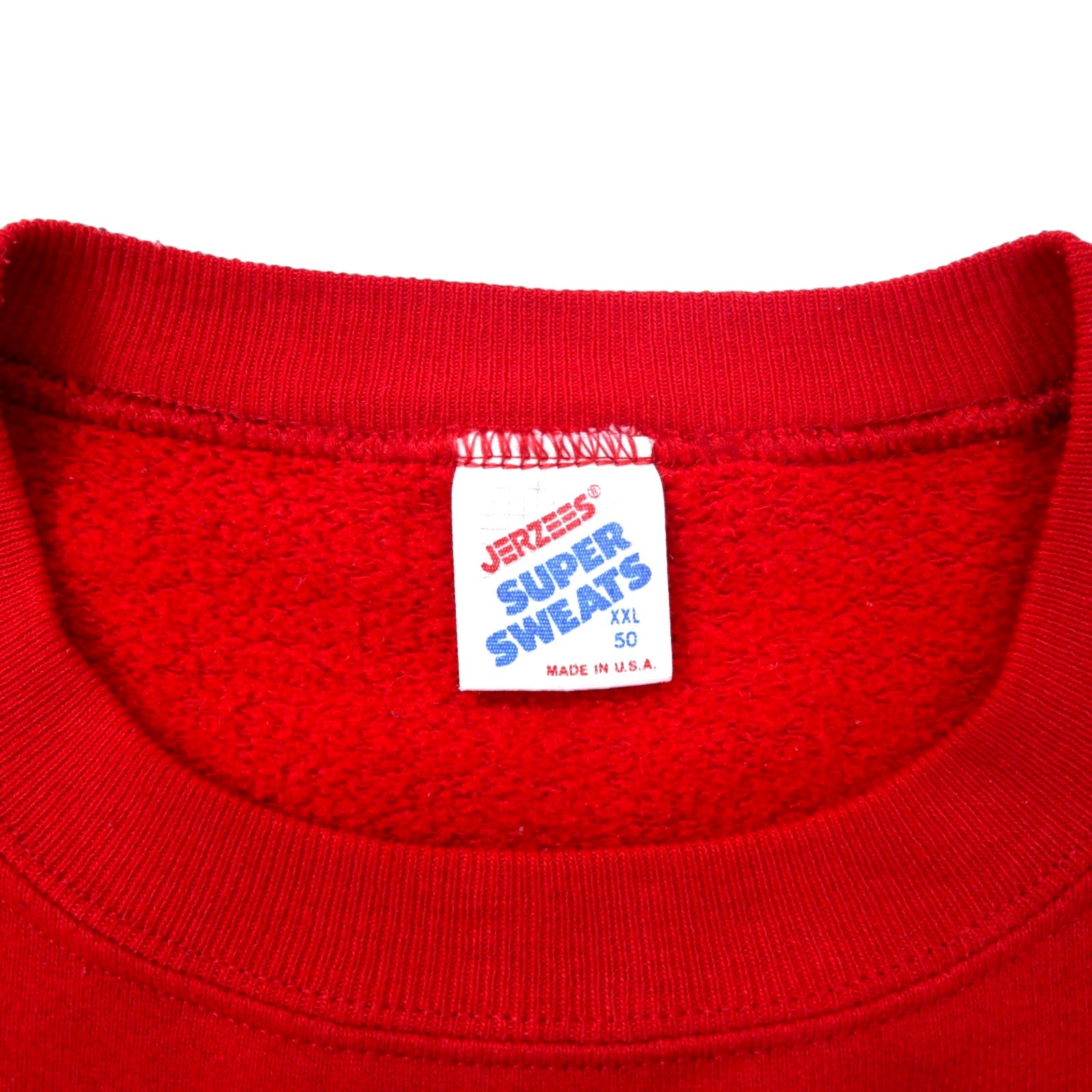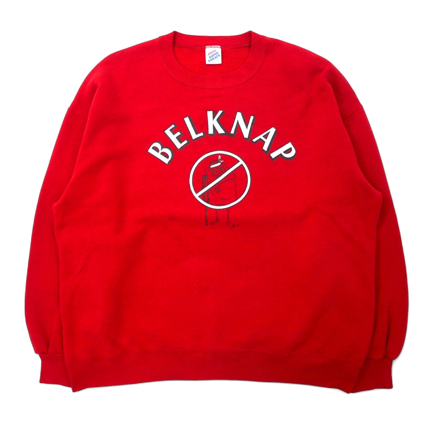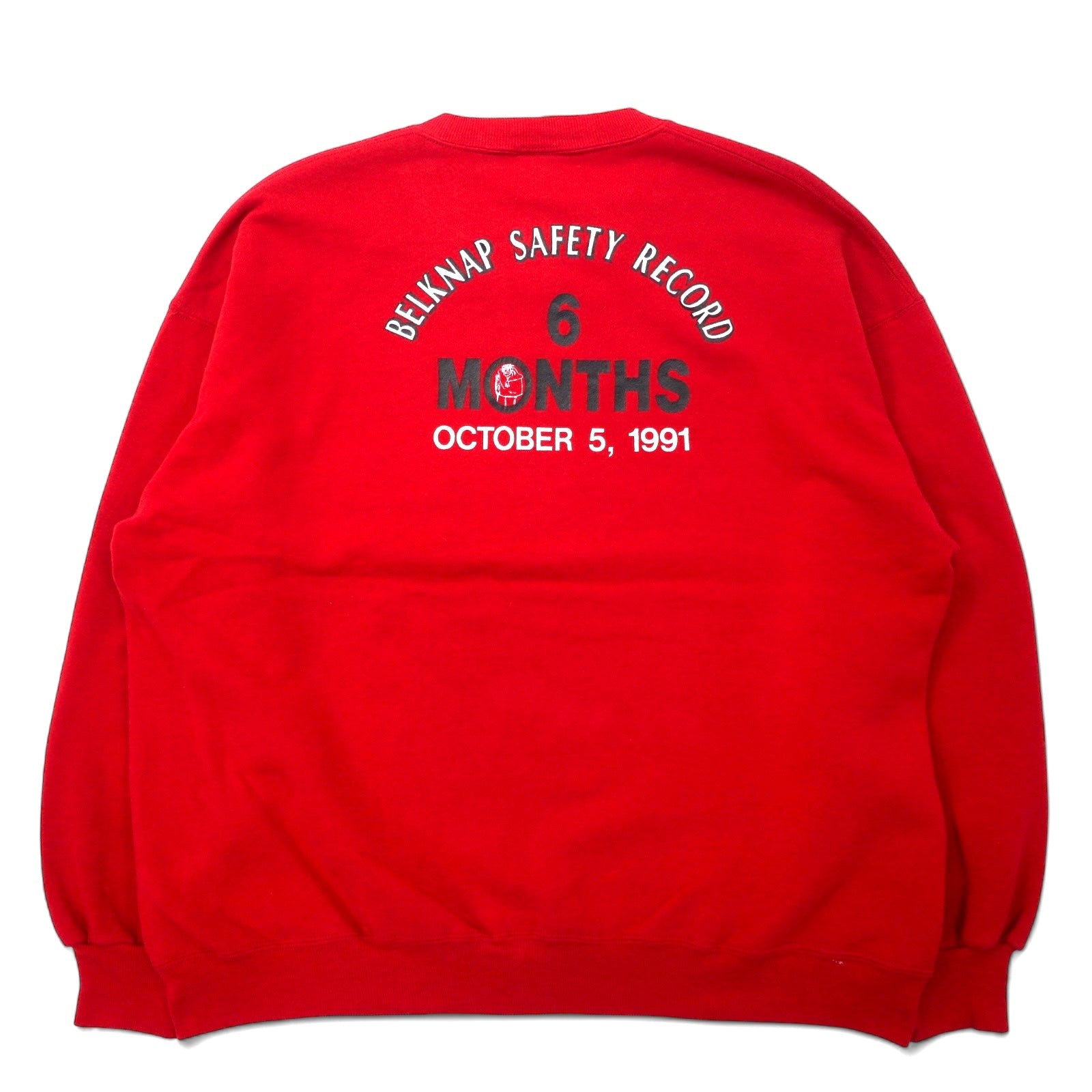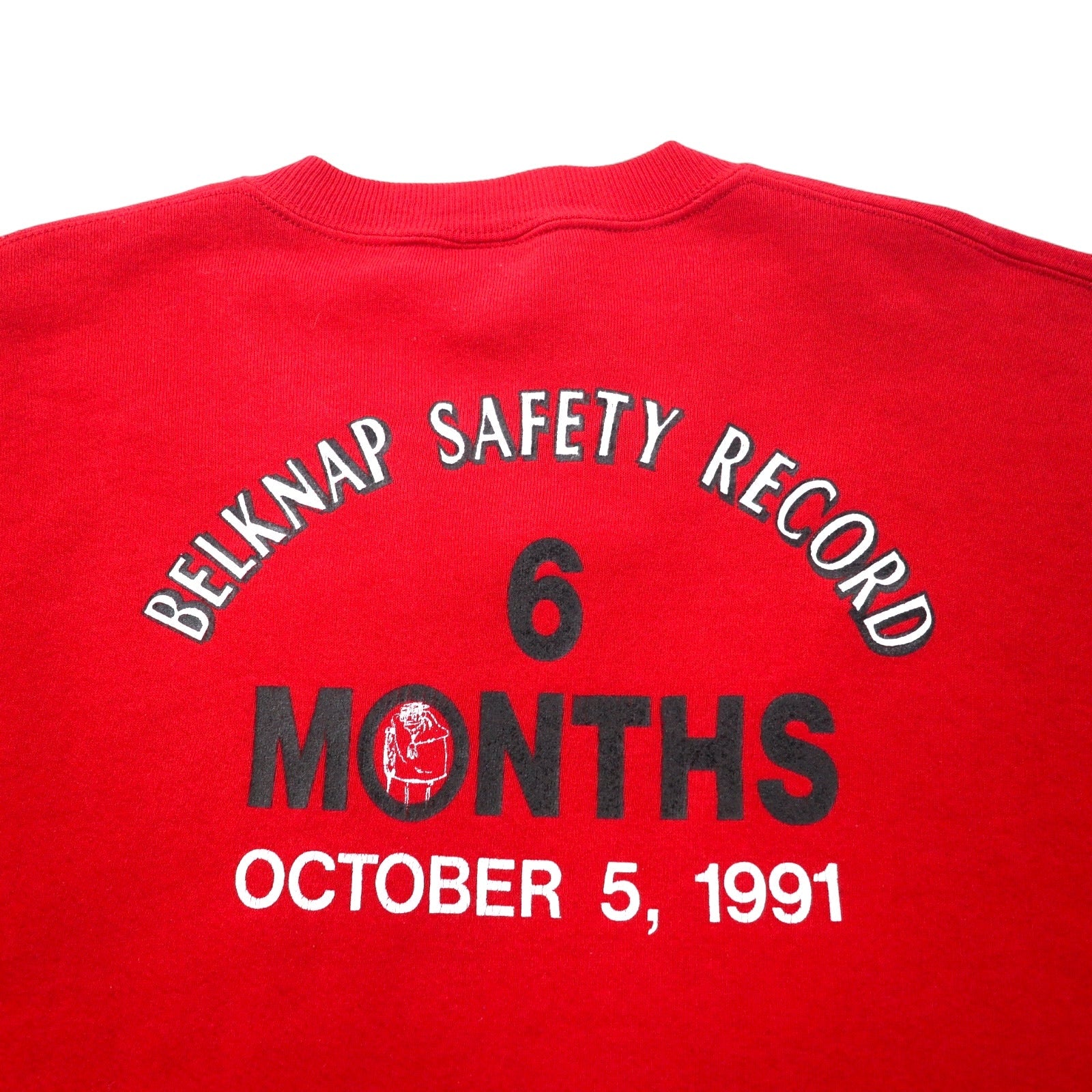 USA製 90年代 JERZEES プリント スウェット XXL レッド コットン BELKNAP SAFETY RECORD