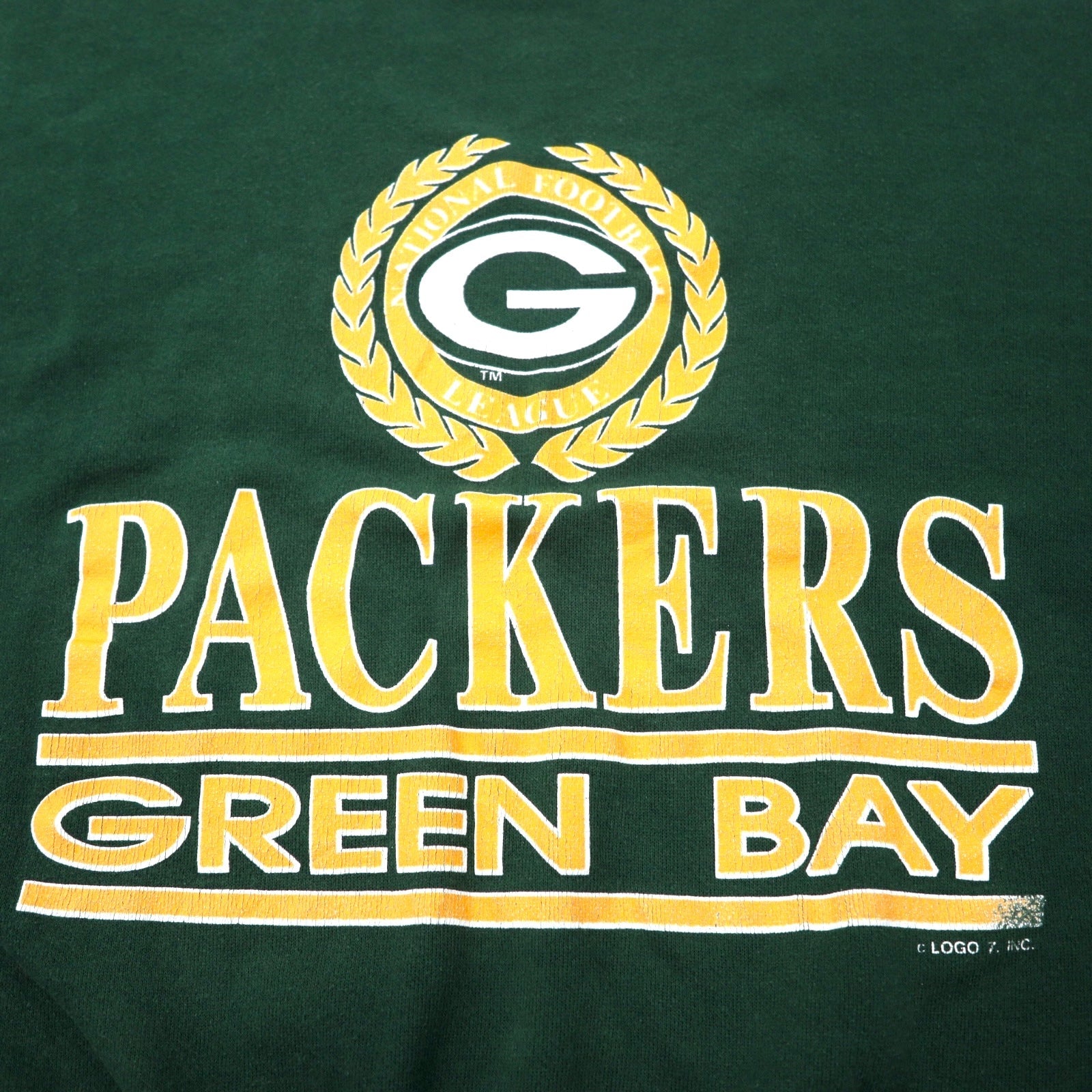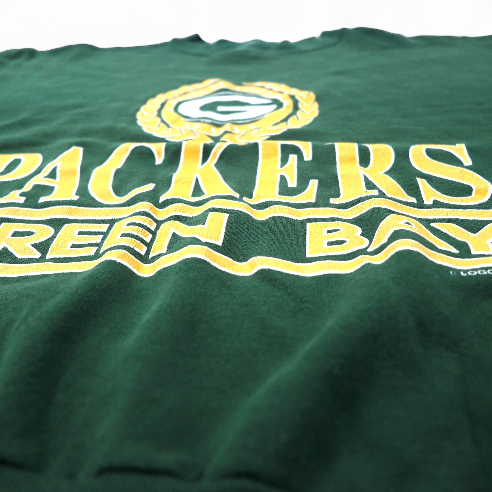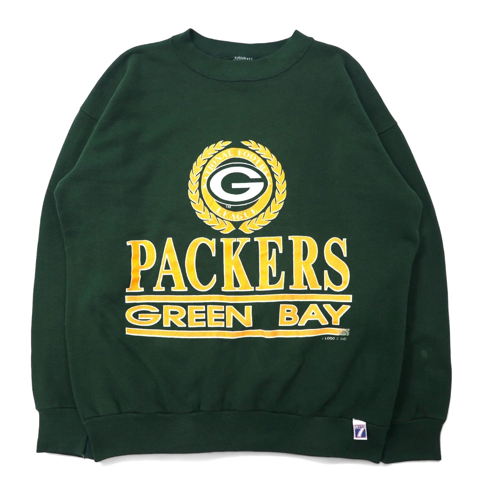 USA製 90年代 LOGO 7 NFL プリント スウェット L グリーン コットン GREEN BAY PACKERS パッカーズ