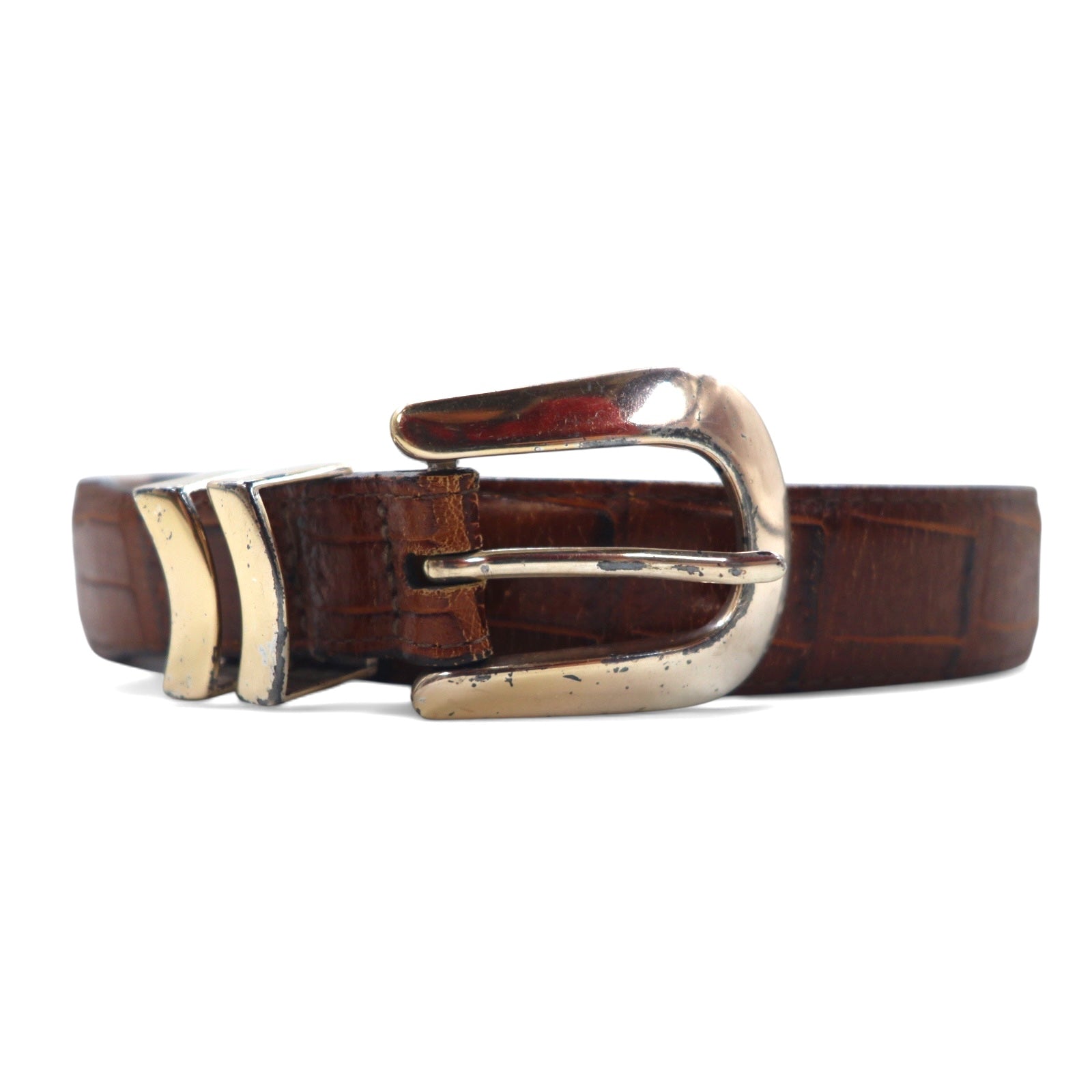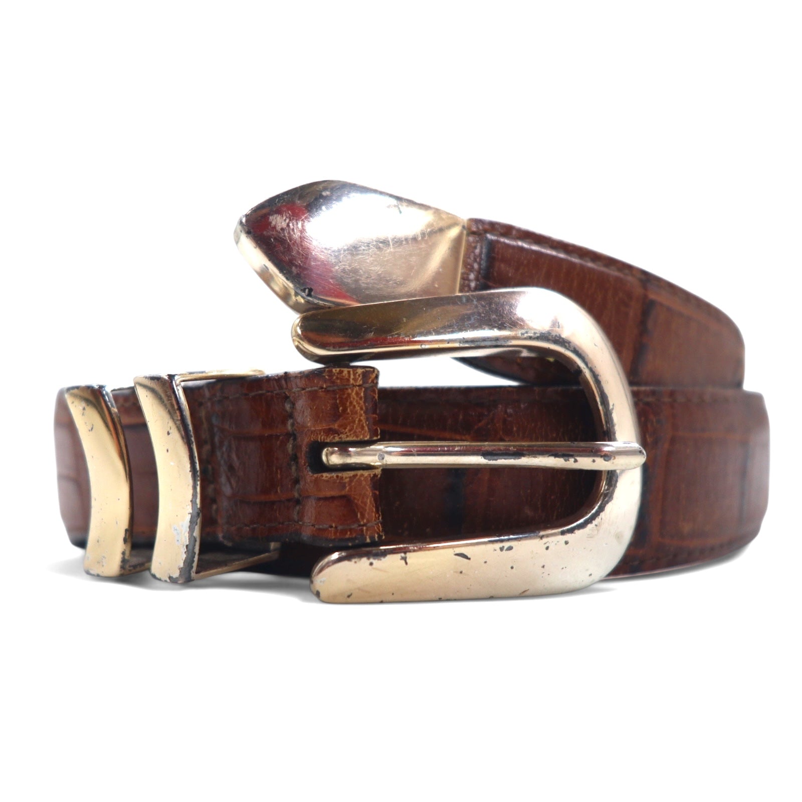 USA製 90年代 ONYX by BRIGHTON パイソン型押し レザーベルト ブラウン レザー 32 19407