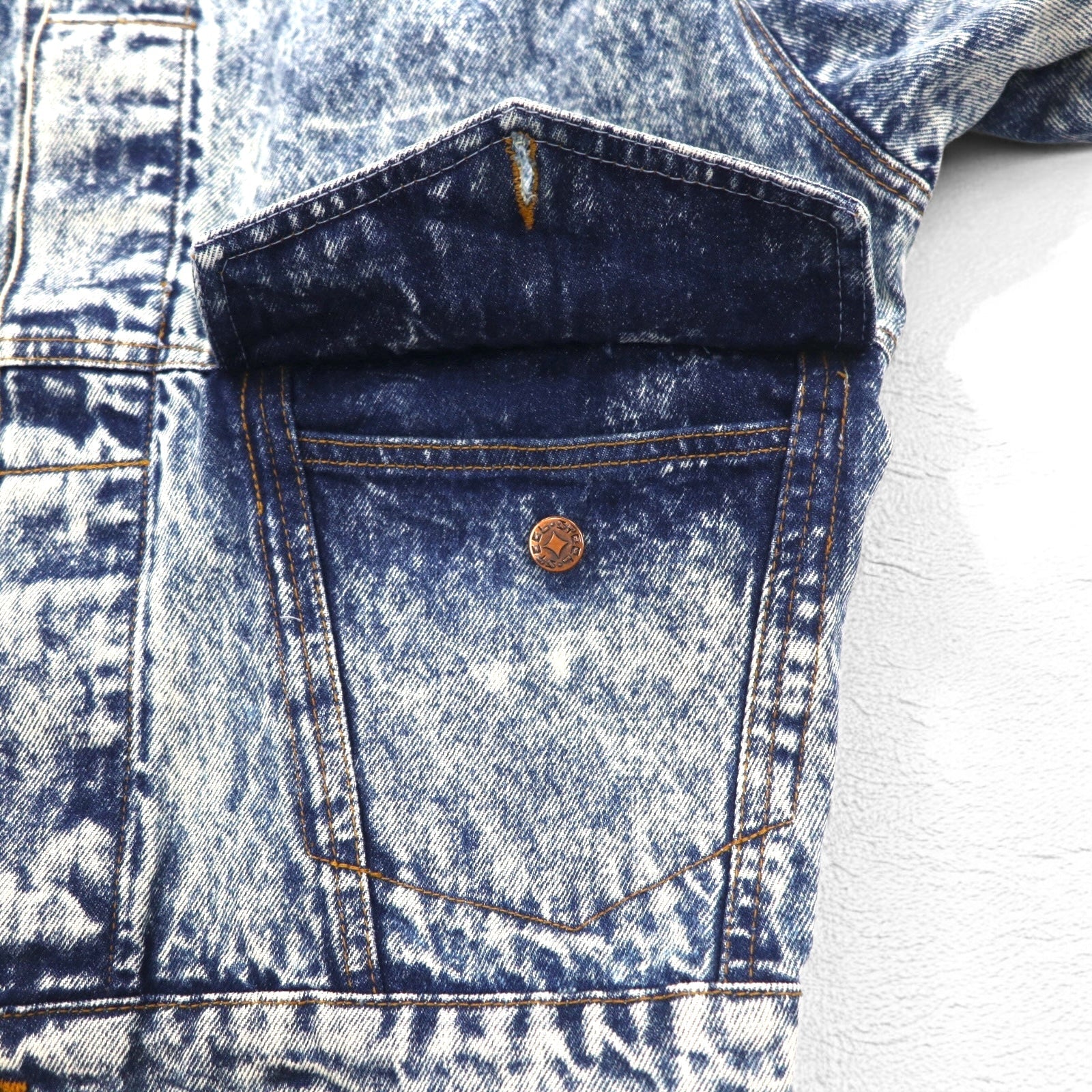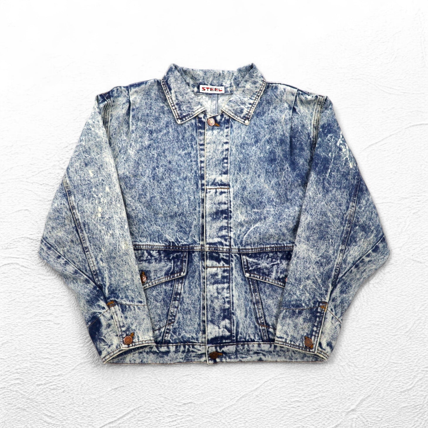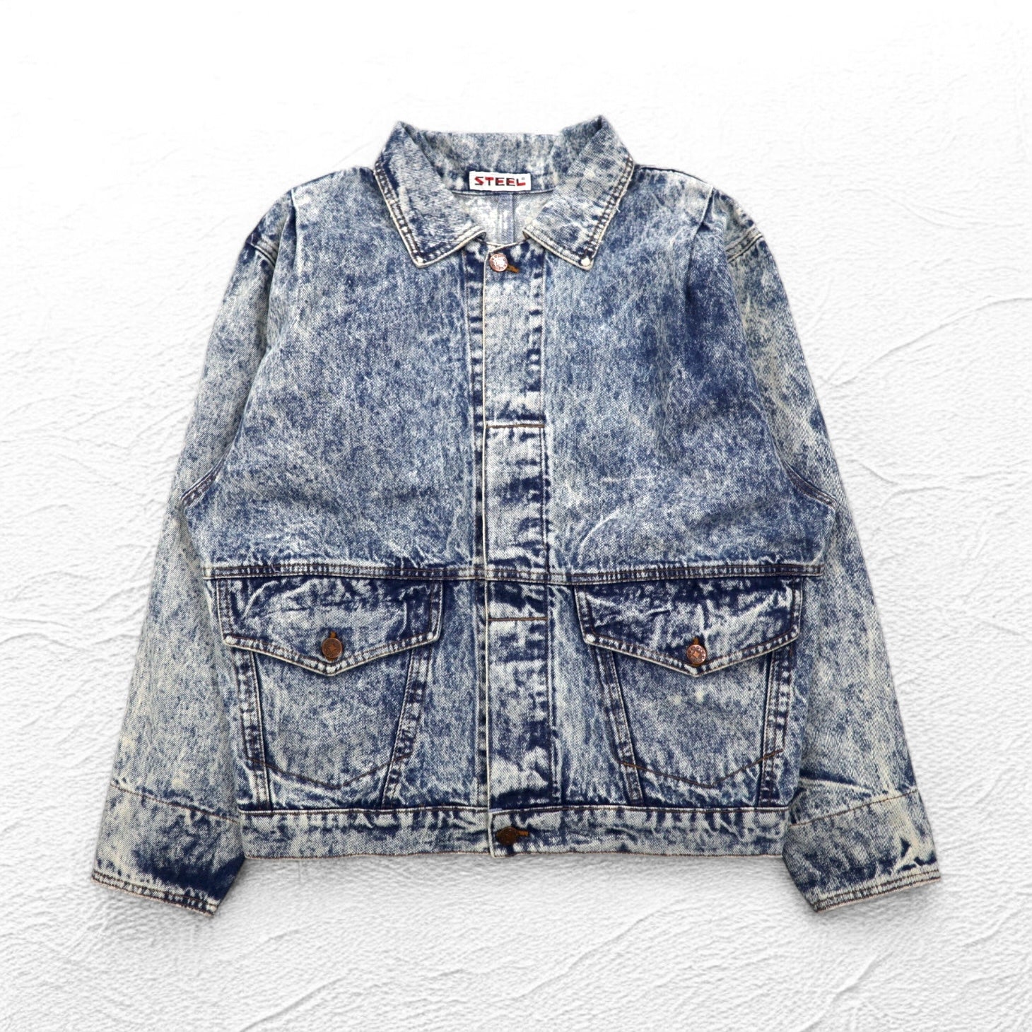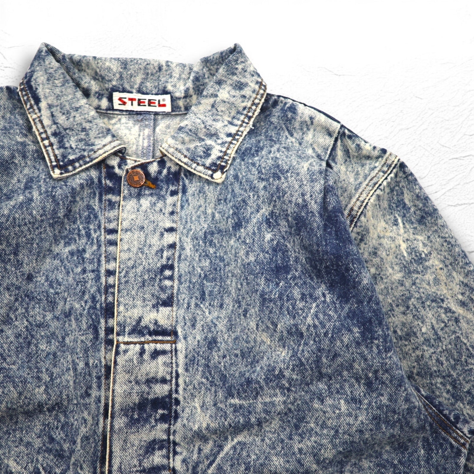 USA製 90年代 STEEL ケミカルウォッシュ デニムジャケット Gジャン L ブルー シンチバック