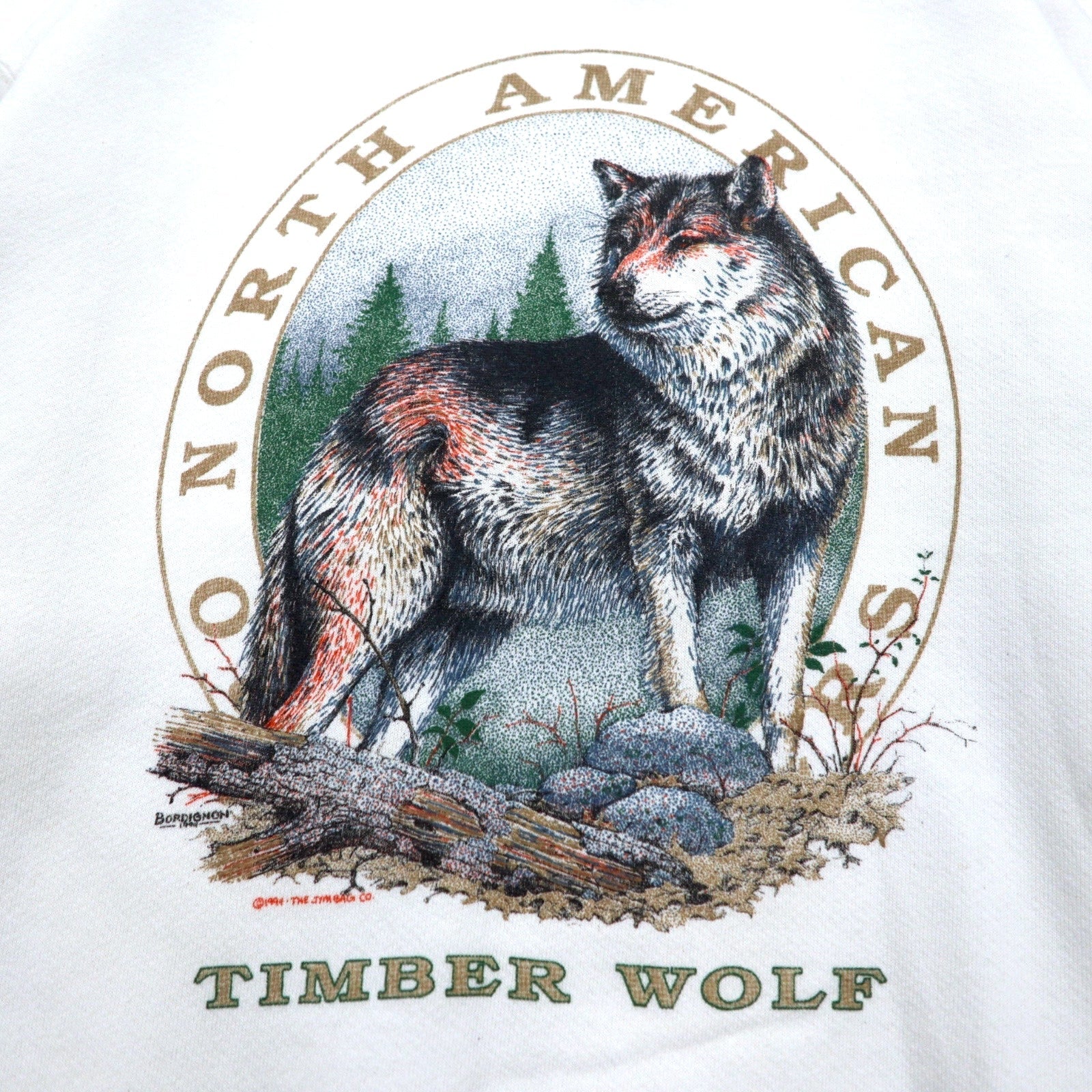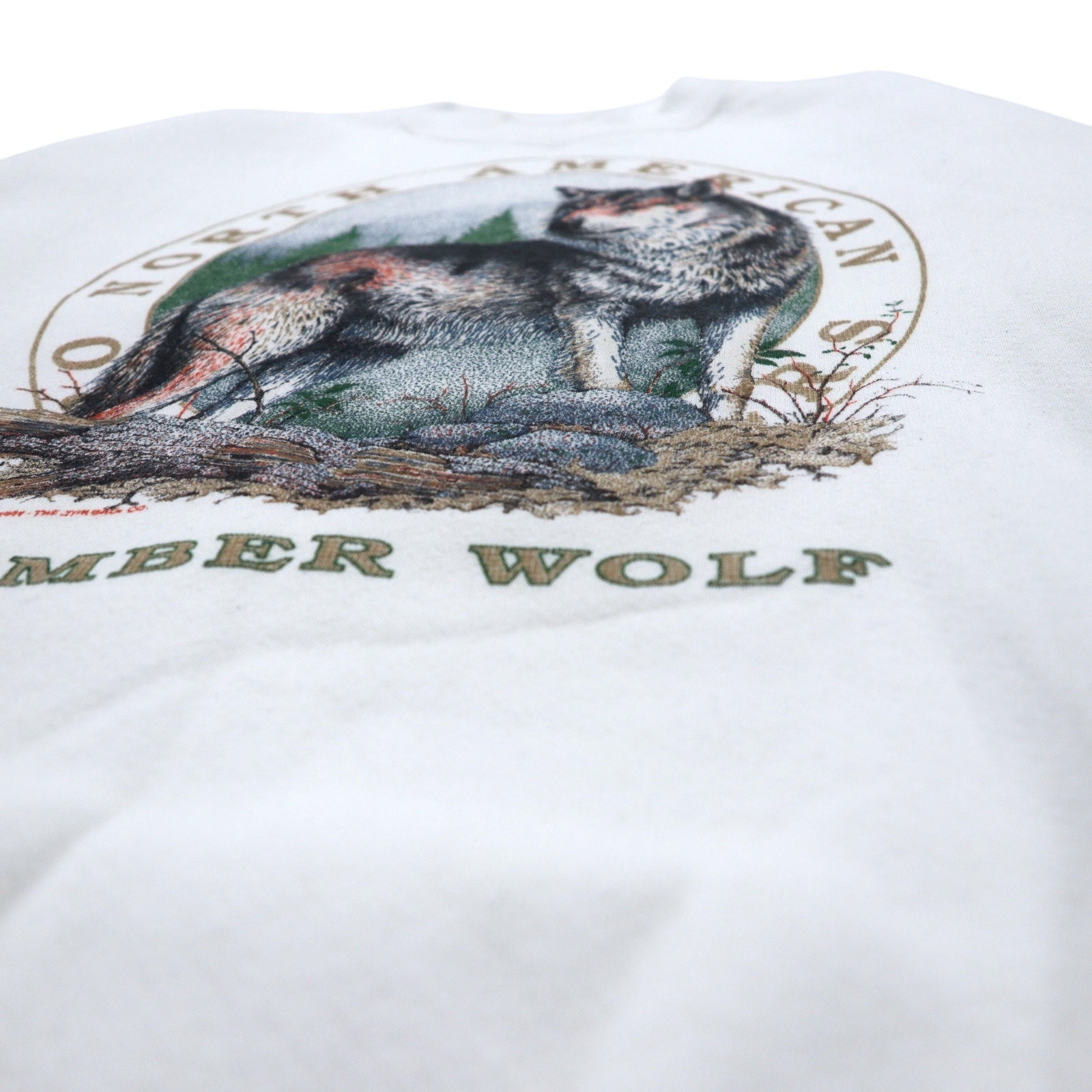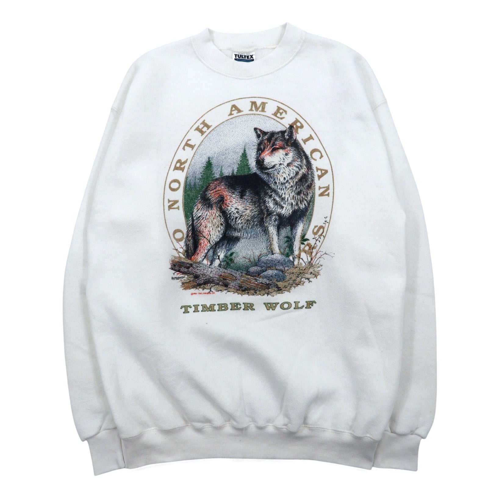 USA製 90年代 TULTEX アニマル プリント スウェット M ホワイト コットン NORTH AMERICAN 狼 ティンバーウルフ