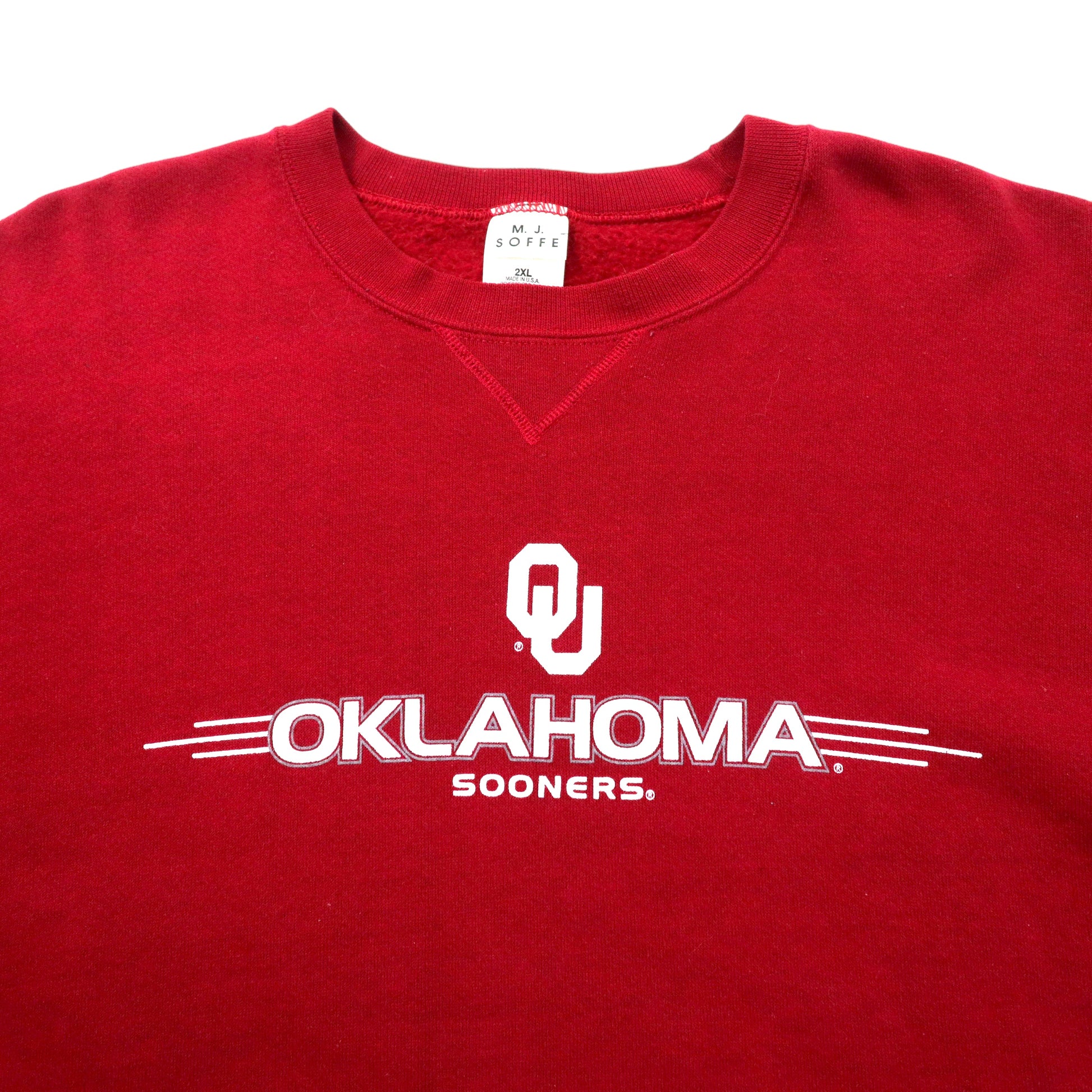 USA製 M.J.SOFEE 90年代 ビッグサイズ カレッジプリント スウェット 2XL レッド コットン 裏起毛 OKLAHOMA SOONERS