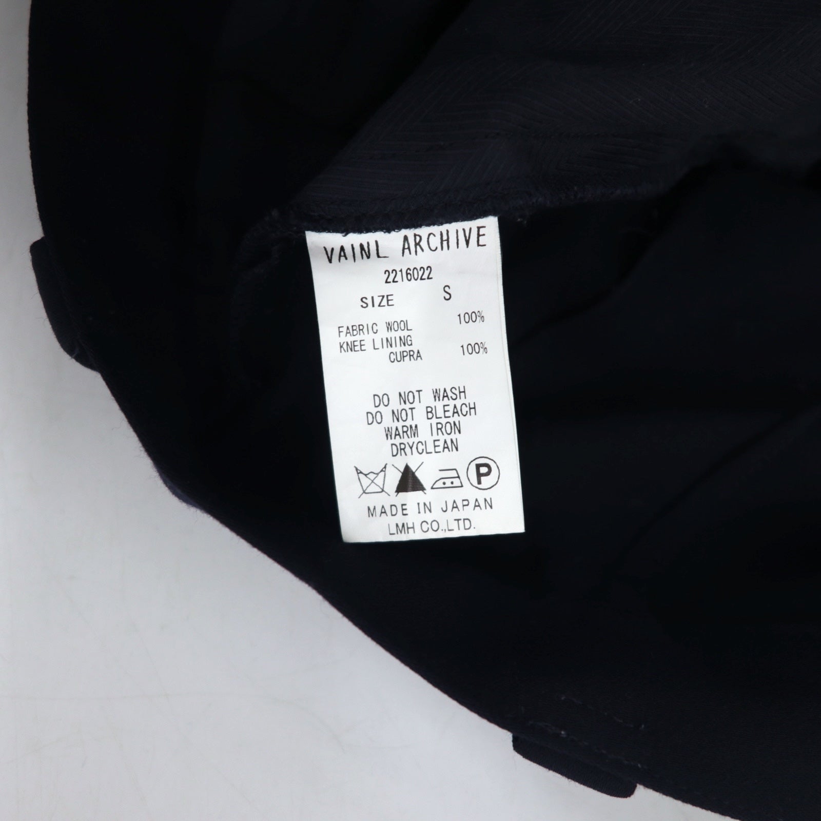 VAINL ARCHIVE タック ワイド スラックスパンツ S ネイビー ウール 2216022 日本製