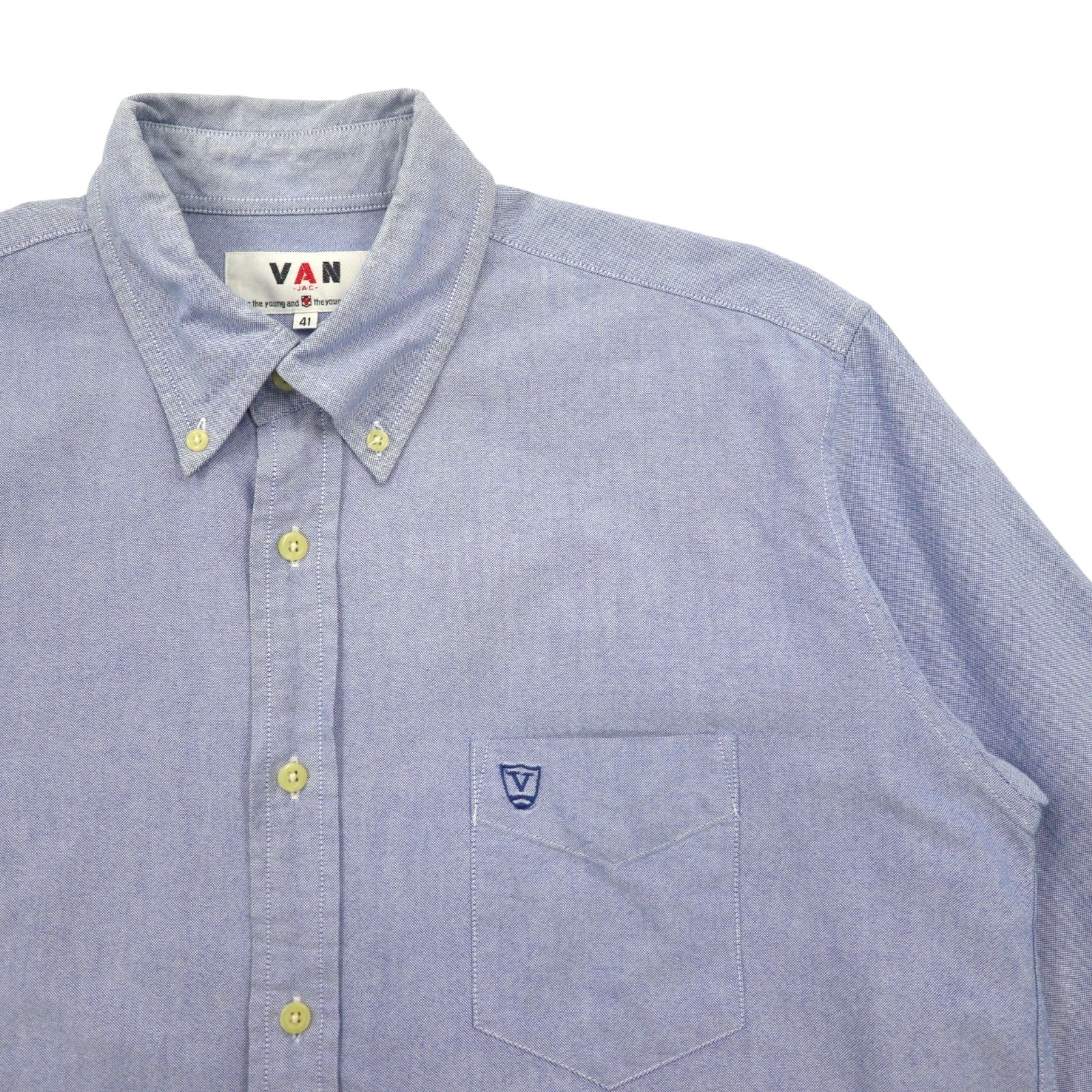 VAN -JAC- オックスフォード ボタンダウンシャツ L ブルー コットン ロゴ刺繍