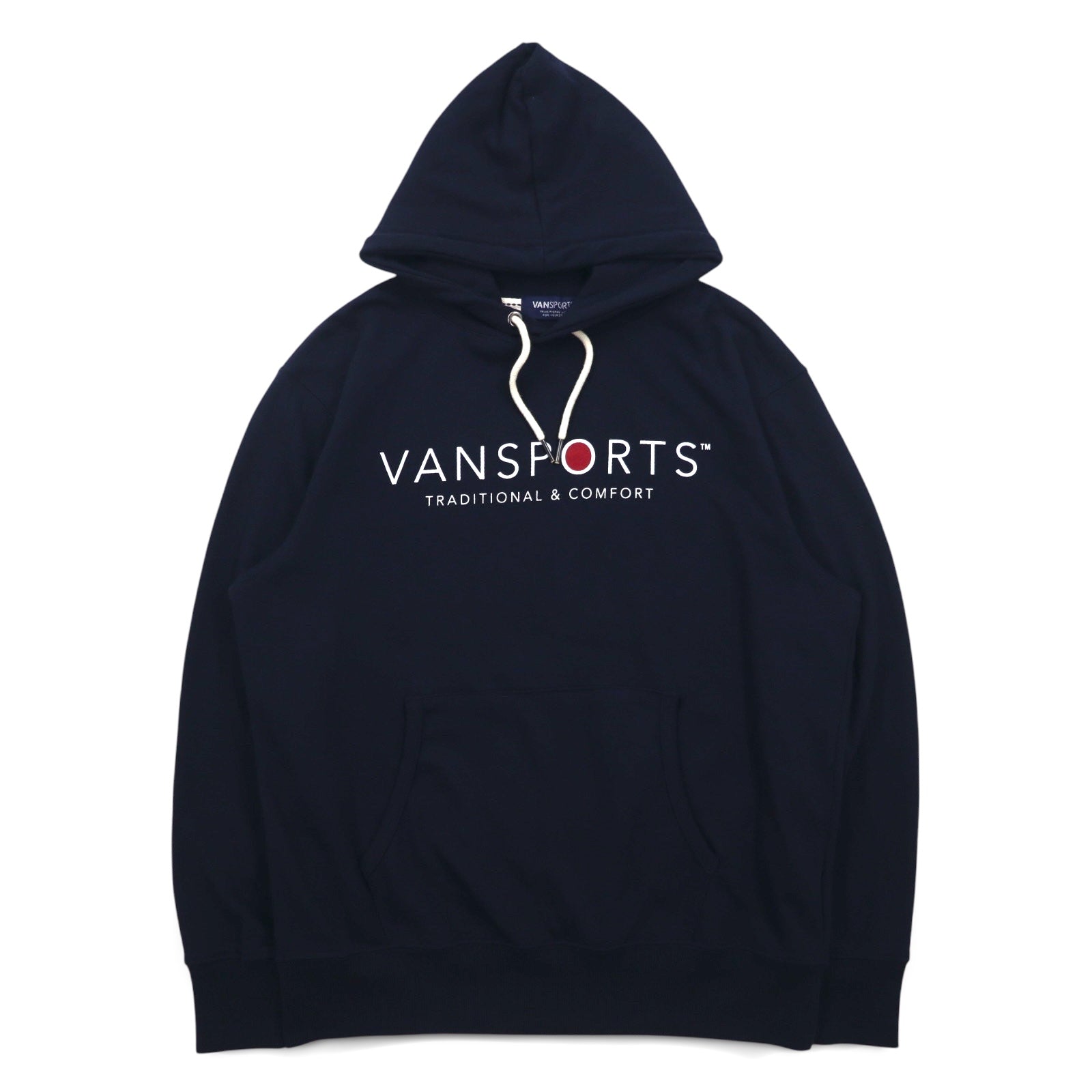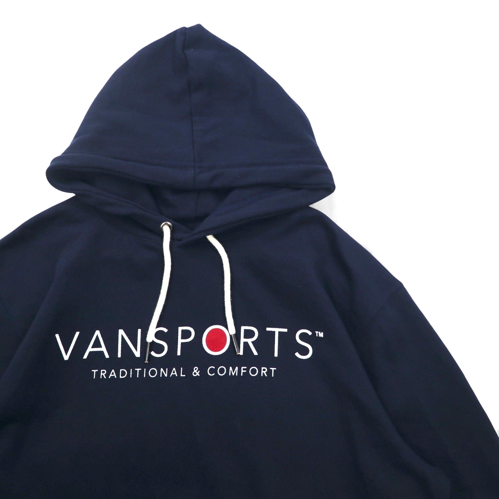 VAN SPORTS プルオーバー パーカー M ネイビー コットン ロゴプリント