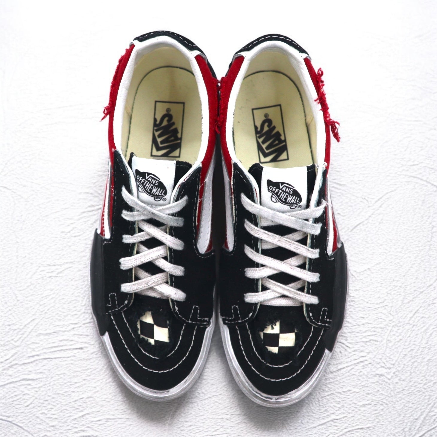 VANS スケートロー リコントラクト SK8-LOW RECONSTRUCT ダメージ加工 スニーカー26.5cm ブラック レッド VN0009QS455