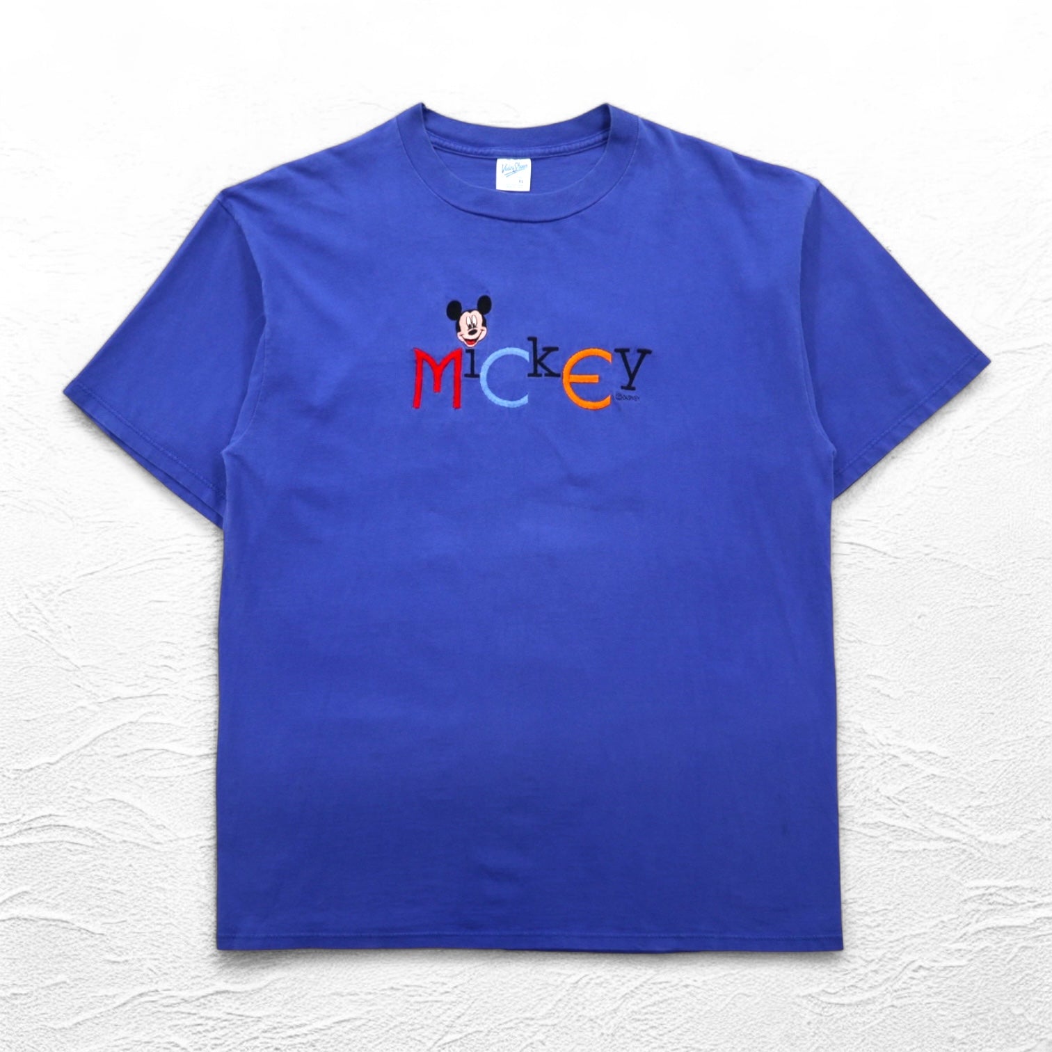 Velva Sheen 90年代 USA製 MICKEY ミッキーマウス 刺繍 Tシャツ XL ブルー Disney