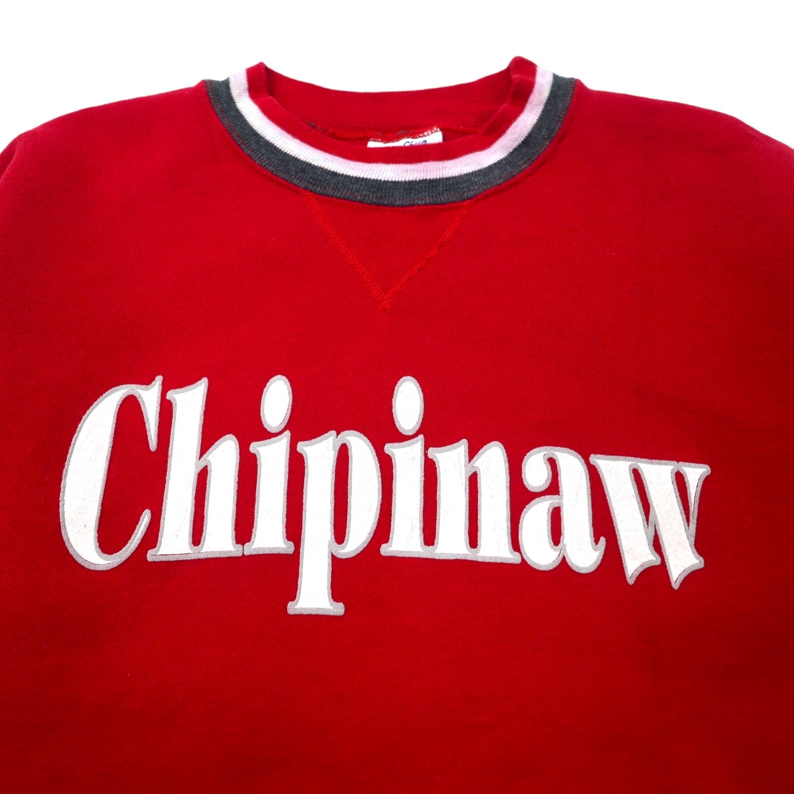 Velva Sheen USA製 90年代 リブライン スウェット L レッド コットン 裏起毛 前V Chipinaw