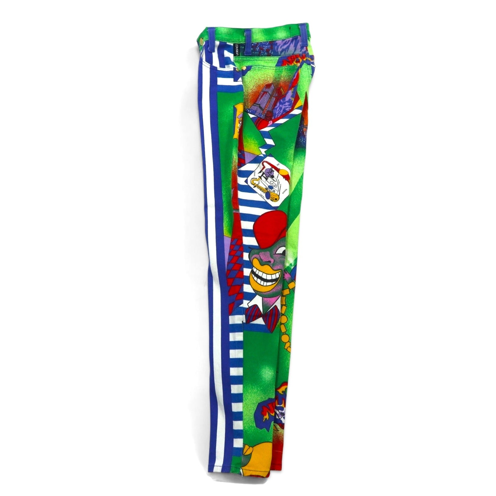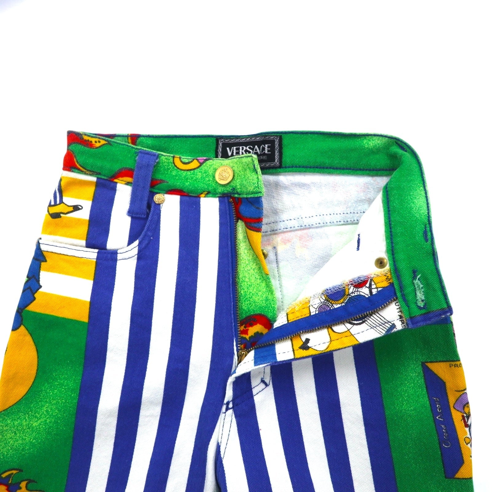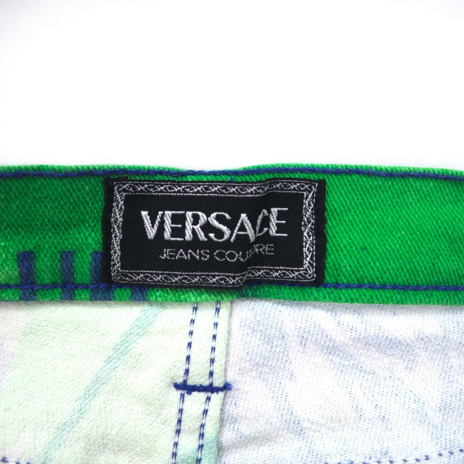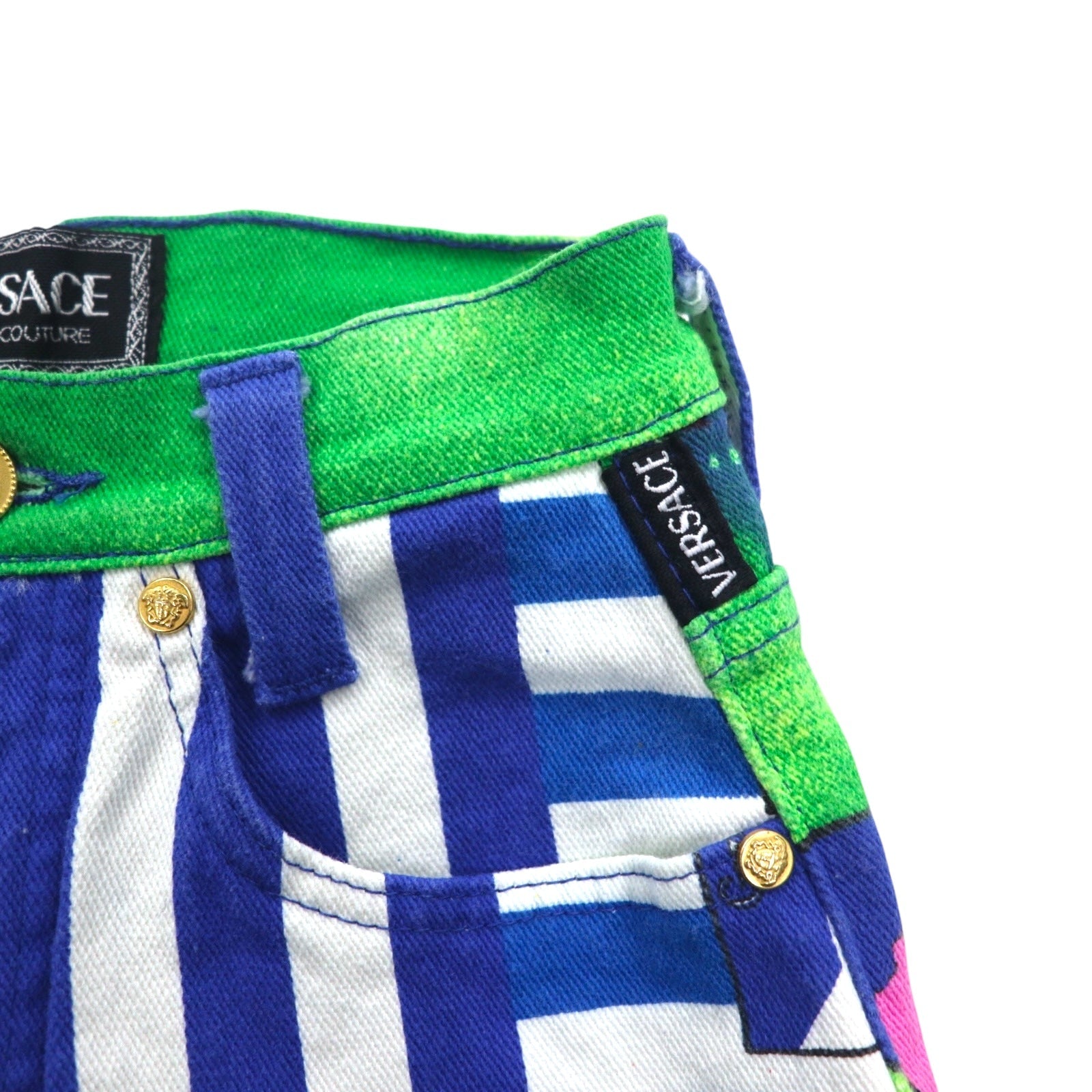 VERSACE JEANS COUTURE イタリア製 ハイウエスト デニムパンツ M ストライプ アート 総柄 クレイジーパターン メデューサ