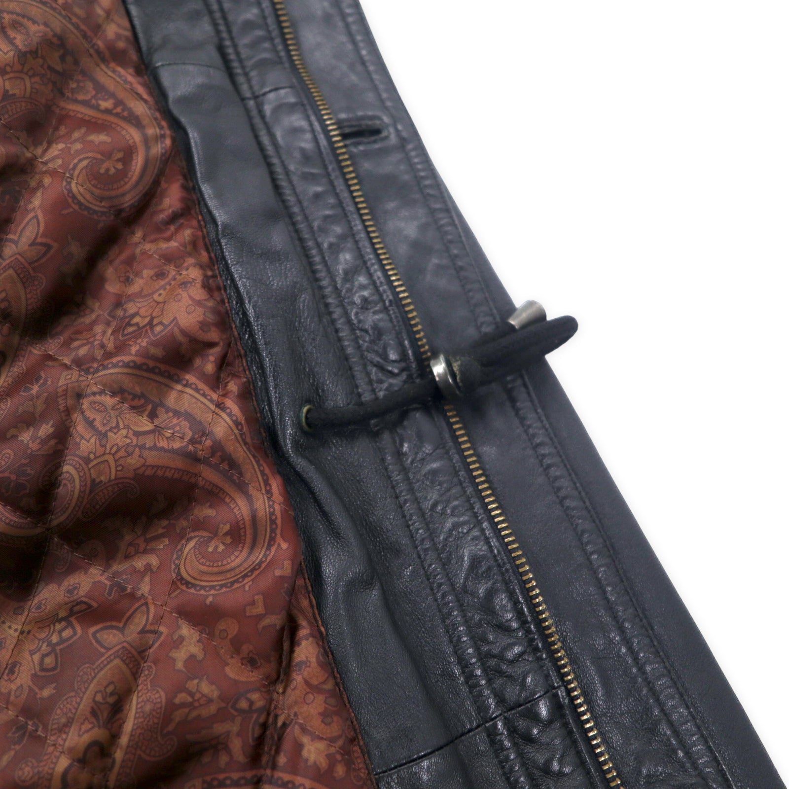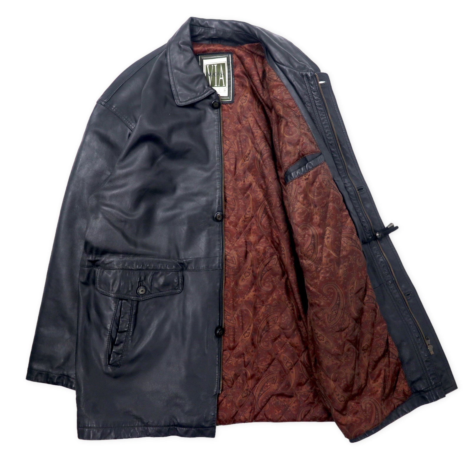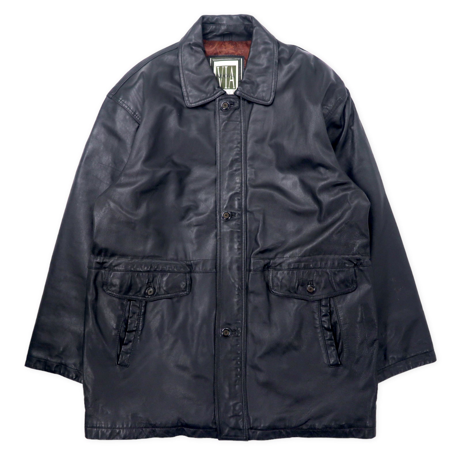 VIA NUOVO PELLE レザー カーコート 2L ブラック 羊革 キルティングライナー ドローコード ビッグサイズ