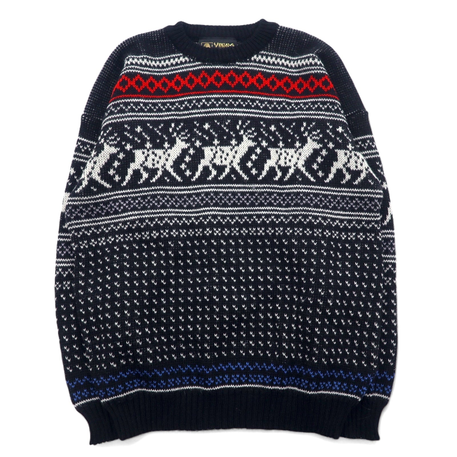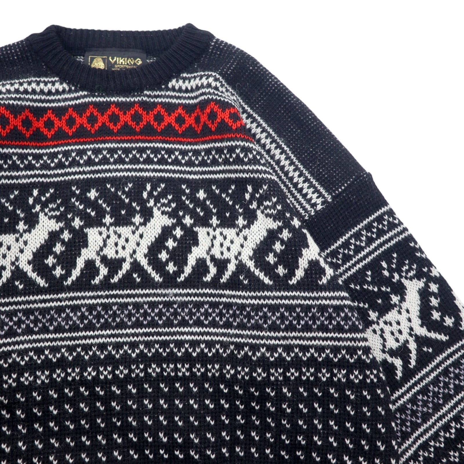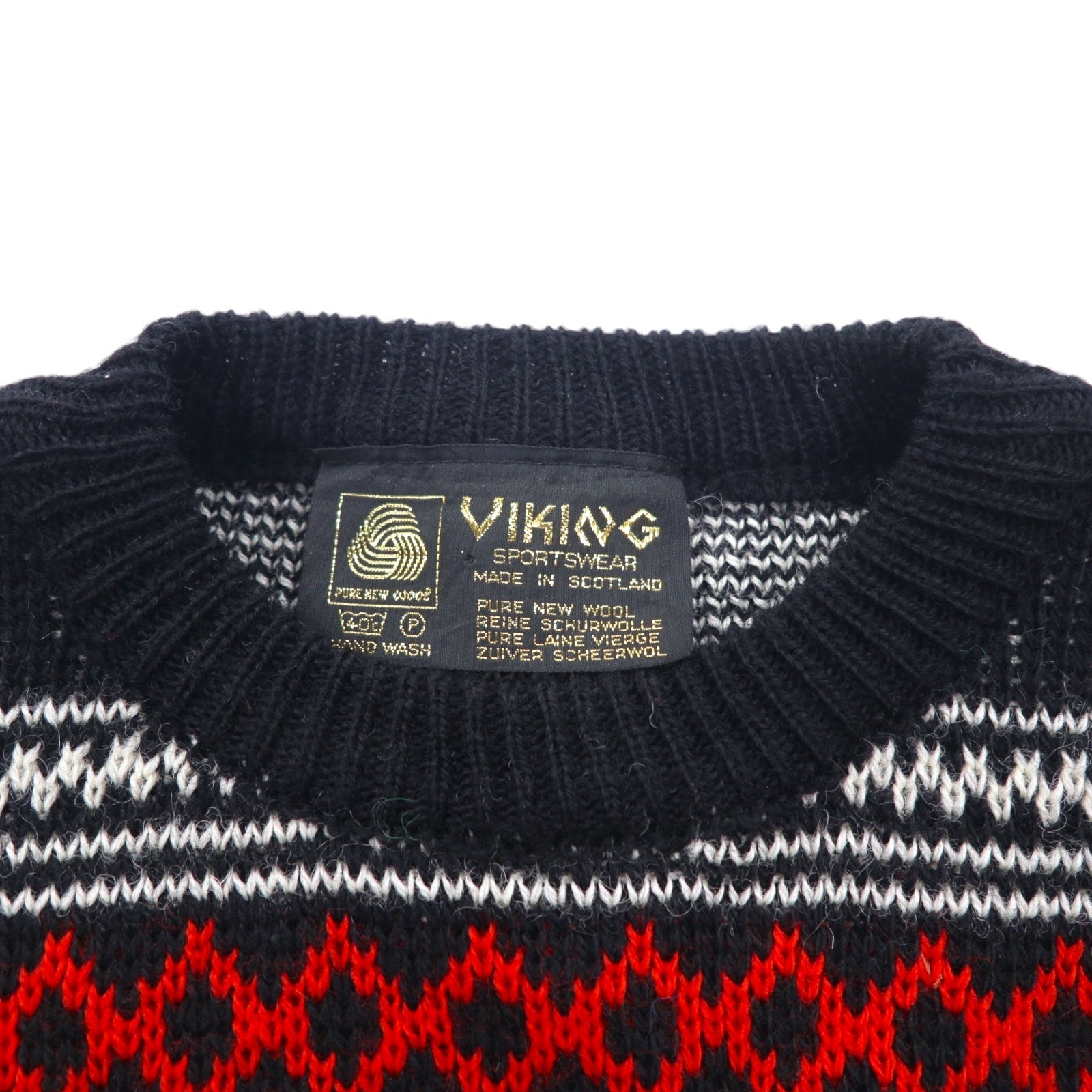 VIKING スコットランド製 90年代 バーズアイ ノルディック柄 ニット セーター L ブラック ウール