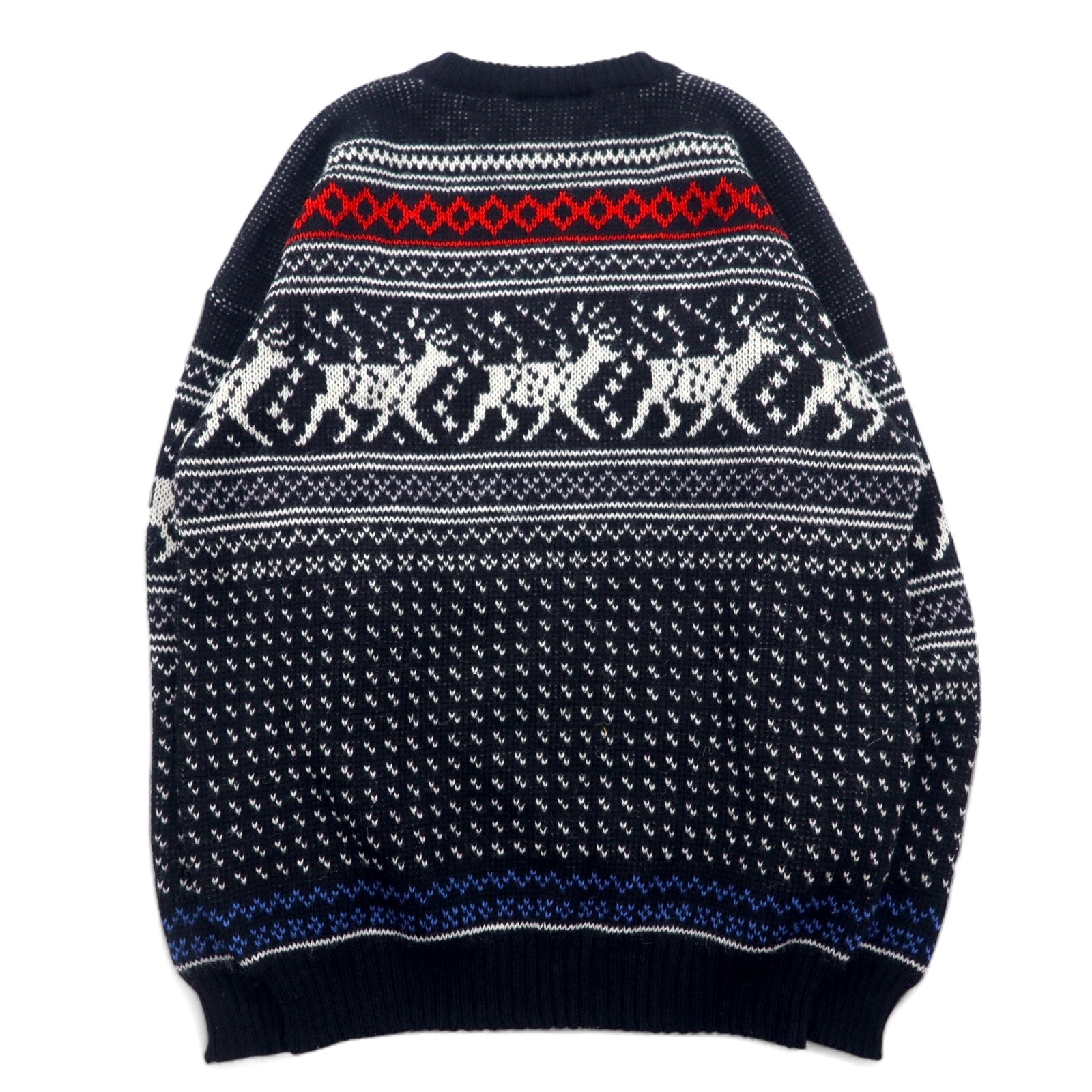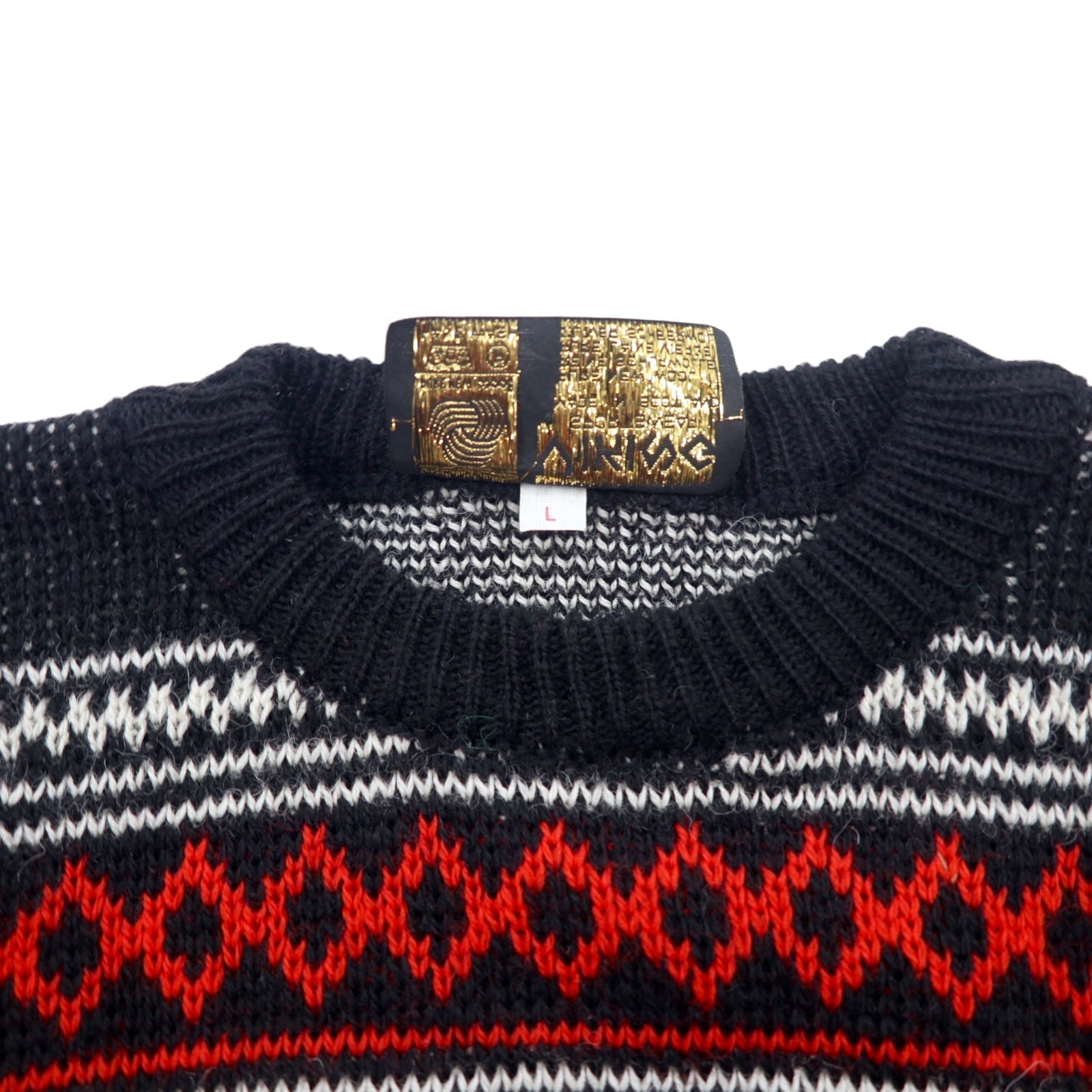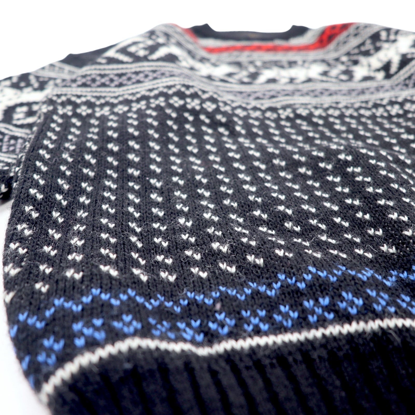 VIKING スコットランド製 90年代 バーズアイ ノルディック柄 ニット セーター L ブラック ウール