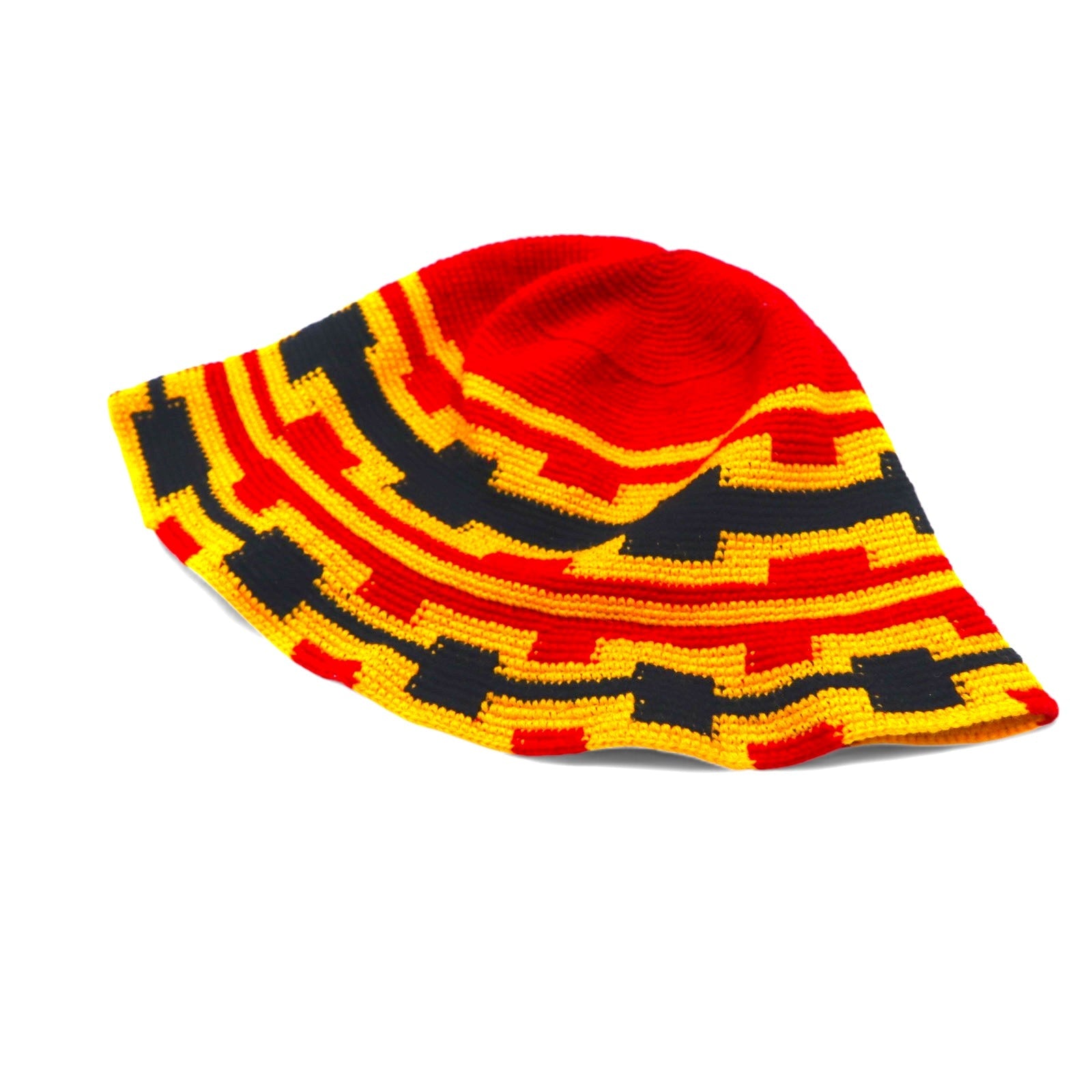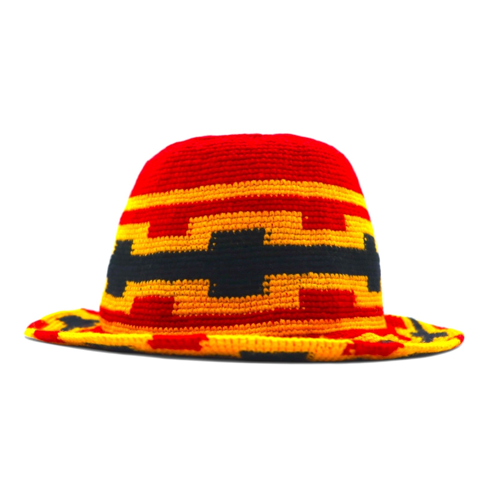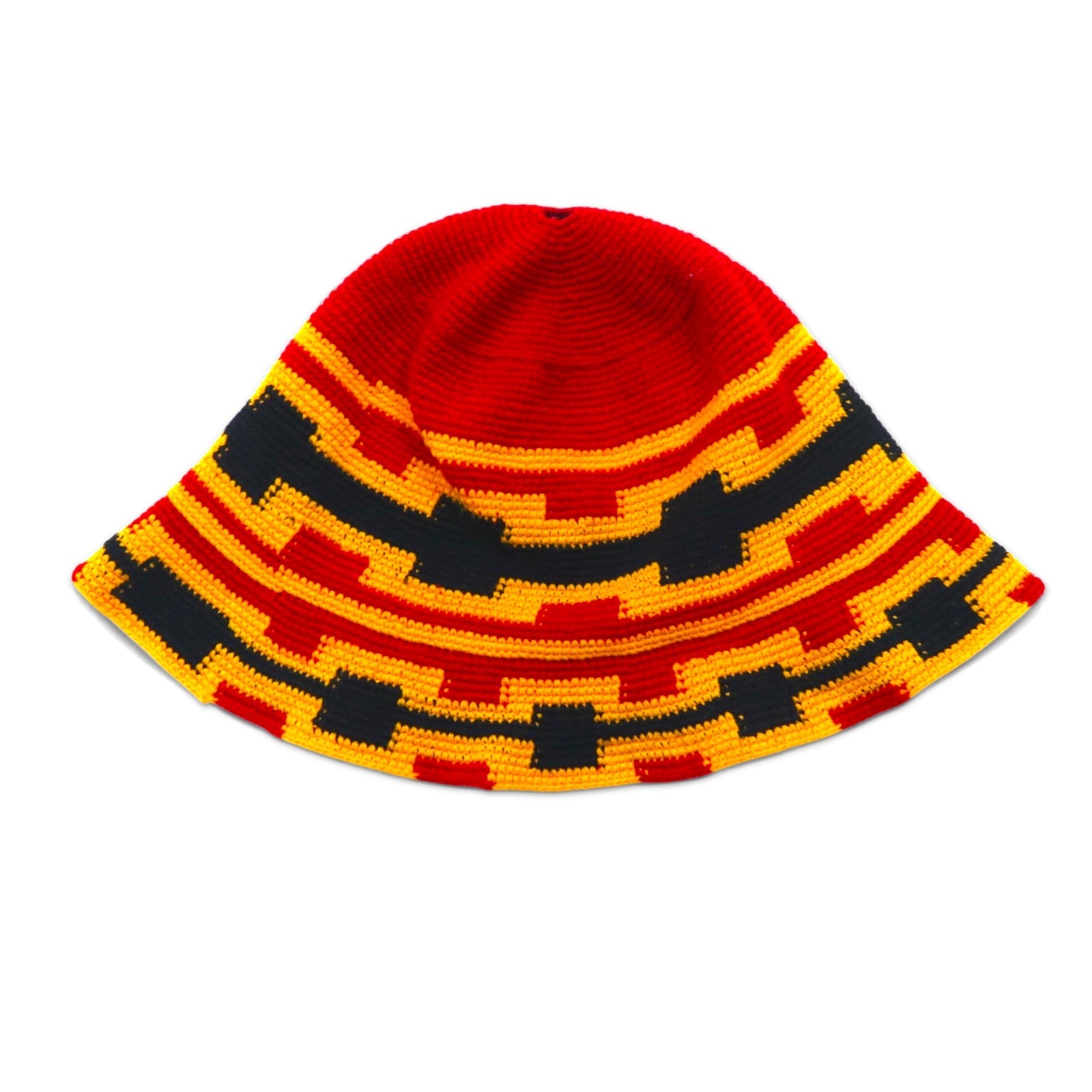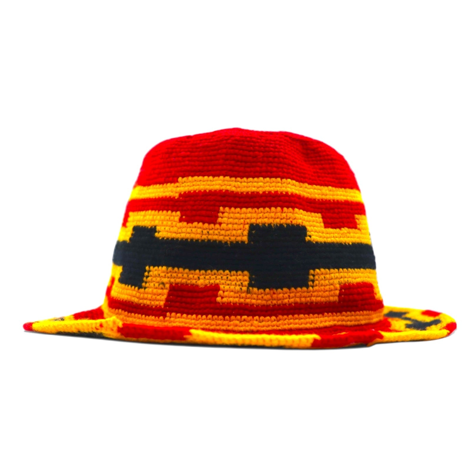 Vintage バケットハット クロシェハット ONE レッド イエロー コットン ウール