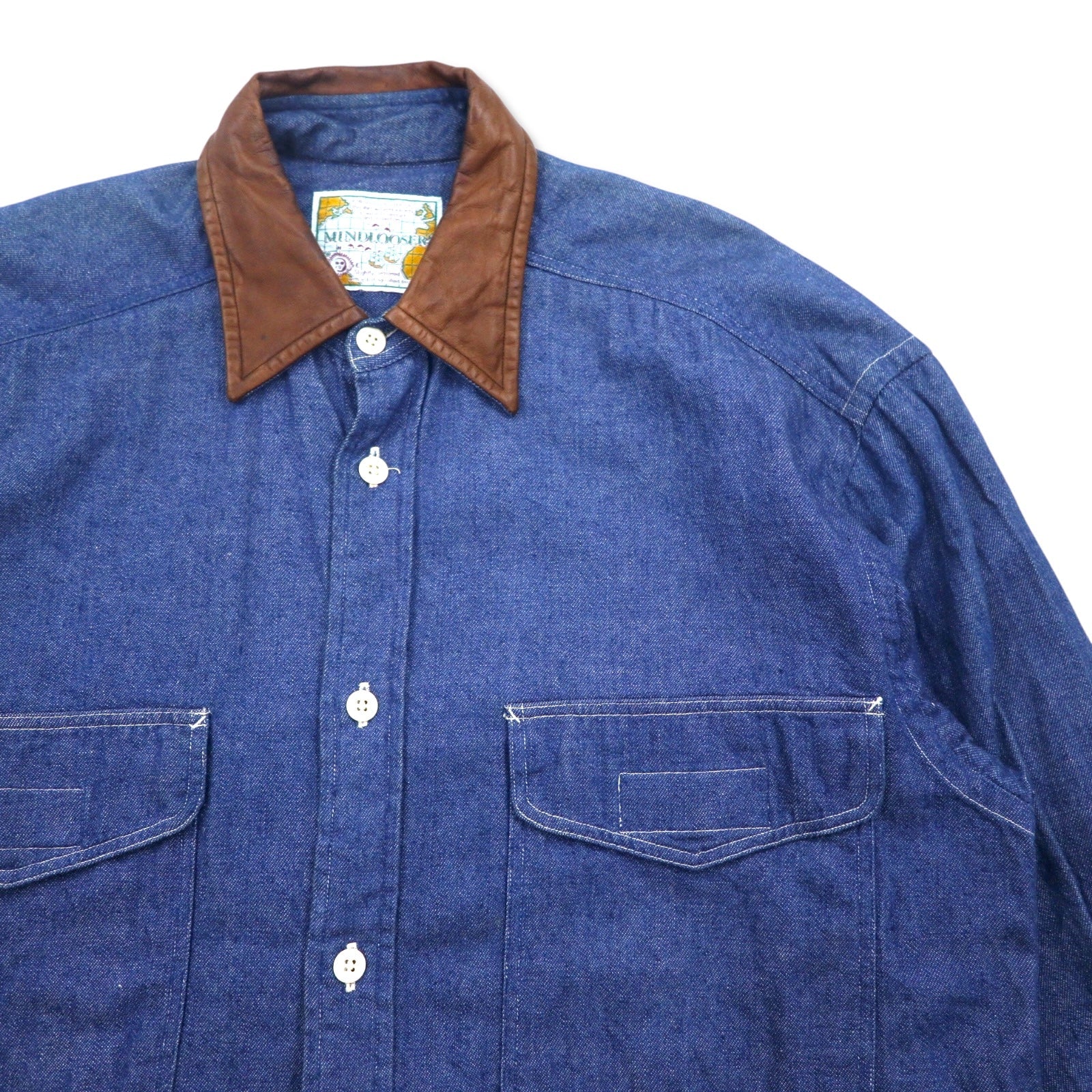 Vintage 90s Denim Shirt MINDLOOSER 襟レザー 切替 ワーク デニムシャツ L インディゴ ブルー コットン