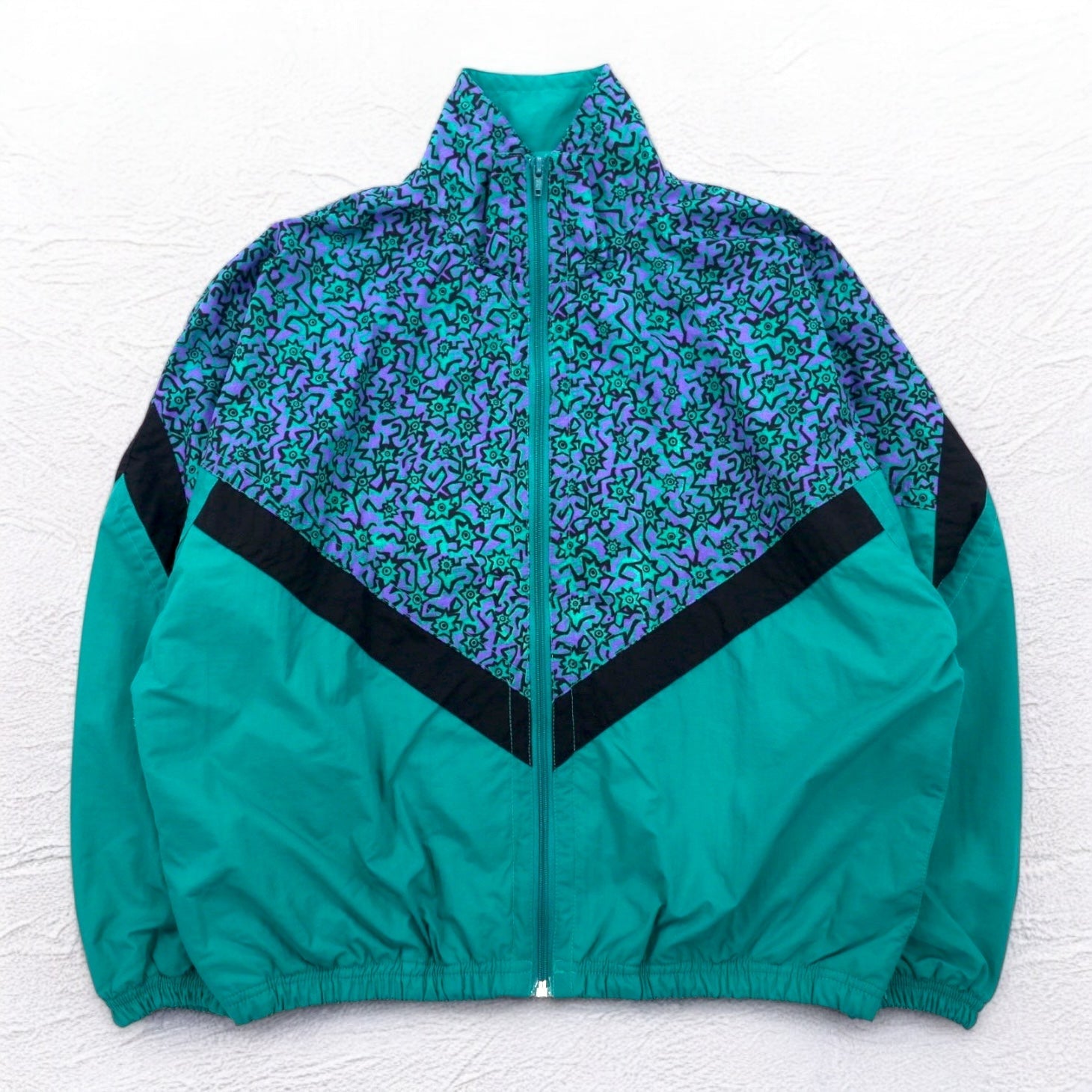 Vintage 90s IPFU Track Jacket トレーニングジャケット トラックジャケット M グリーン 総柄 ナイロン