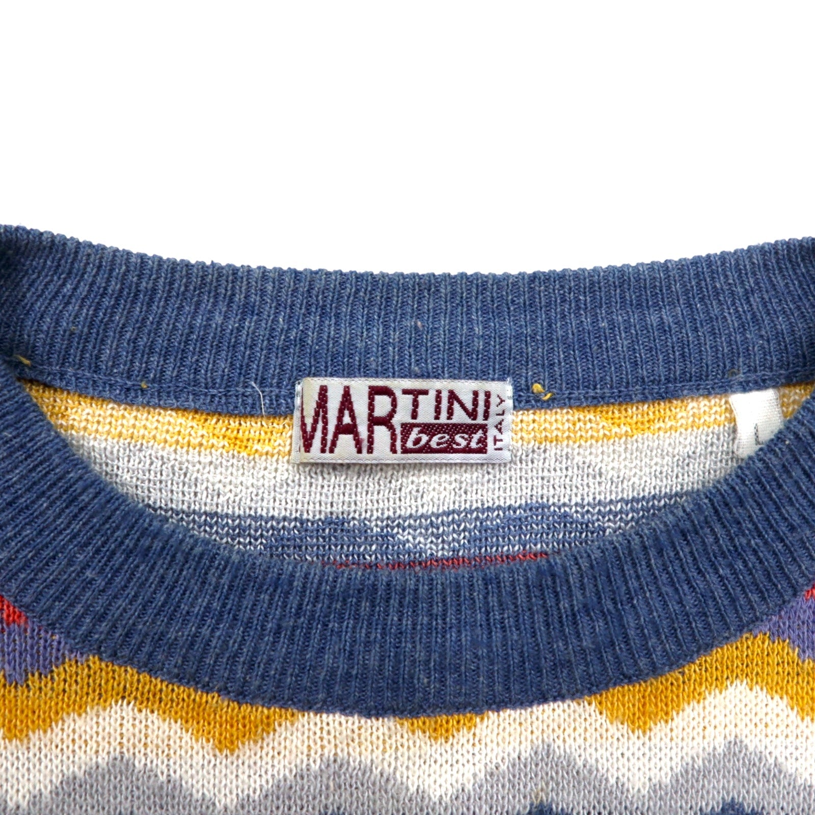Vintage 90s Italy Made Retro Zigzag Pattern Sweater MARTINI コットン ニット L マルチカラー ボーダー