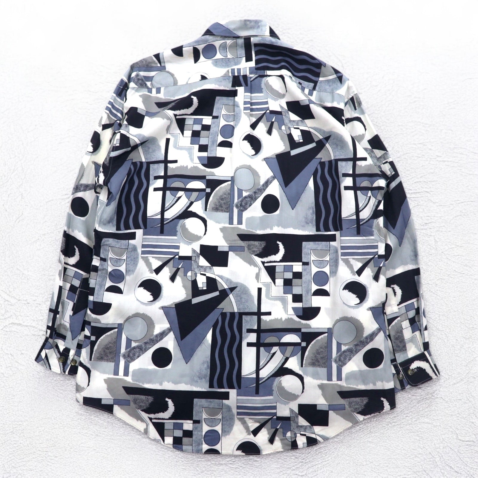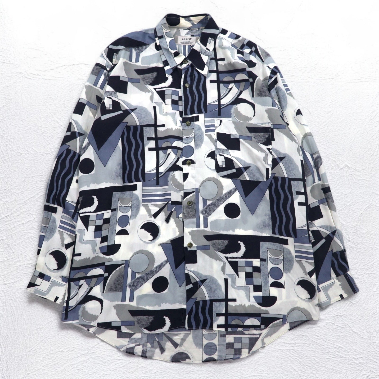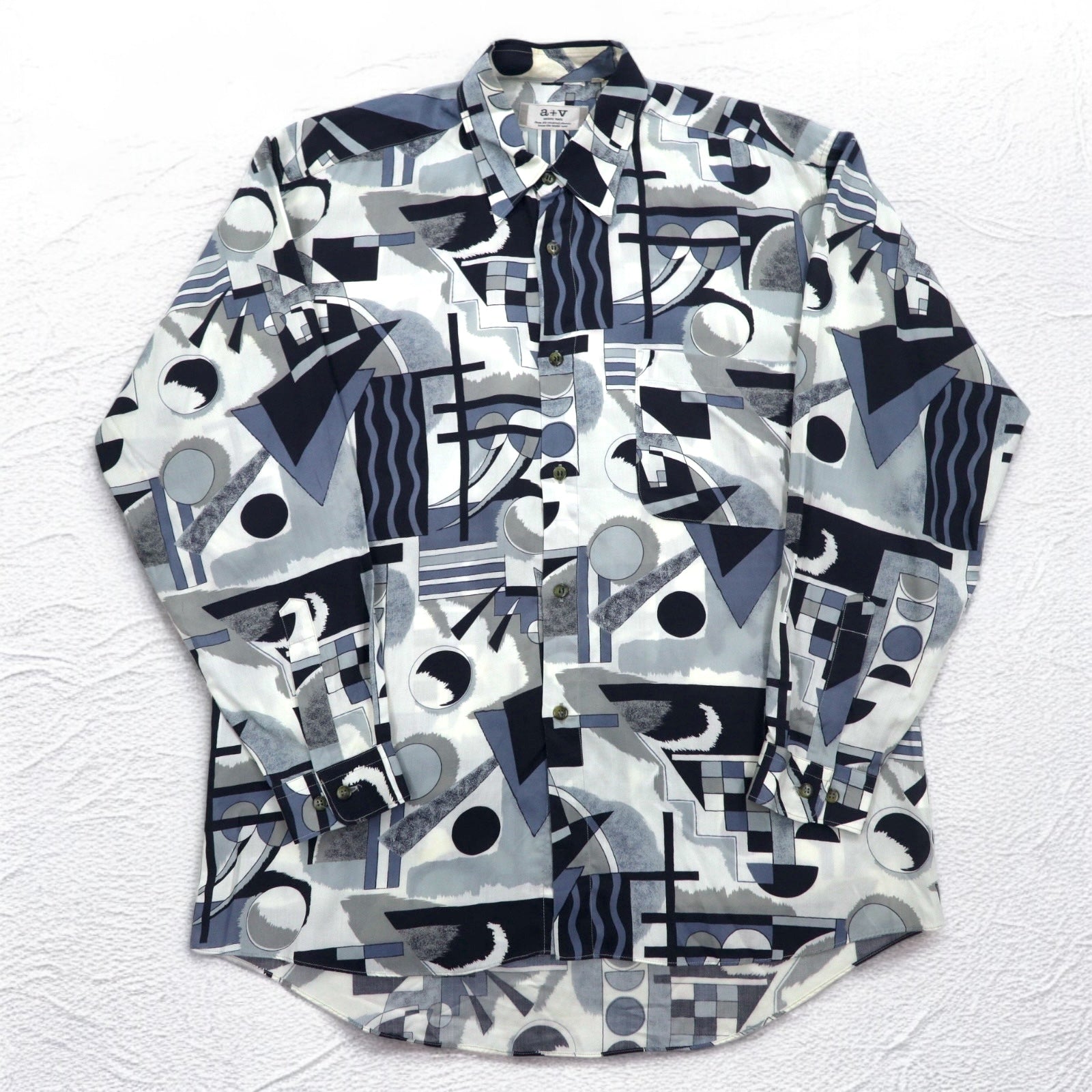 Vintage 90s Japan Made Rayon Shirt a+v ABBRE VIATE 90年代 総柄シャツ FREE グレー 幾何学 レーヨン 日本製