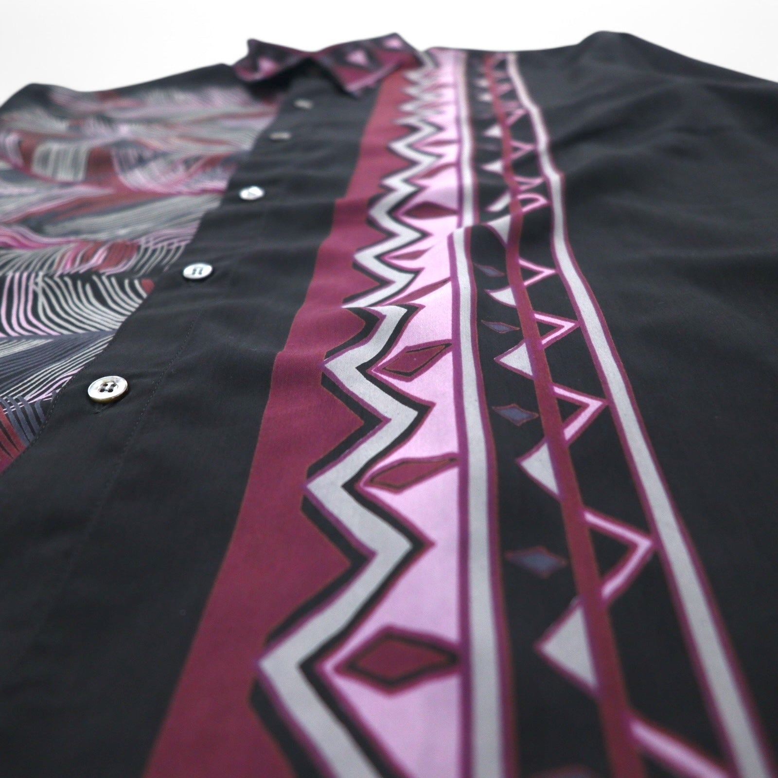 Vintage 90s Japan Made Retro Shirt NOX HONOR ポリシャツ L ブラック ネイティブ柄 ポリエステル