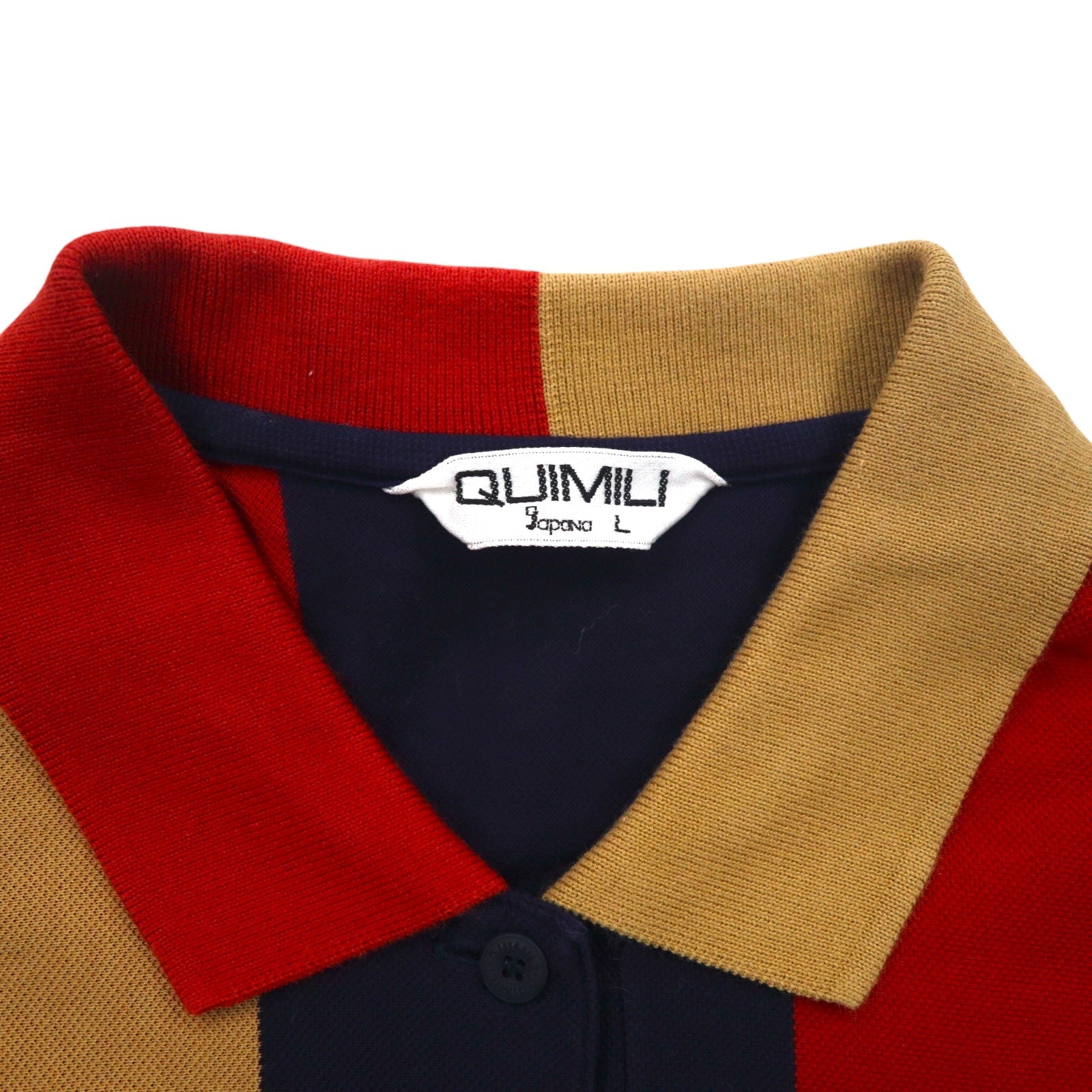 Vintage 90s Japan Made Rugby Shirt QUIMILI 長袖ポロシャツ ラガーシャツ L マルチカラー ストライプ 日本製