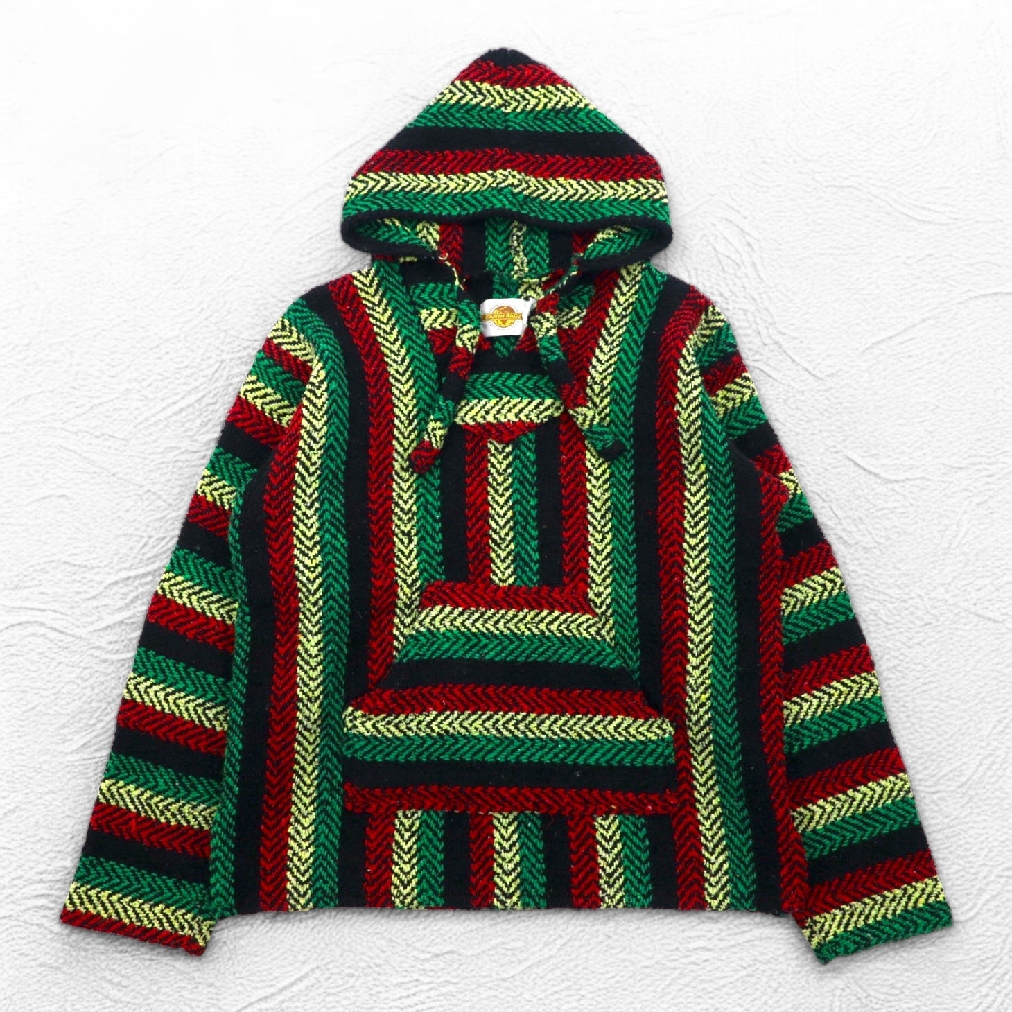 Vintage 90s Mexican Baja Hoodie EARTH RAGZ 90年代 メキシカンパーカー L ラスタカラー ストライプ メキシコ製