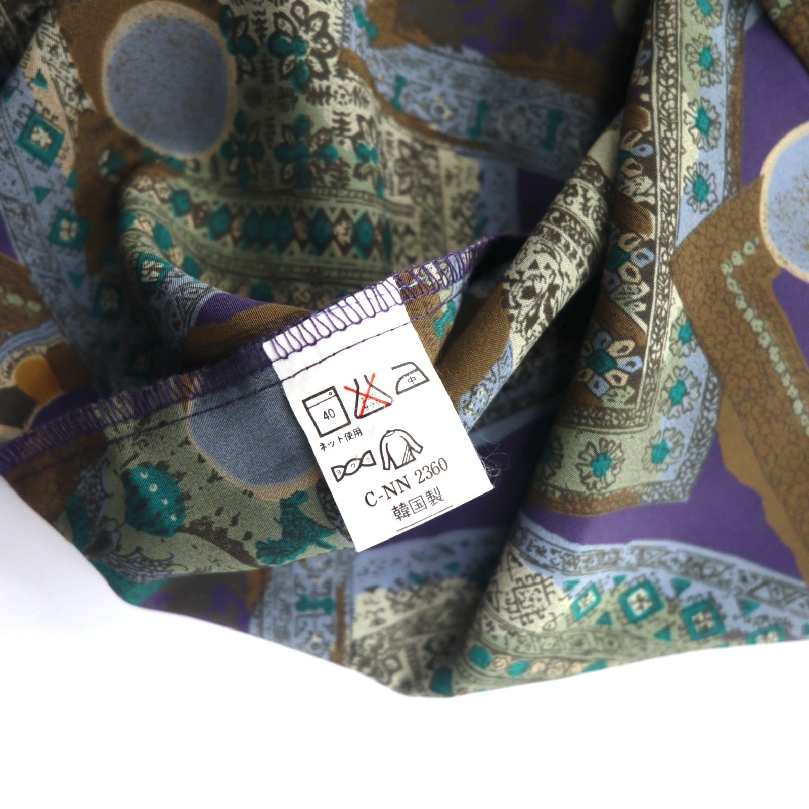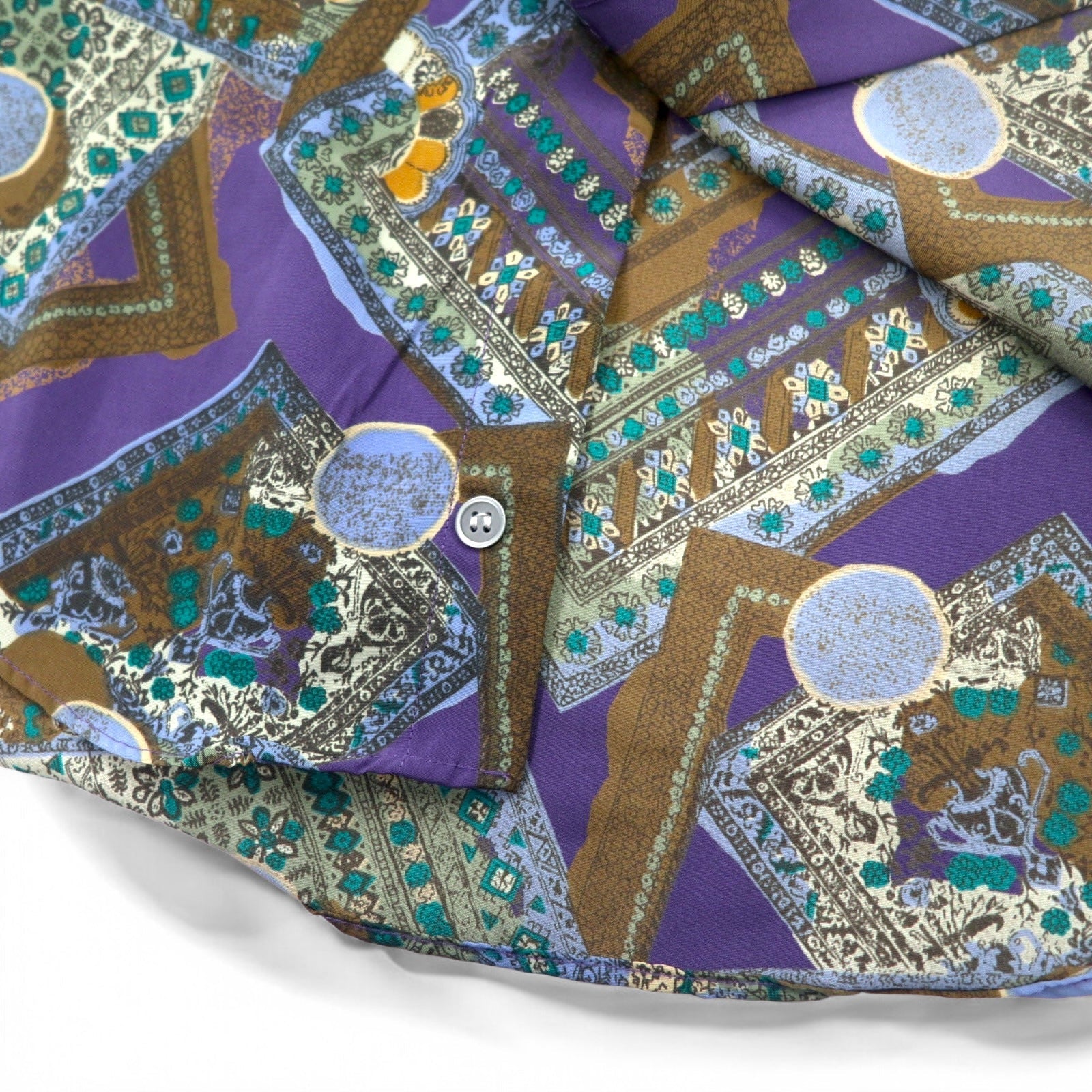 Vintage 90s Retro Geometric Pattern Shirt ORANGE FIELD 総柄 ポリシャツ M パープル ポリエステル