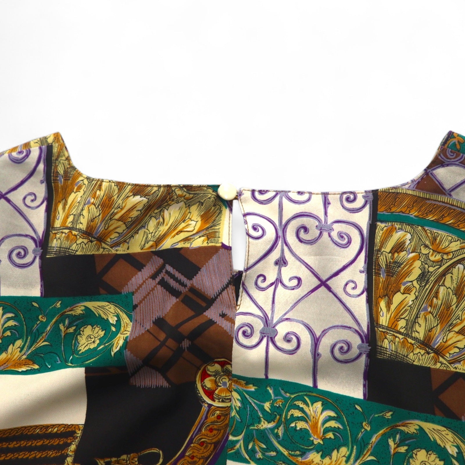 Vintage 90s Retro Patterned Blouse Moraure スカーフ柄 レトロ ブラウス XL マルチカラー ポリエステル