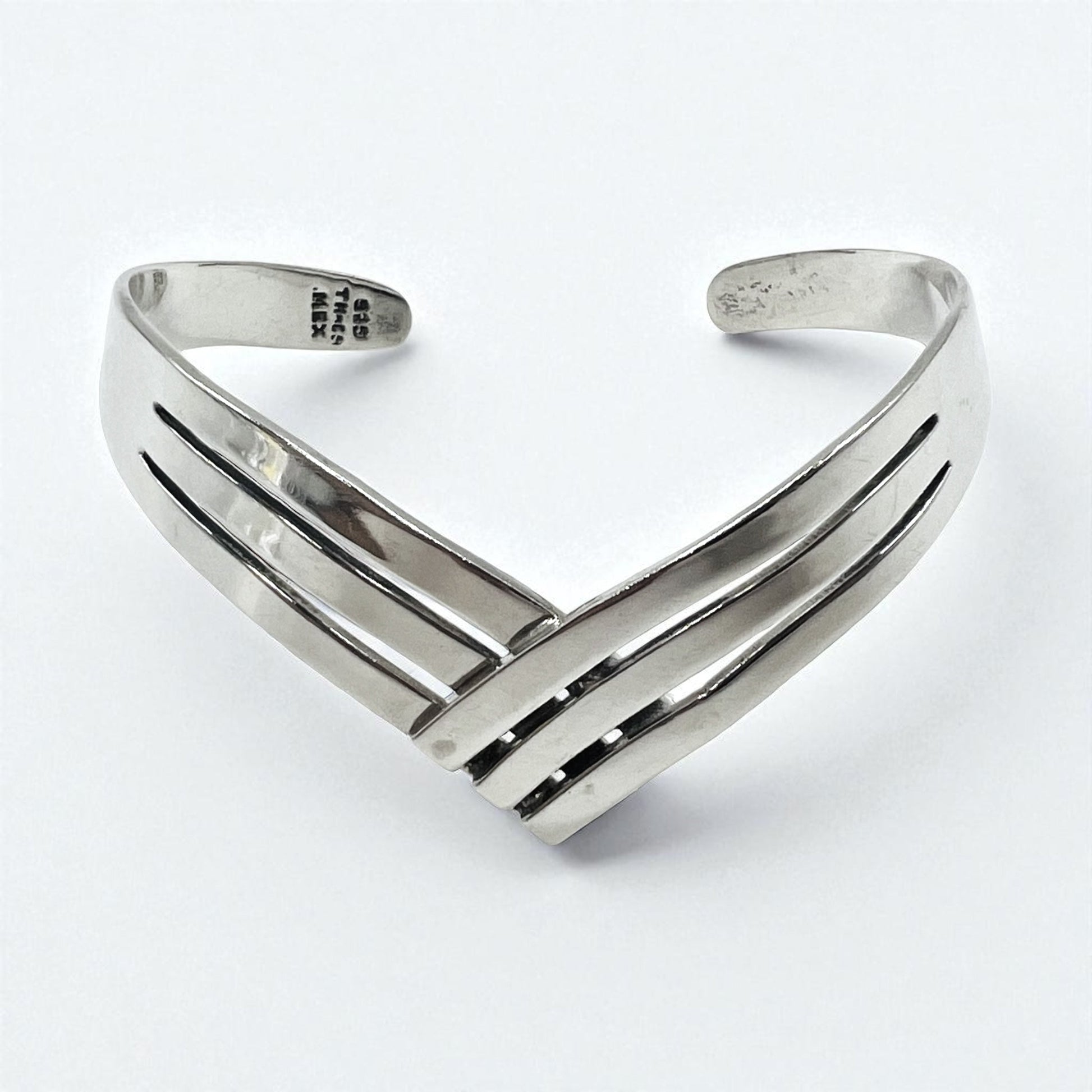 Vintage 925 Silver Cuff Bracelet Made In Mexico メキシカンジュエリー V字 ウェーブ バングル シルバー