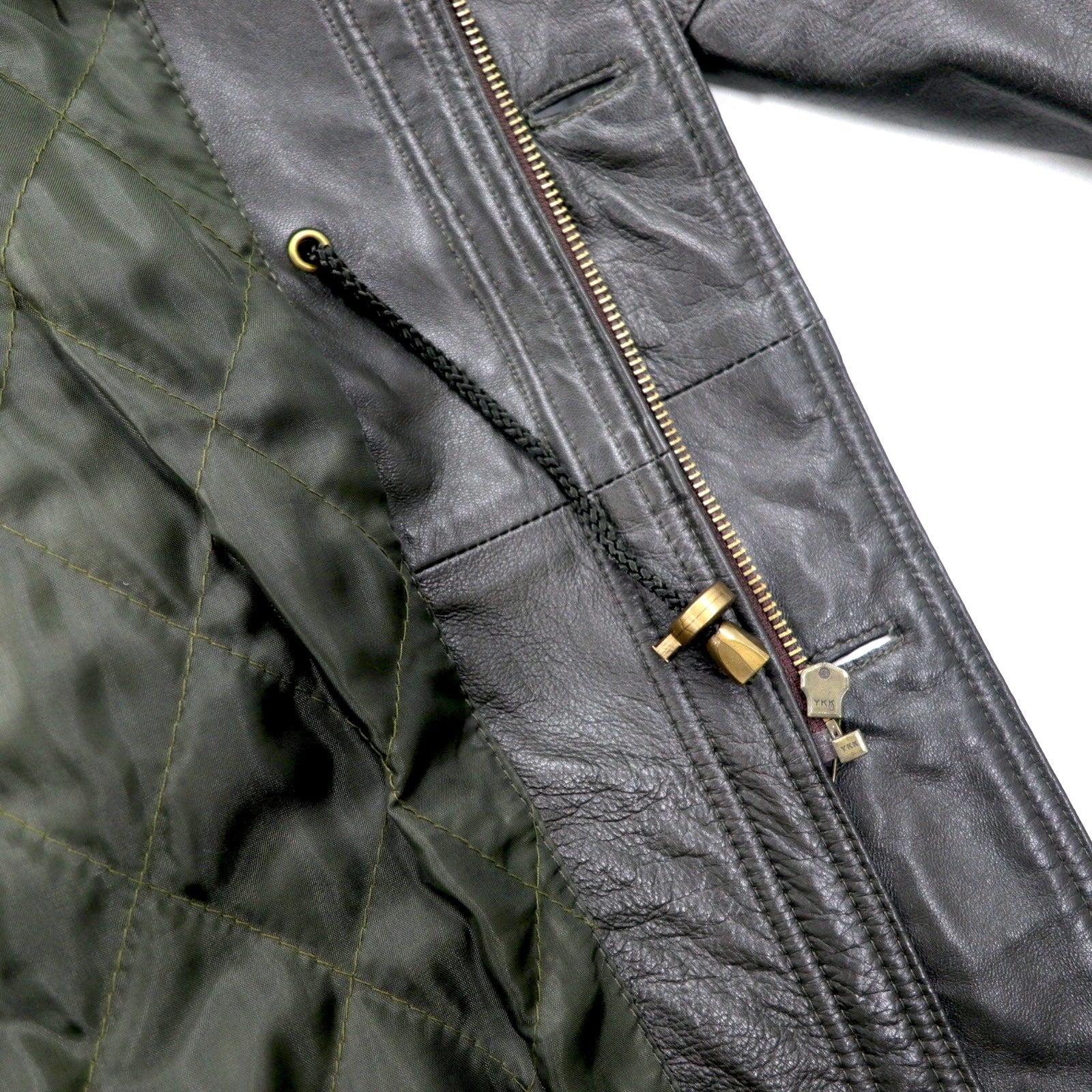 VINTAGE LEATHER COAT 90年代 ラムレザー カーコート M ブラウン 羊革 キルティングライナー ドローコード