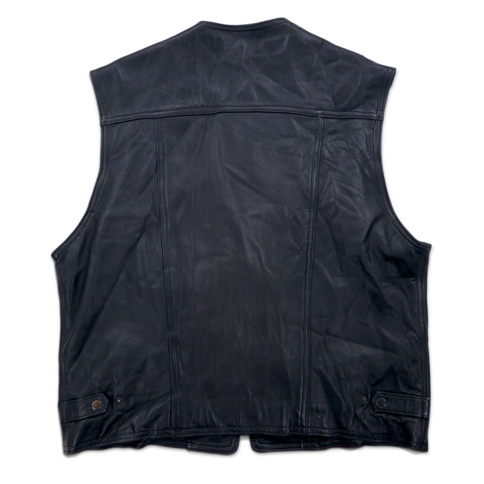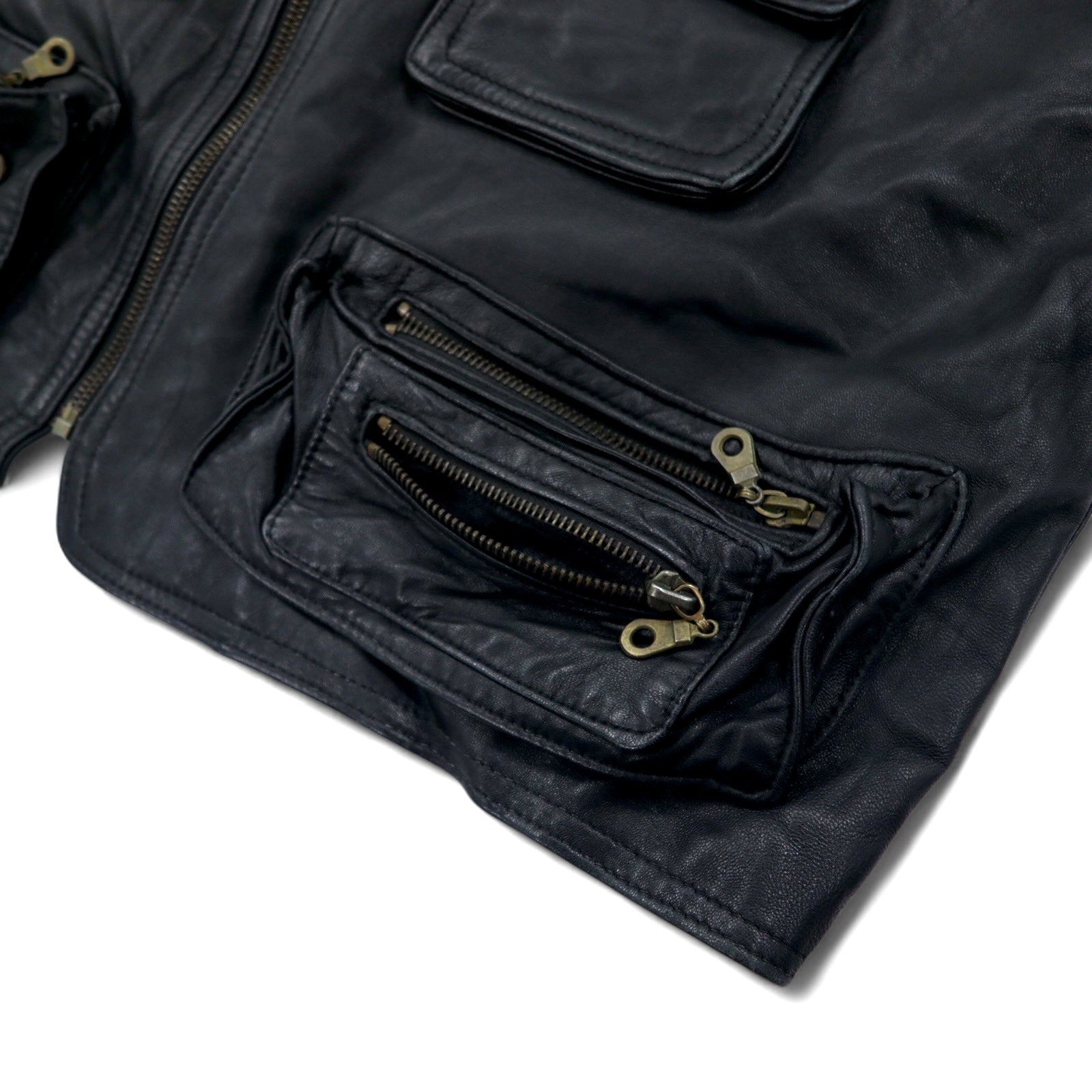 Vintage Leather Hunting Vest ユーティリティ レザー ハンティングベスト L ブラック ジップアップ