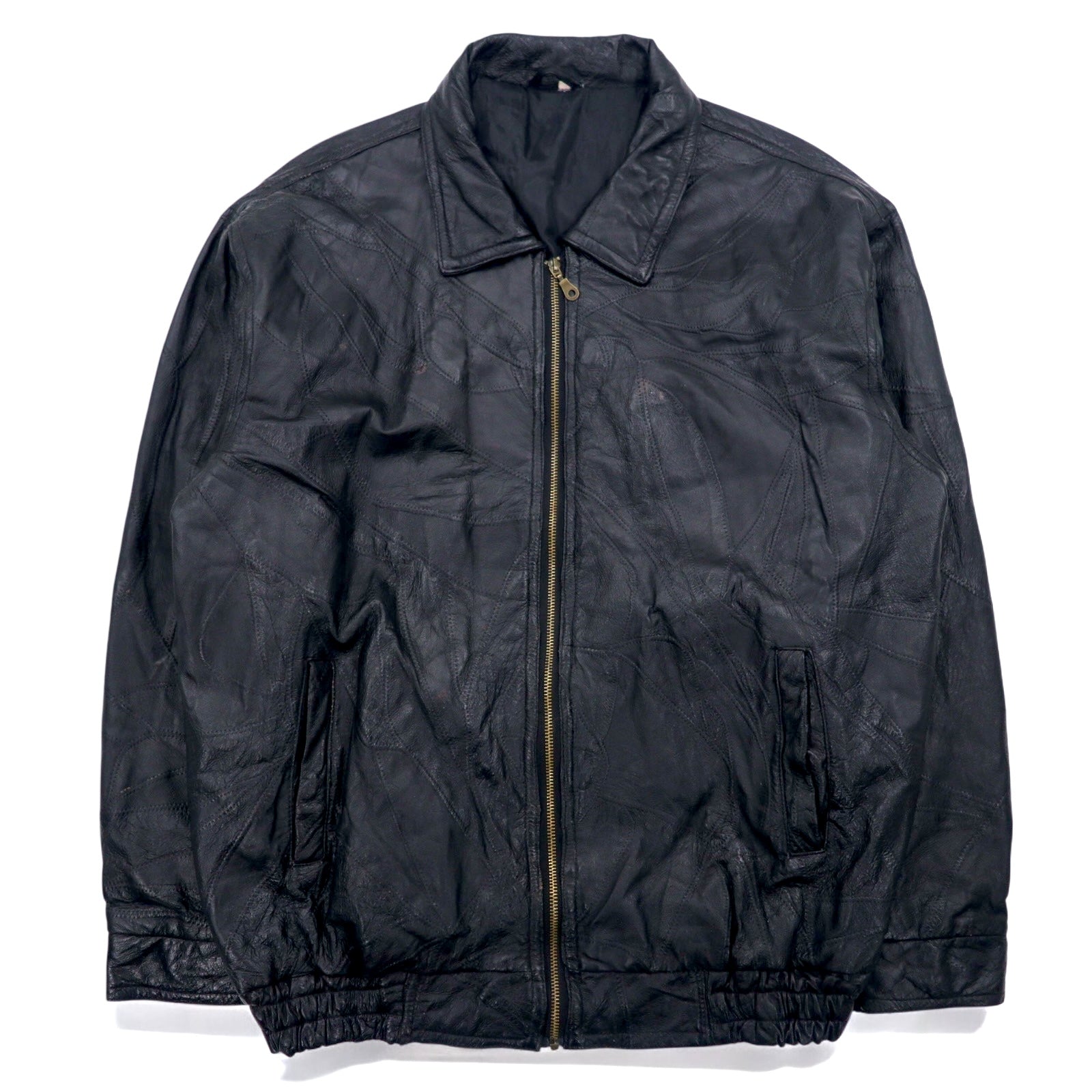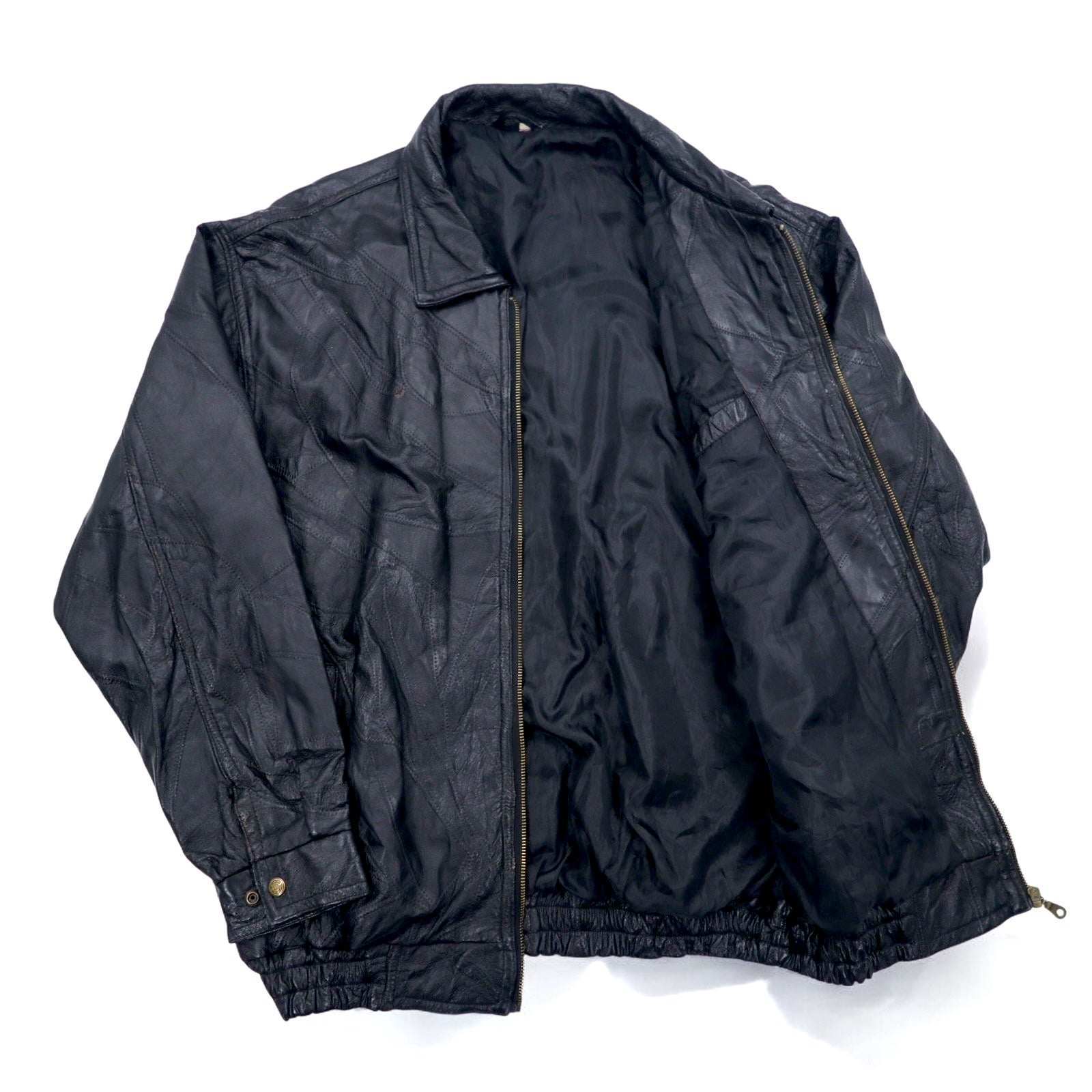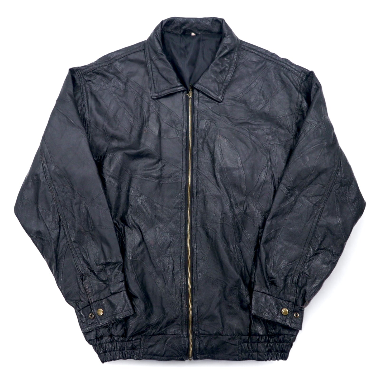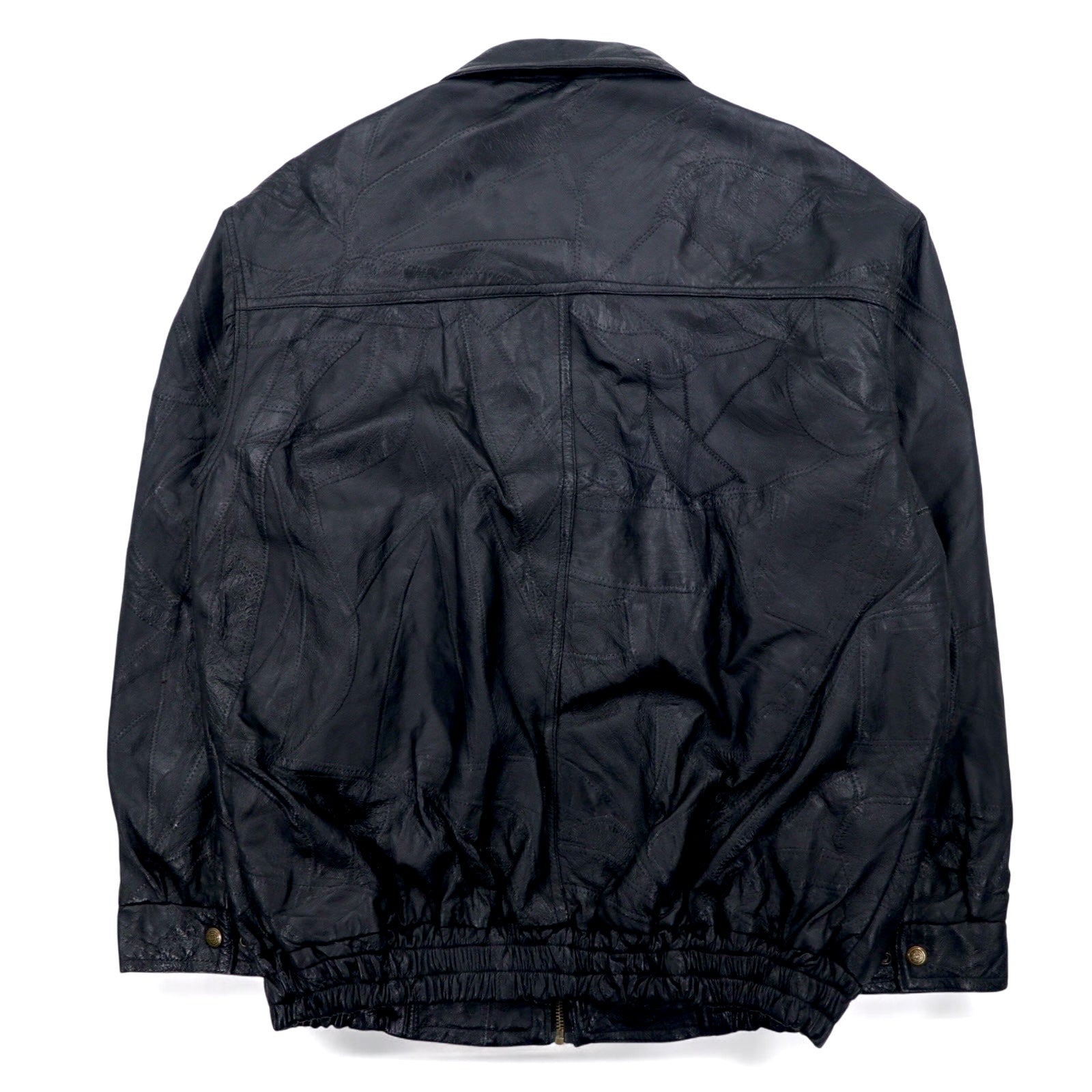 Vintage Leather Patchwork Bomber Jacket パッチワーク レザージャケット ツギハギジャン XL ブラック