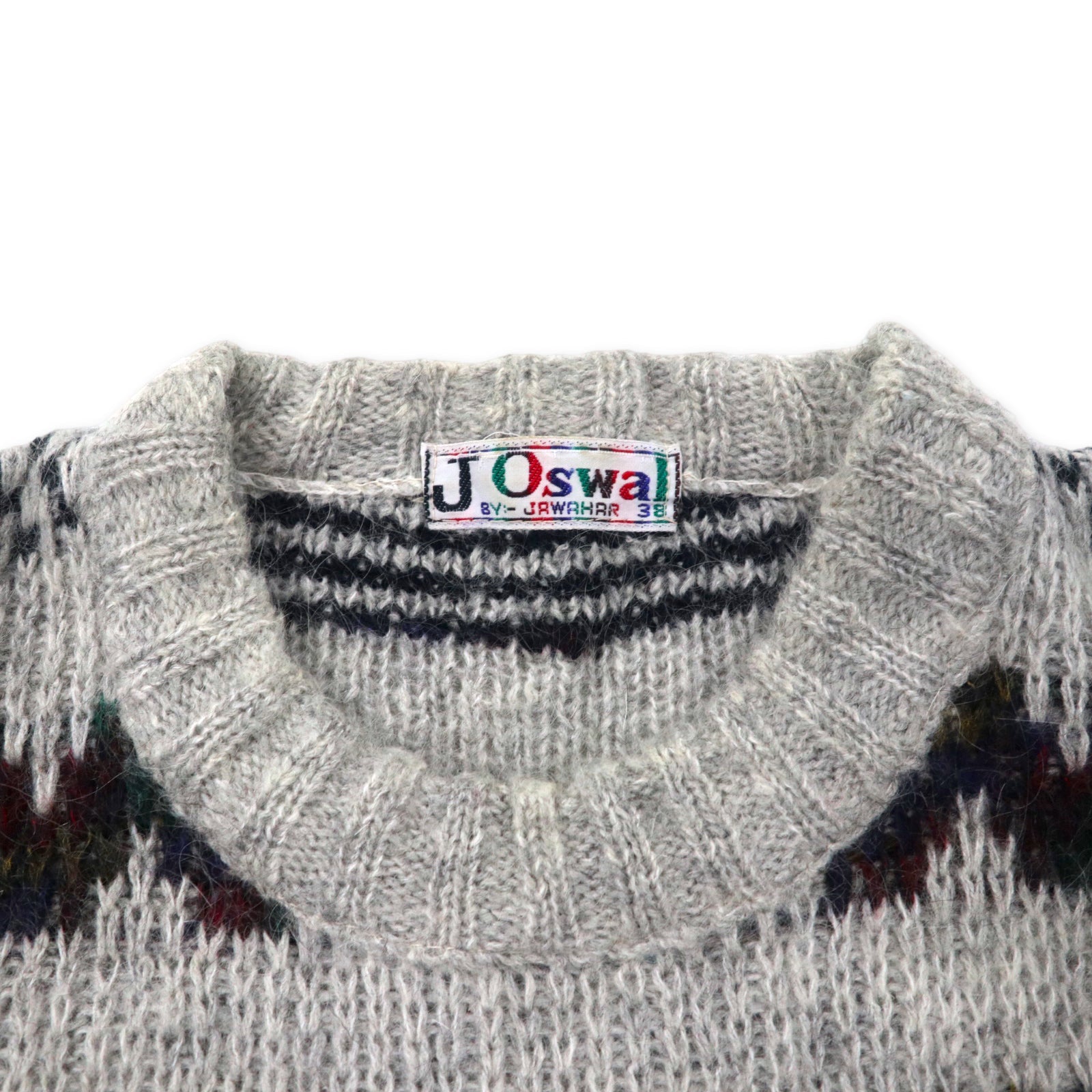 Vintage Mohair Sweater 80年代 モヘヤニット セーター 38 グレー ウール 総柄 JOswal BY JAWAHAR