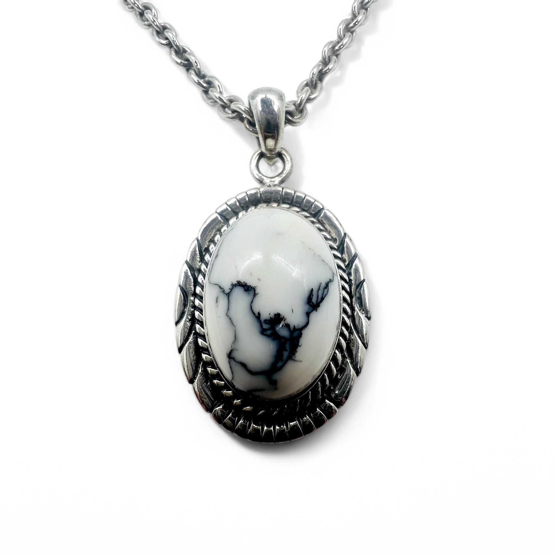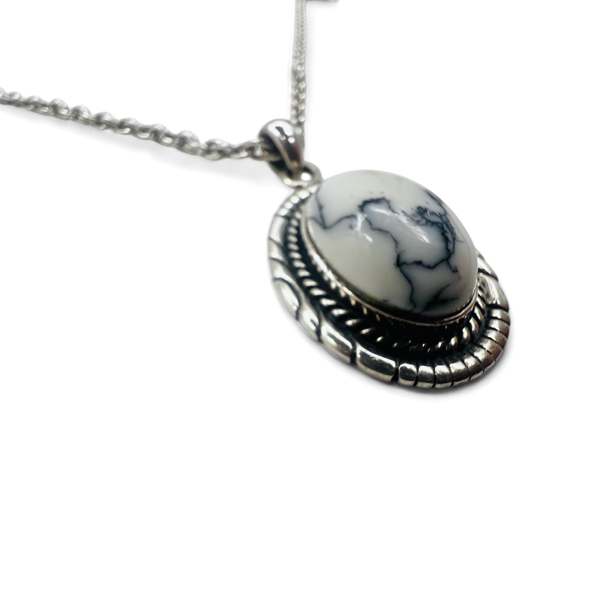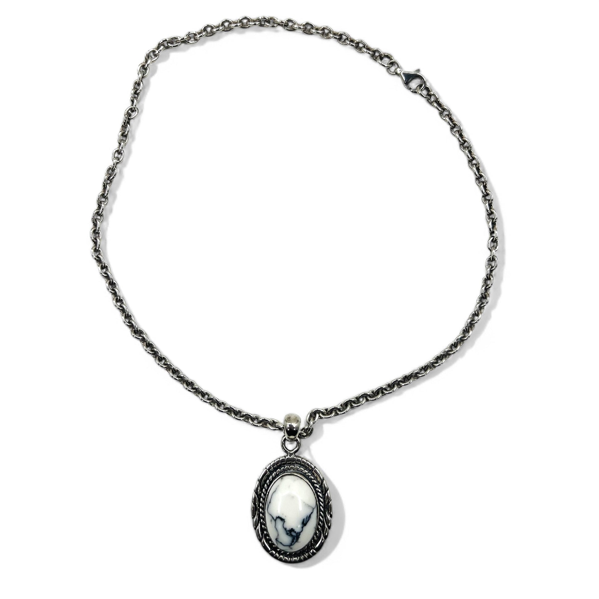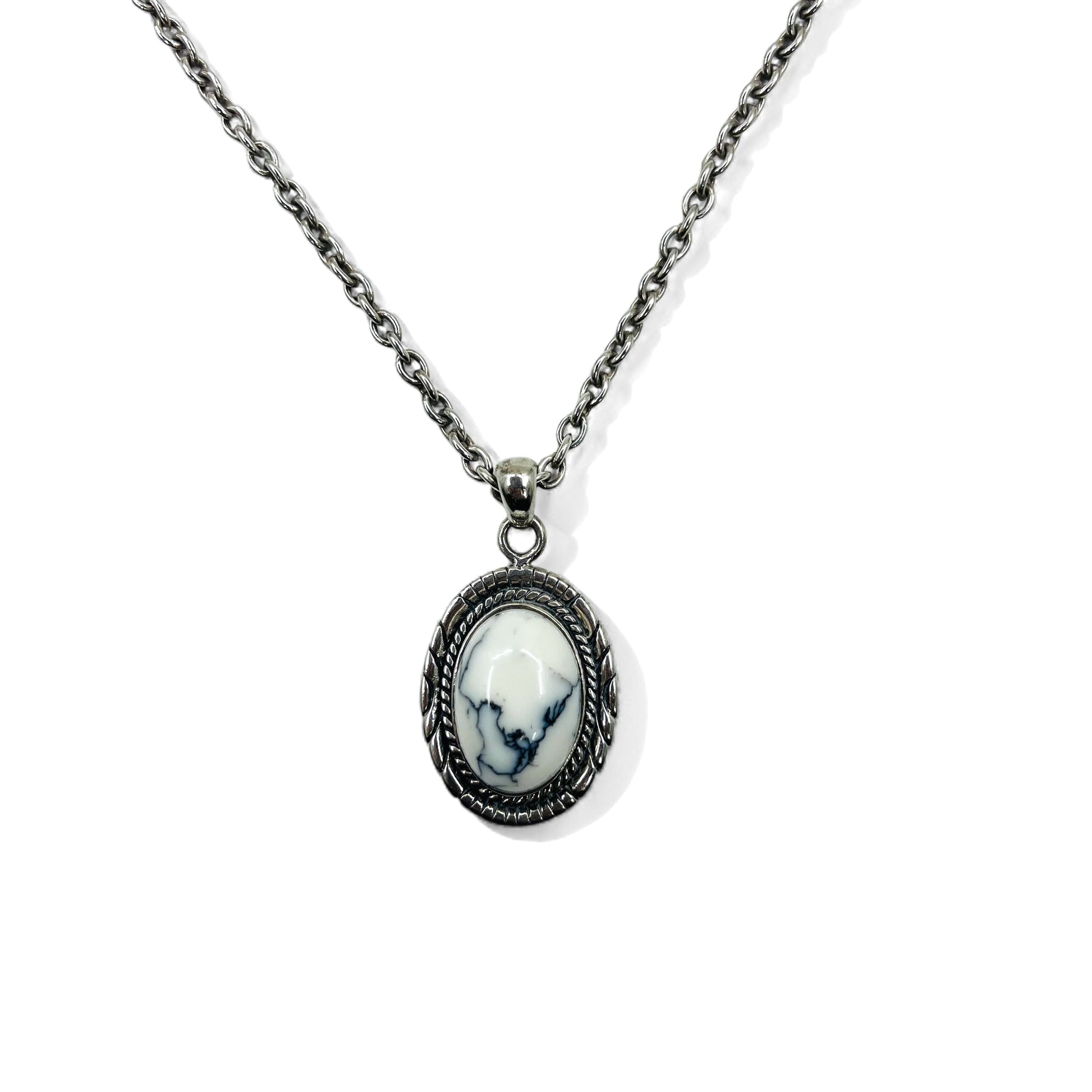 Vintage Oval White Turquoise Necklace インディアンジュエリー ホワイトターコイズ ネックレス ペンダント 925