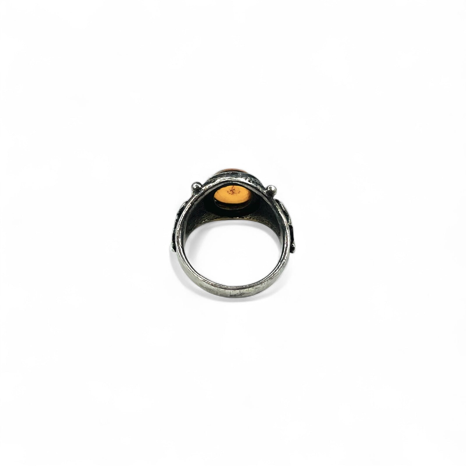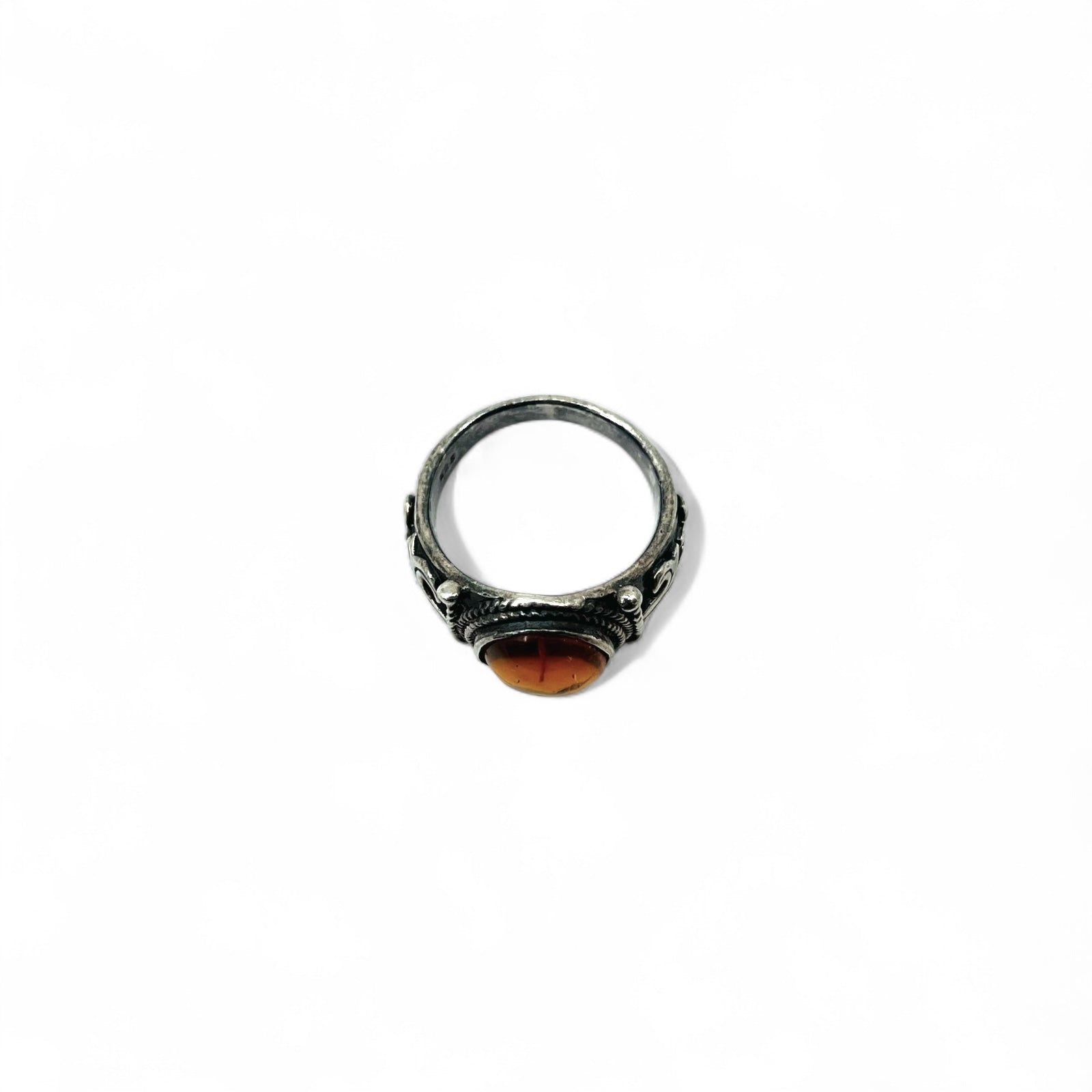 Vintage Silver Amber Ring ヴィンテージ オーバル 琥珀 ストーン リング 指輪 17号 シルバー 925