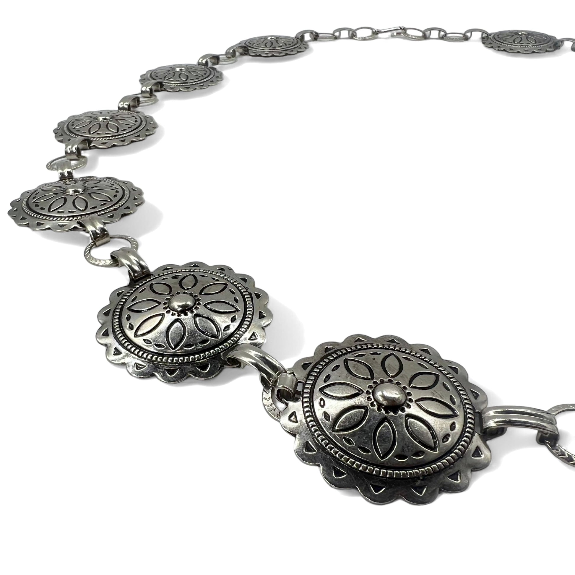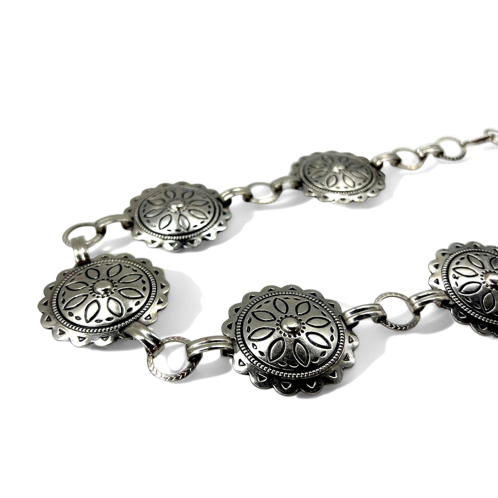Vintage Silver Concho Necklace Belt ヴィンテージ コンチョ 2WAY ネックレス ベルト 93cm シルバー メタル