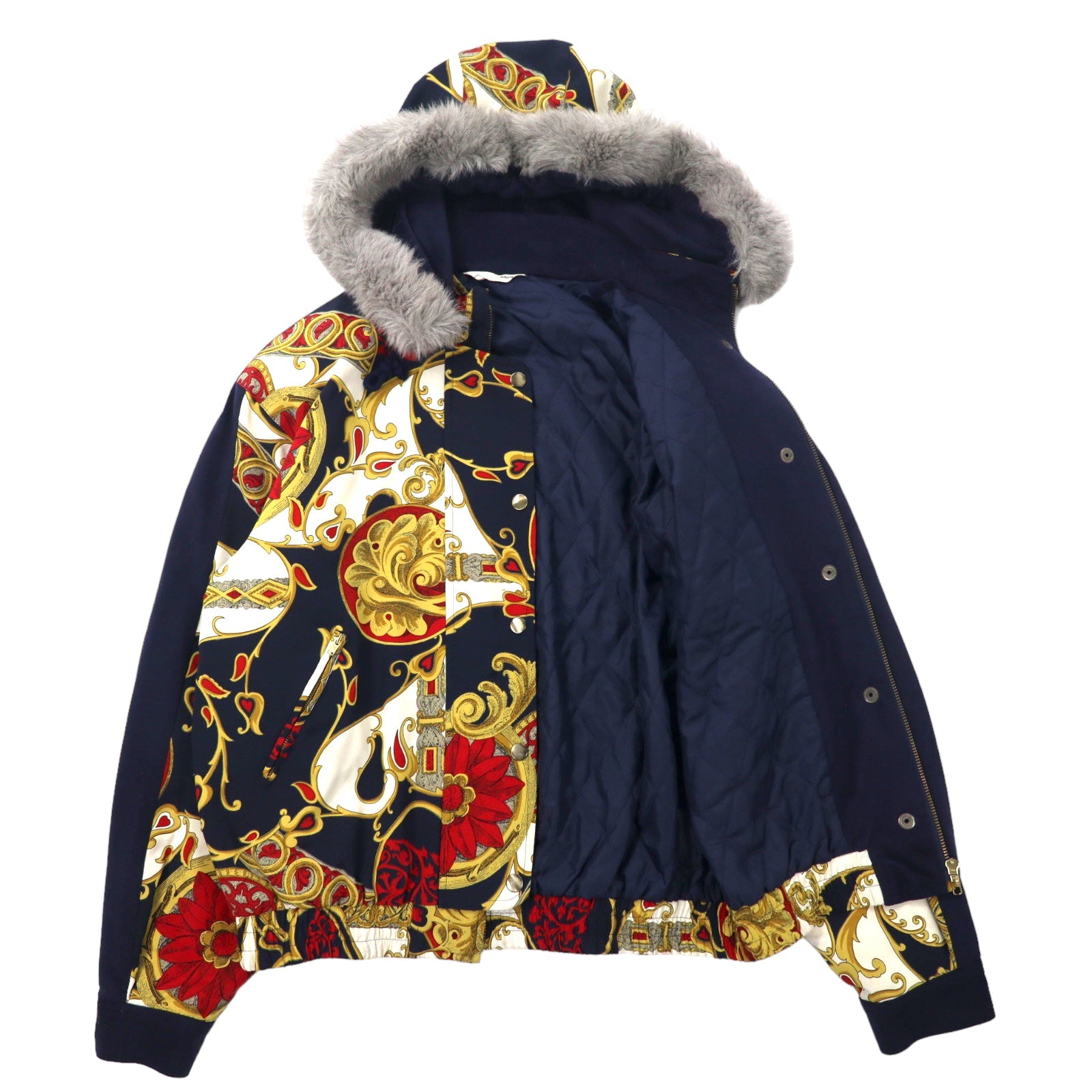 Viva Motion スカーフ柄 ボンバージャケット 9 ネイビー 総柄 ポリエステル キルティングライナー 日本製