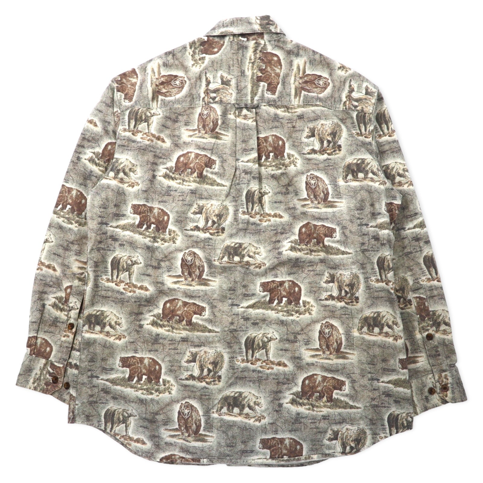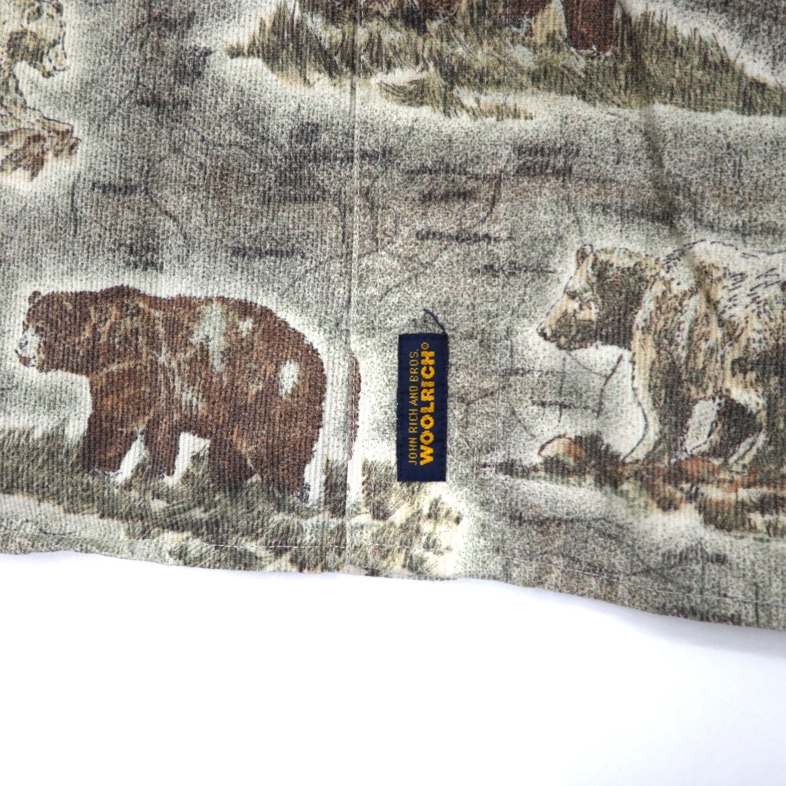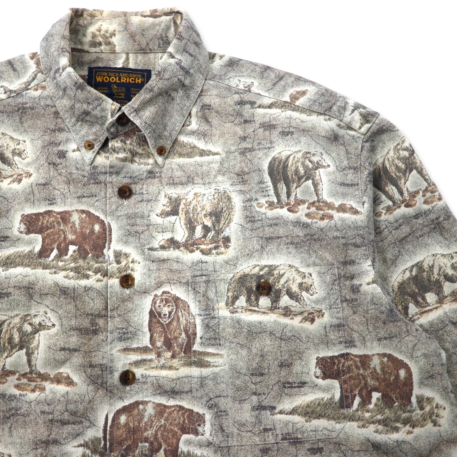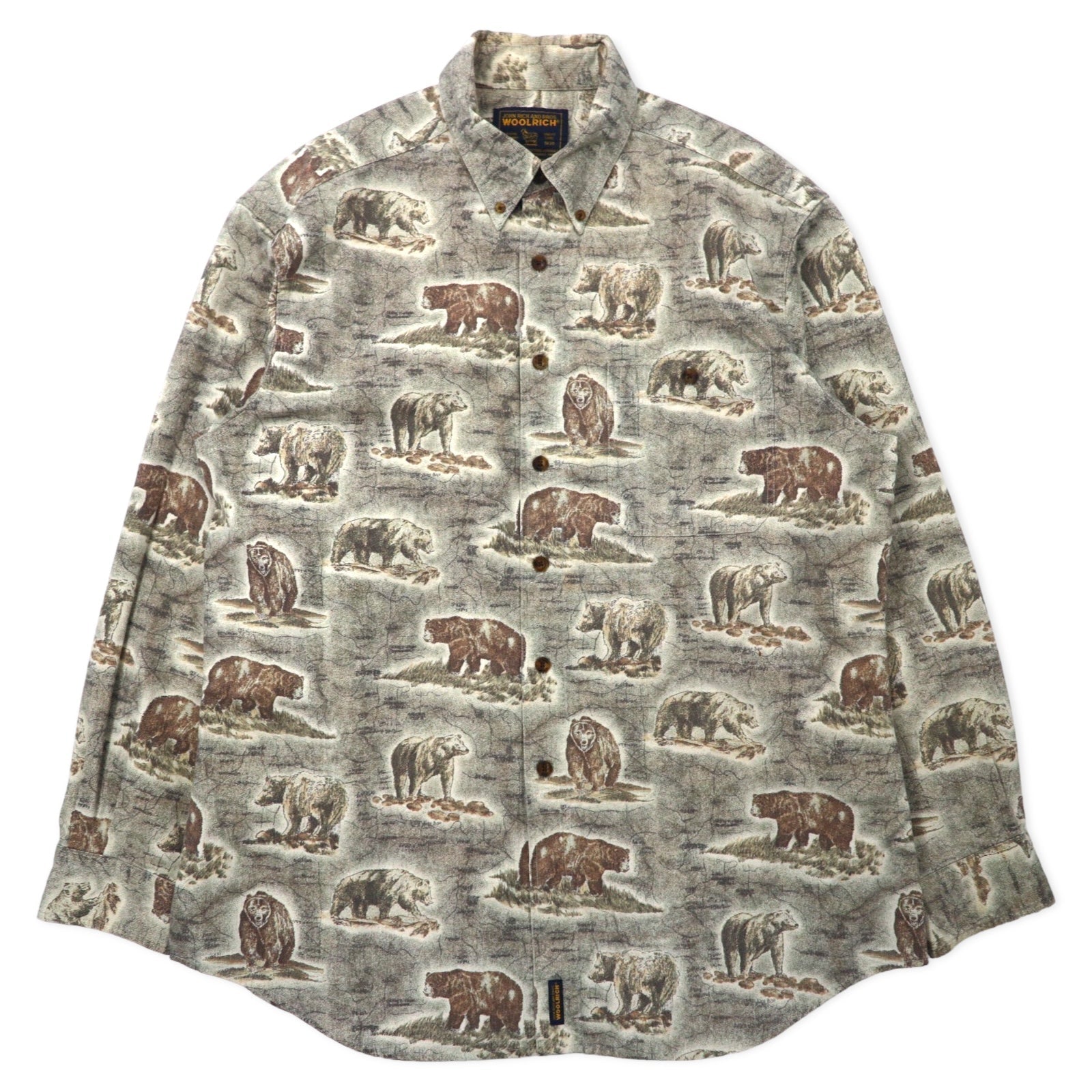 WOOLRICH アニマル 総柄 ボタンダウンシャツ L カーキ コットン ペルー製