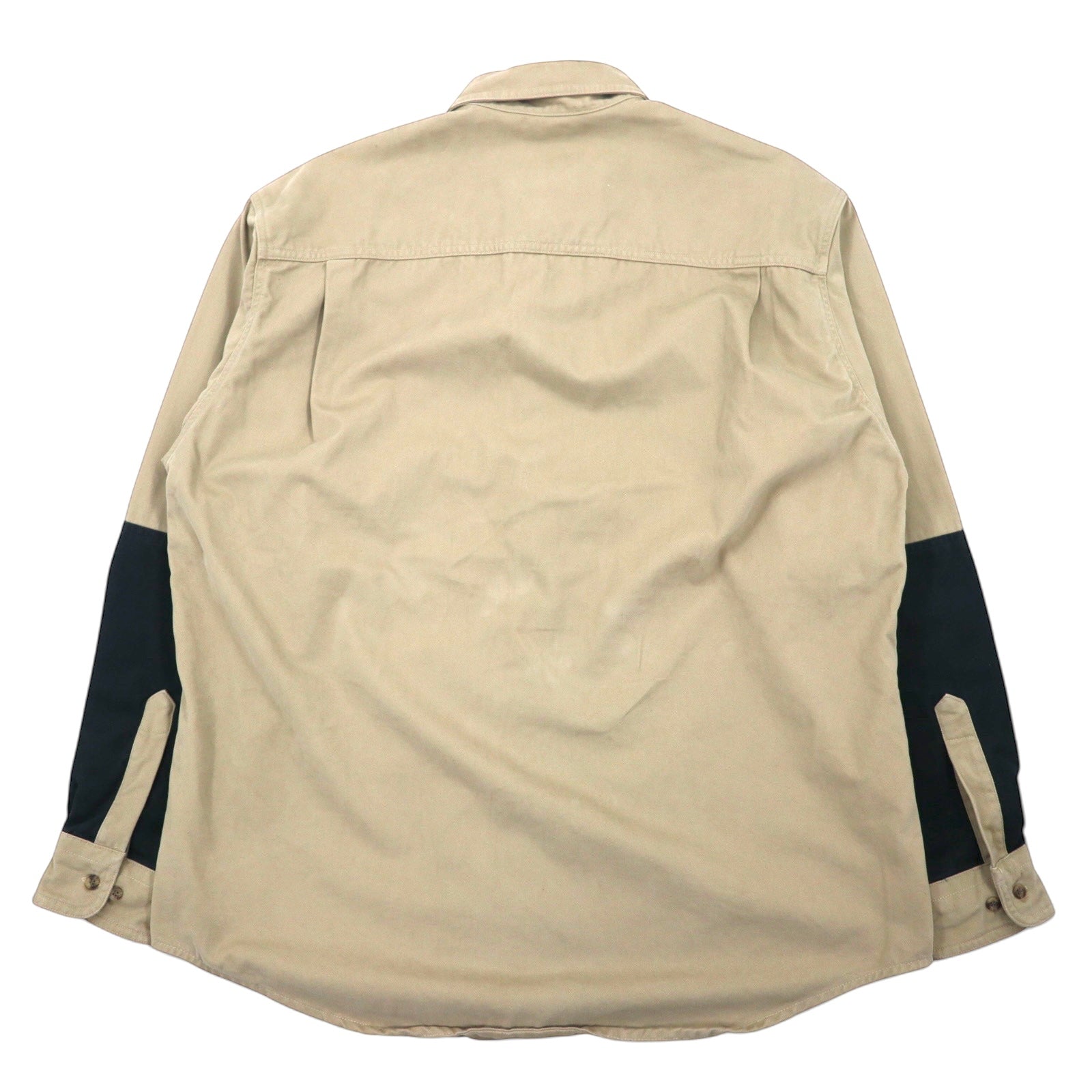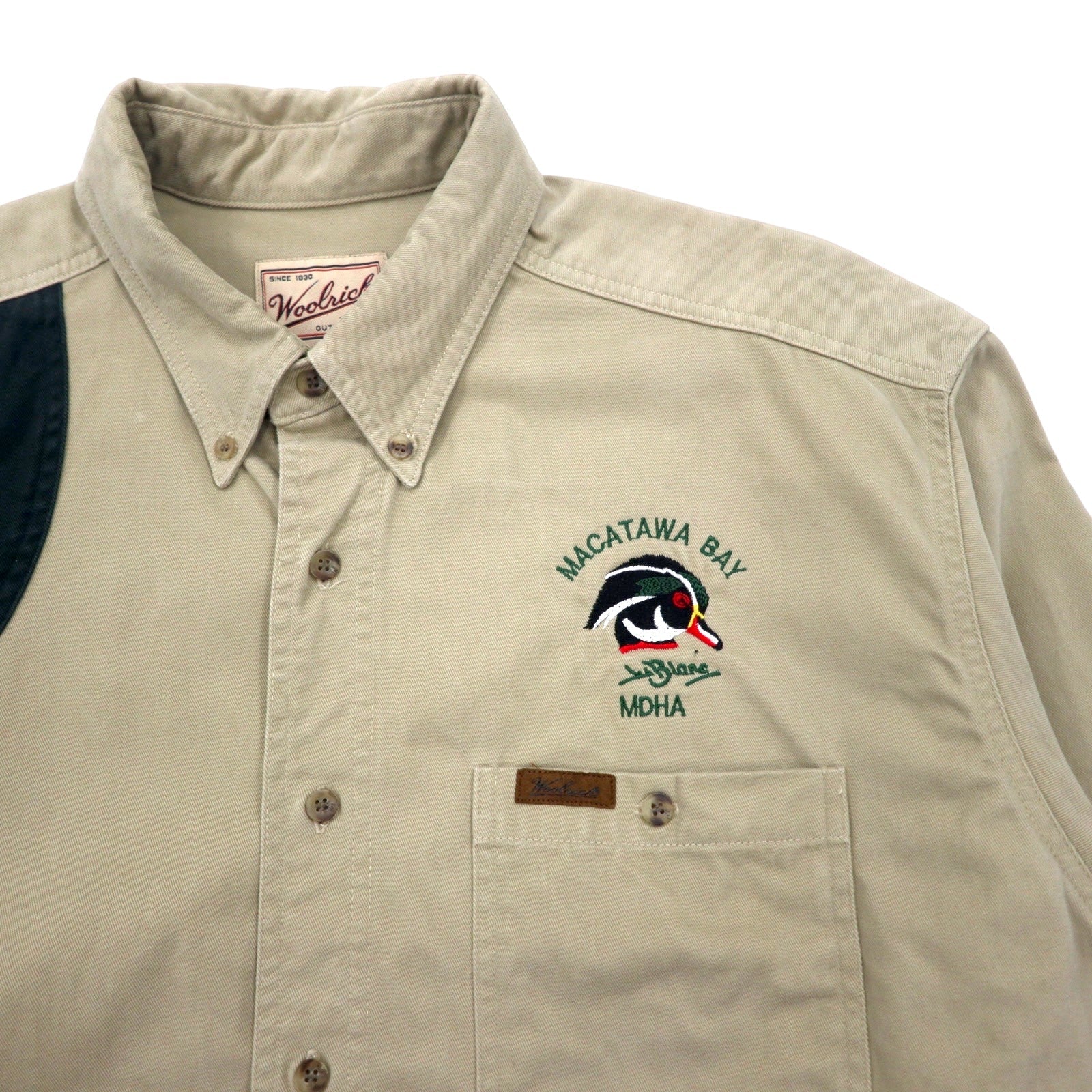 Woolrich ハンティングシャツ ボタンダウンシャツ XL ベージュ コットン 切り替えデザイン 刺繍 MACATAWA BAY