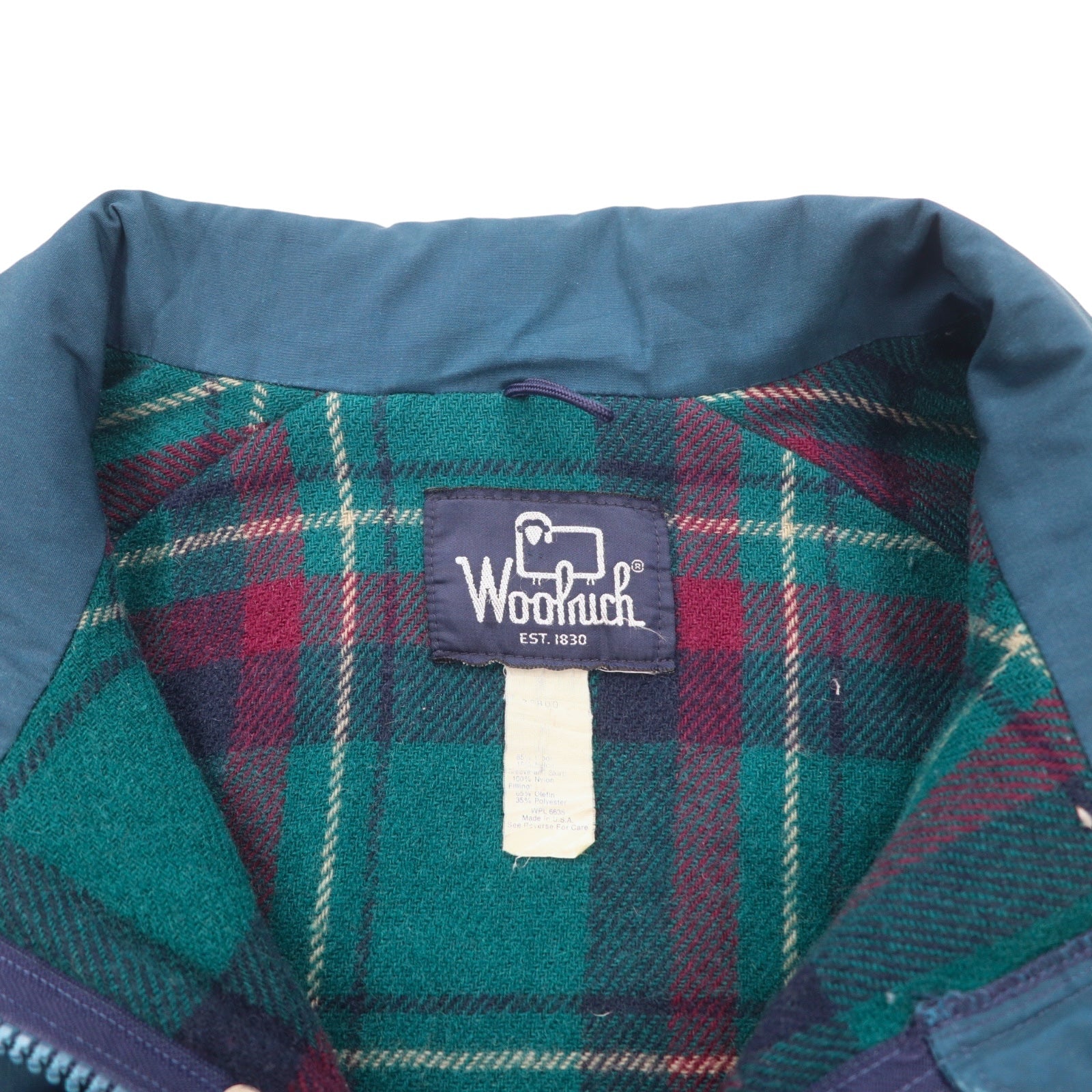 Woolrich 80年代 USA製 インサレーションジャケット L ナイロン ブルー ダブルジップ 裏地チェック 中綿 ドローコード