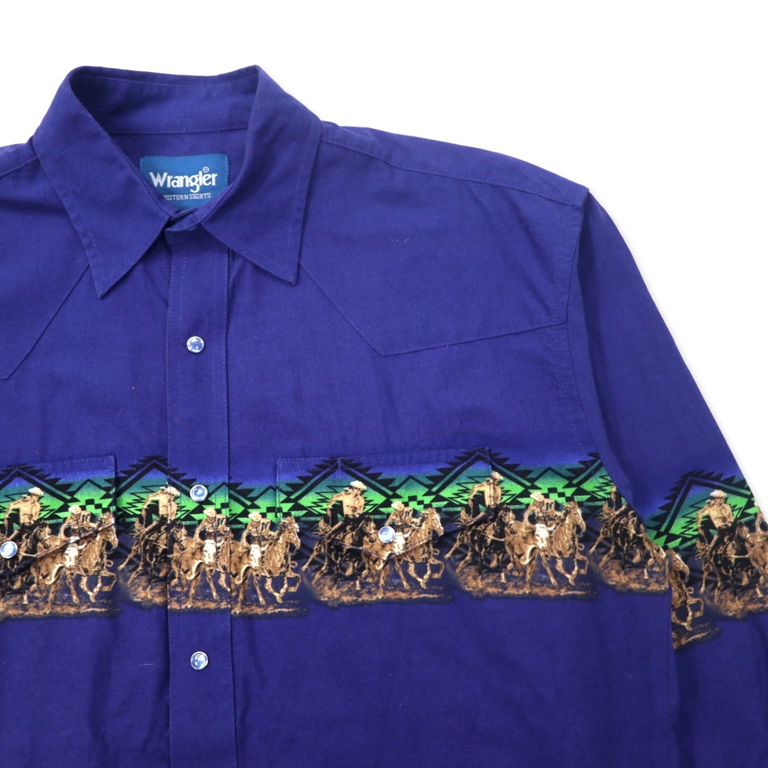 Wrangler 80年代 ウエスタンシャツ L ブルー コットン チマヨ カウボーイ