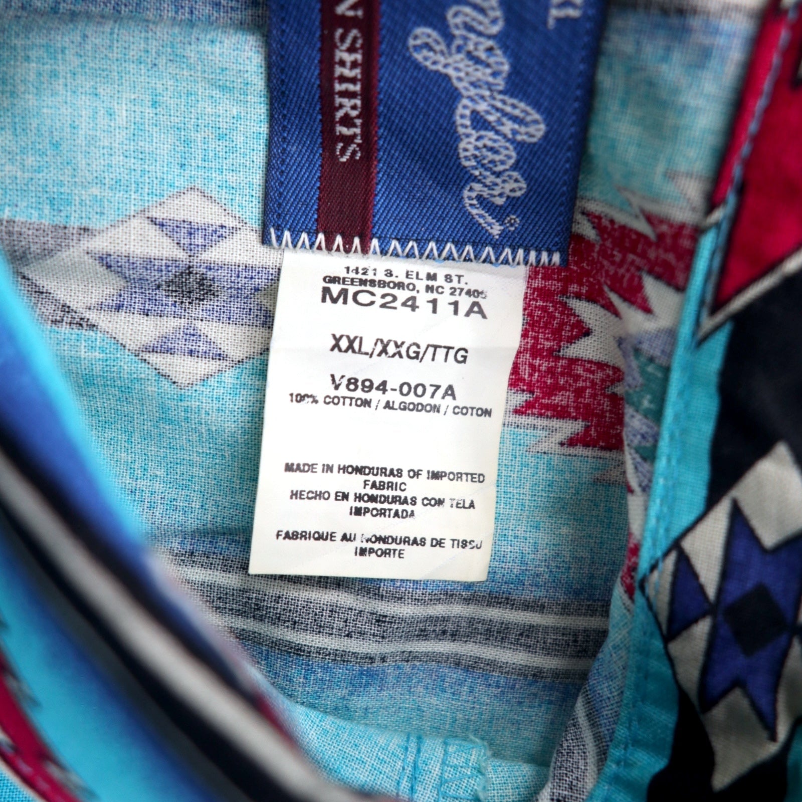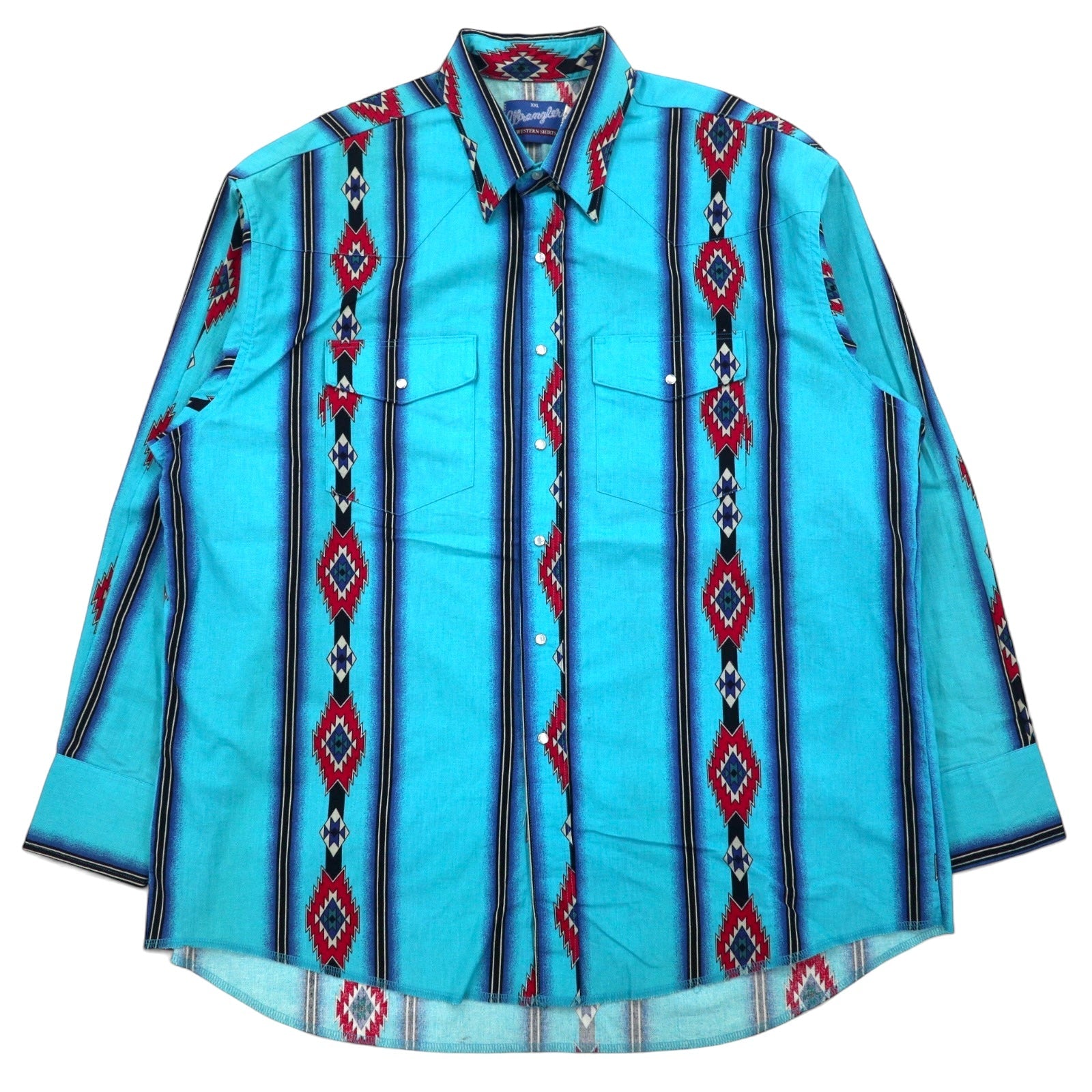 Wrangler 80年代 ウエスタンシャツ XXL ブルー コットン 総柄 チマヨ柄 インディアン MC2411A