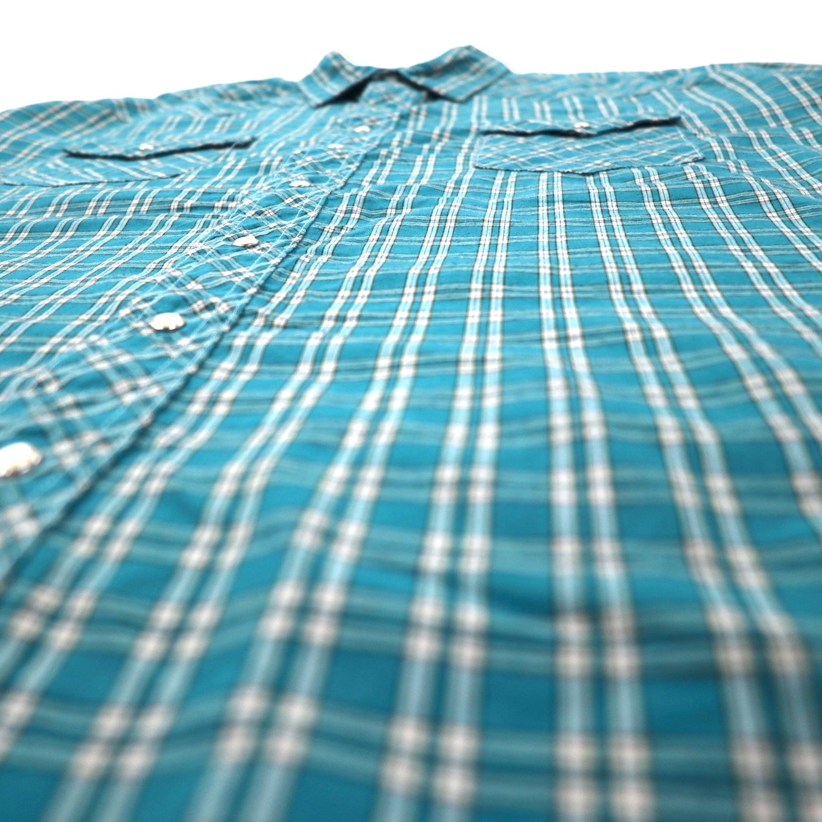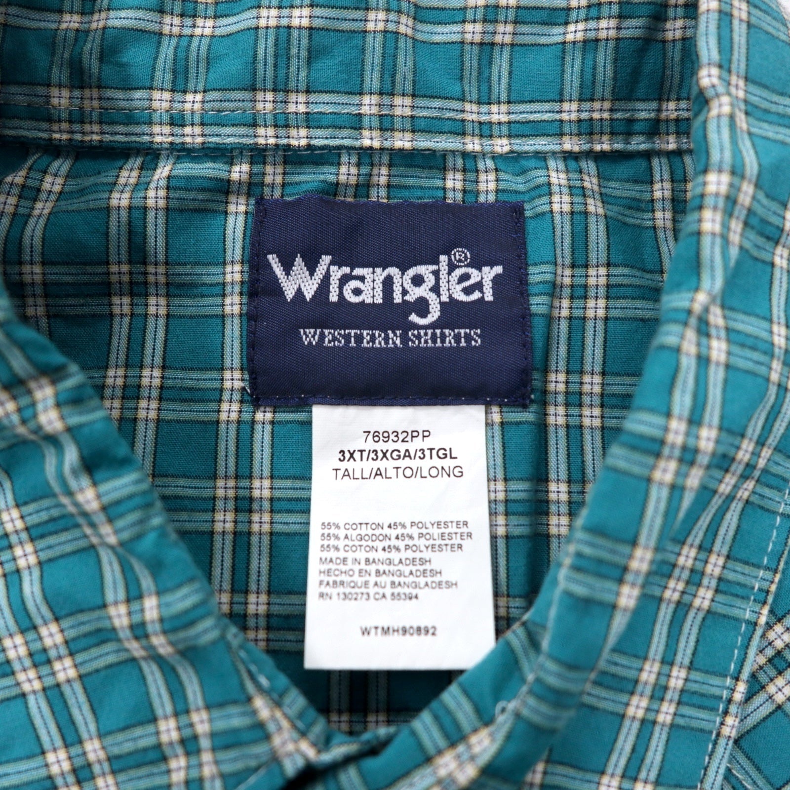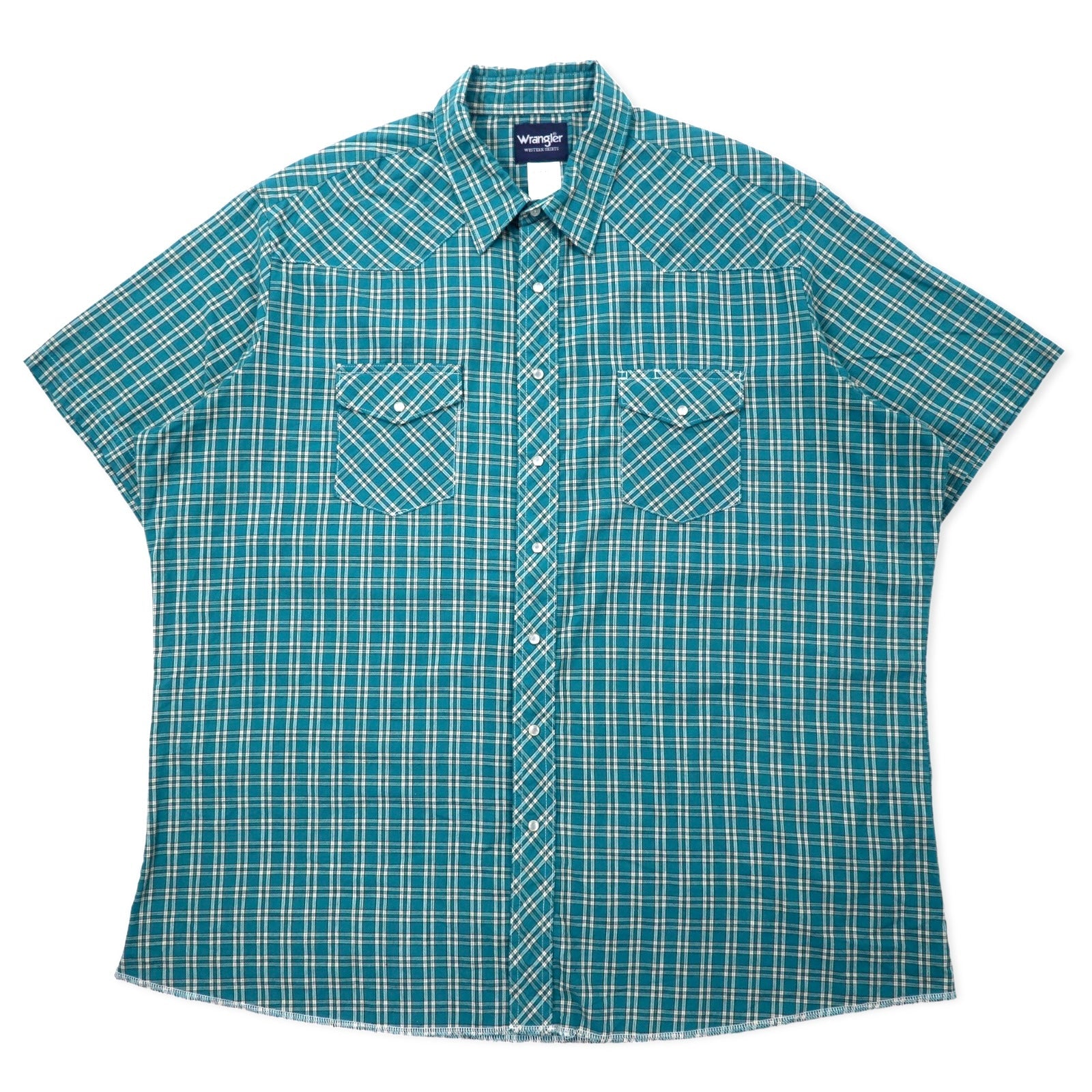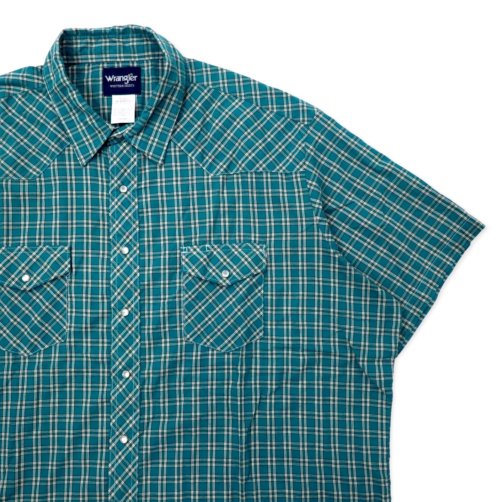 Wrangler 90年代 半袖 ウエスタンシャツ 3XT グリーン チェック コットン スナップボタン ビッグサイズ